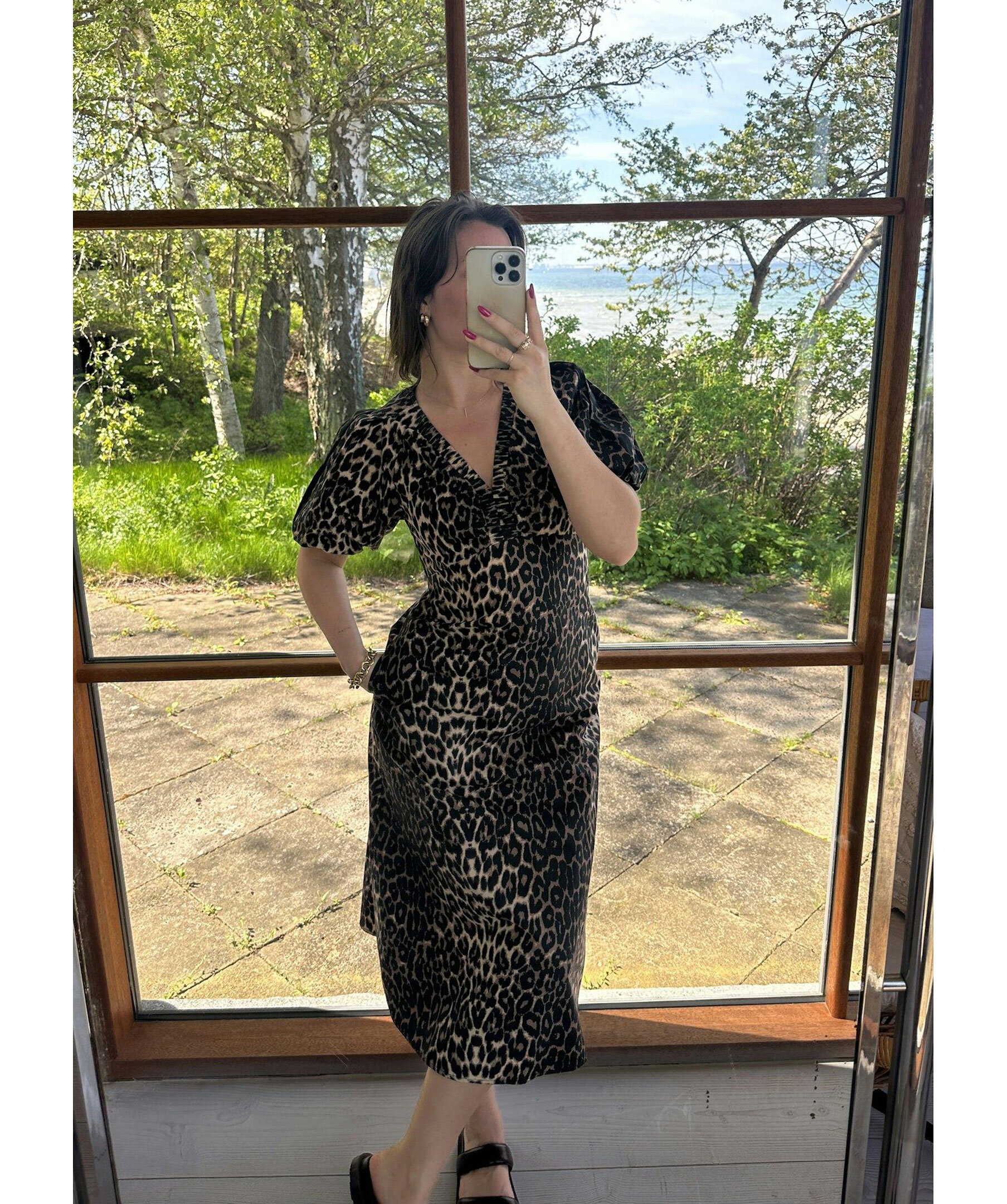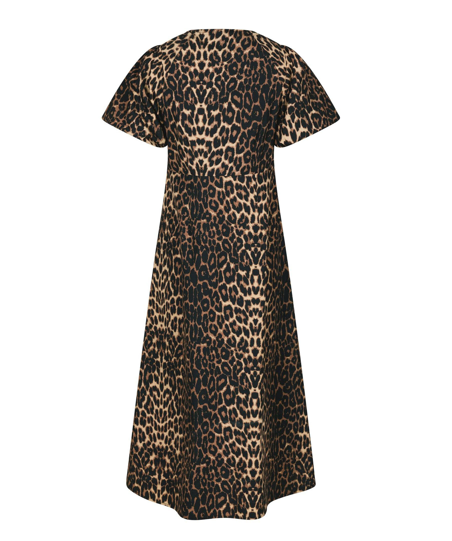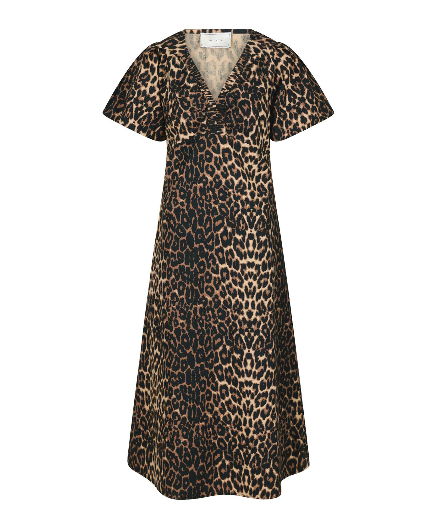 Leopardmönstrad maxiklänning från Neo Noir. Klänningen har puffärmar och v-ringning framtill. Tillverkad i krispig poplinkvalitet.