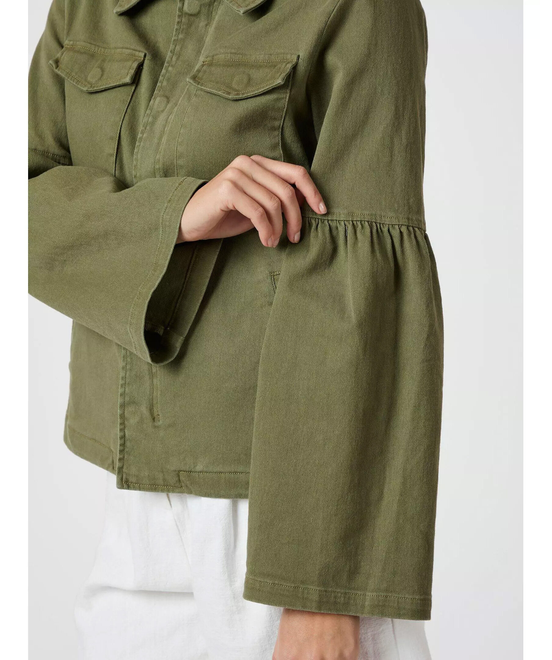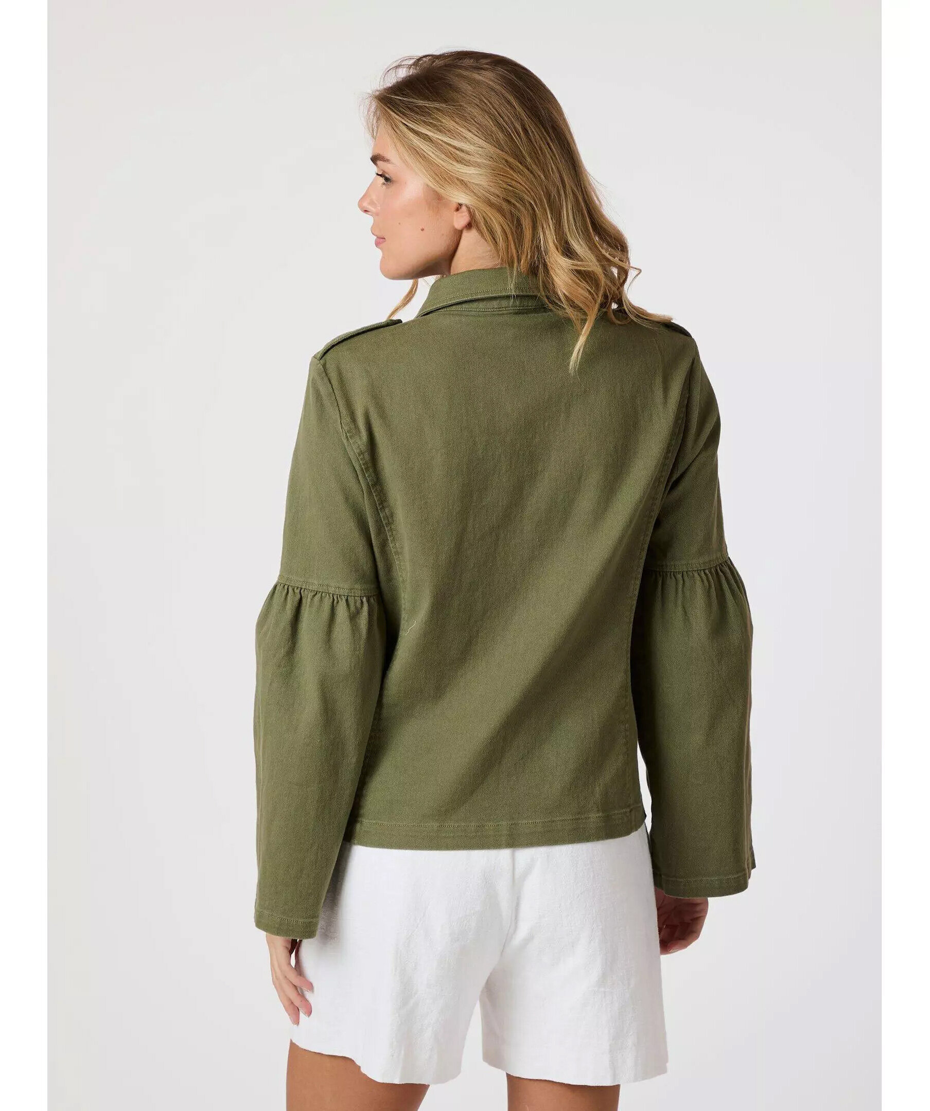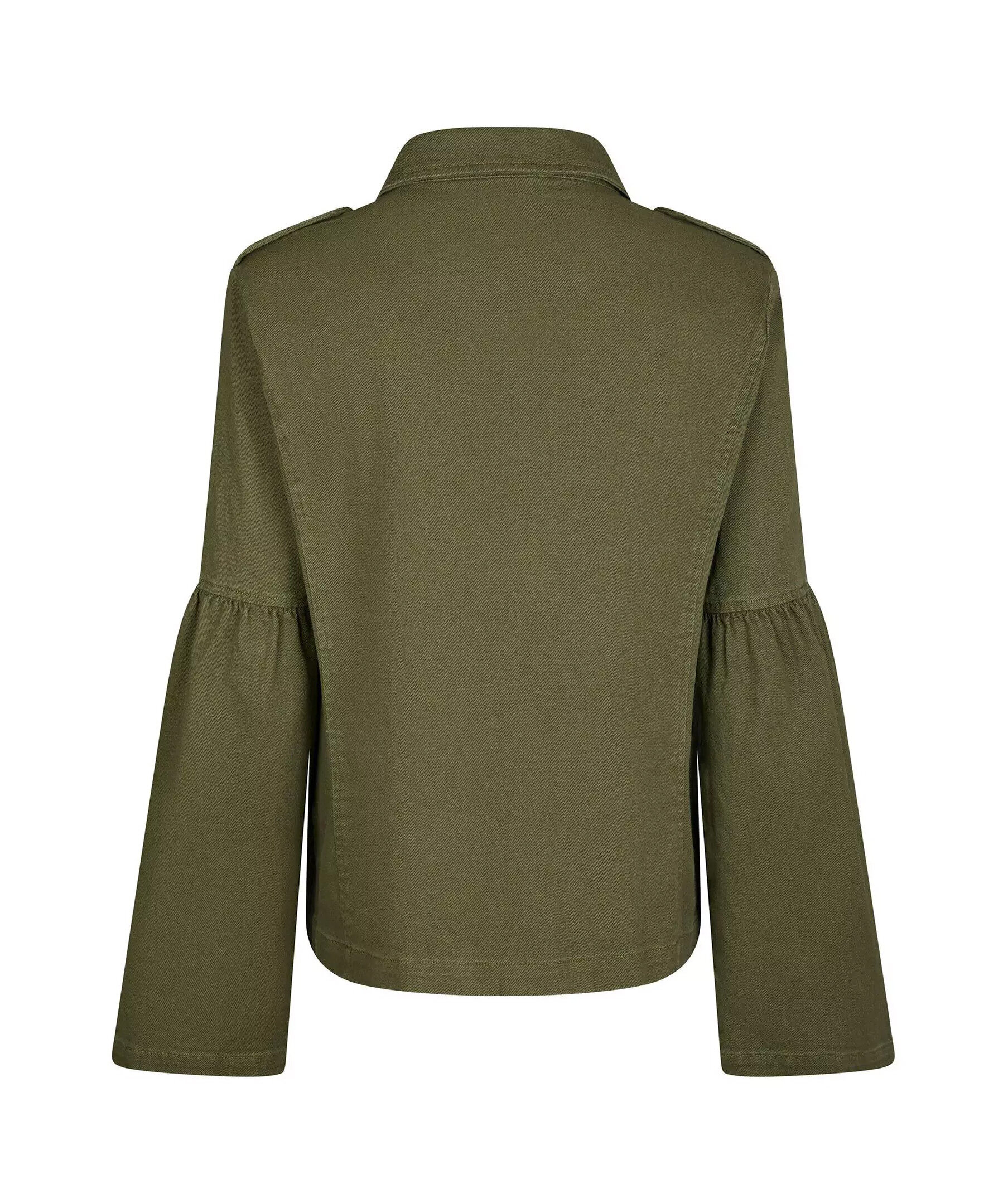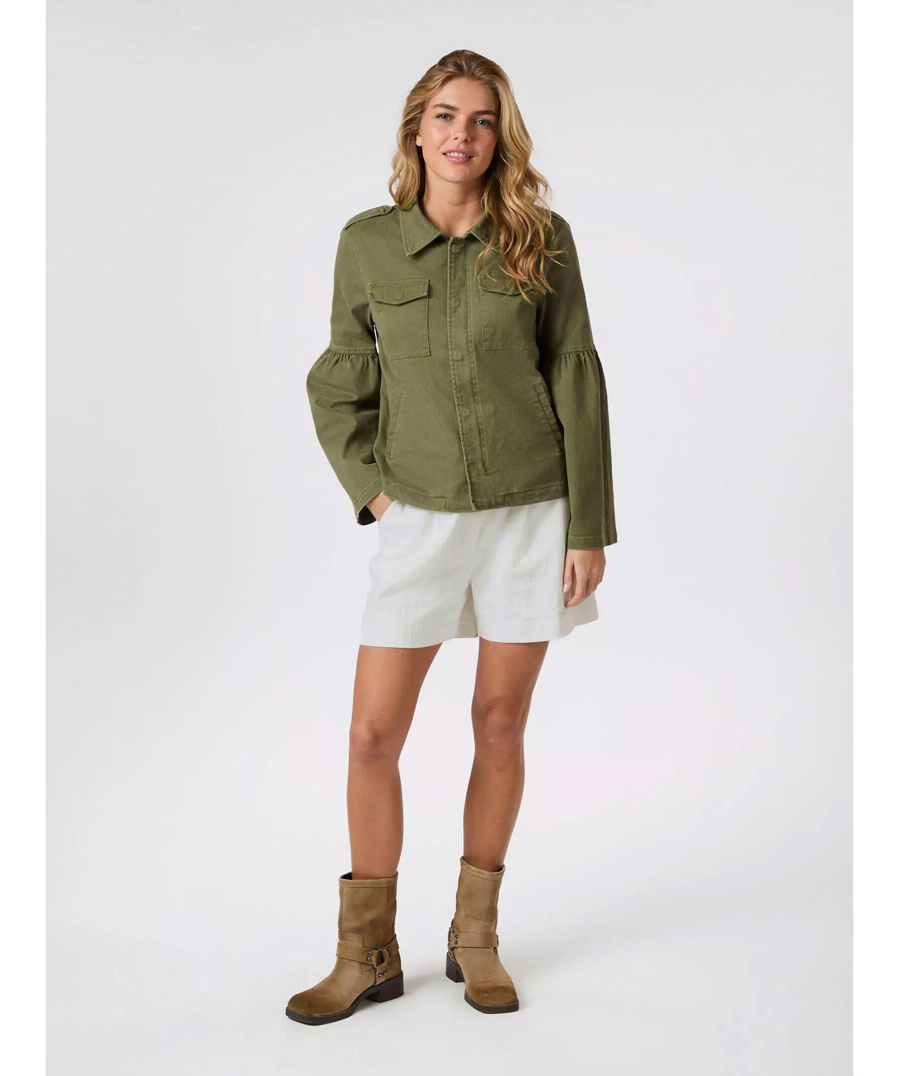 Army inspirerad jacka med fickdetaljer och dragkedja framtill och vida ärmar. Kvaliteten är mjuk och tvättad med lite stretch för bekväm passform. Modellen är 176 cm lång och bär storlek 36.
