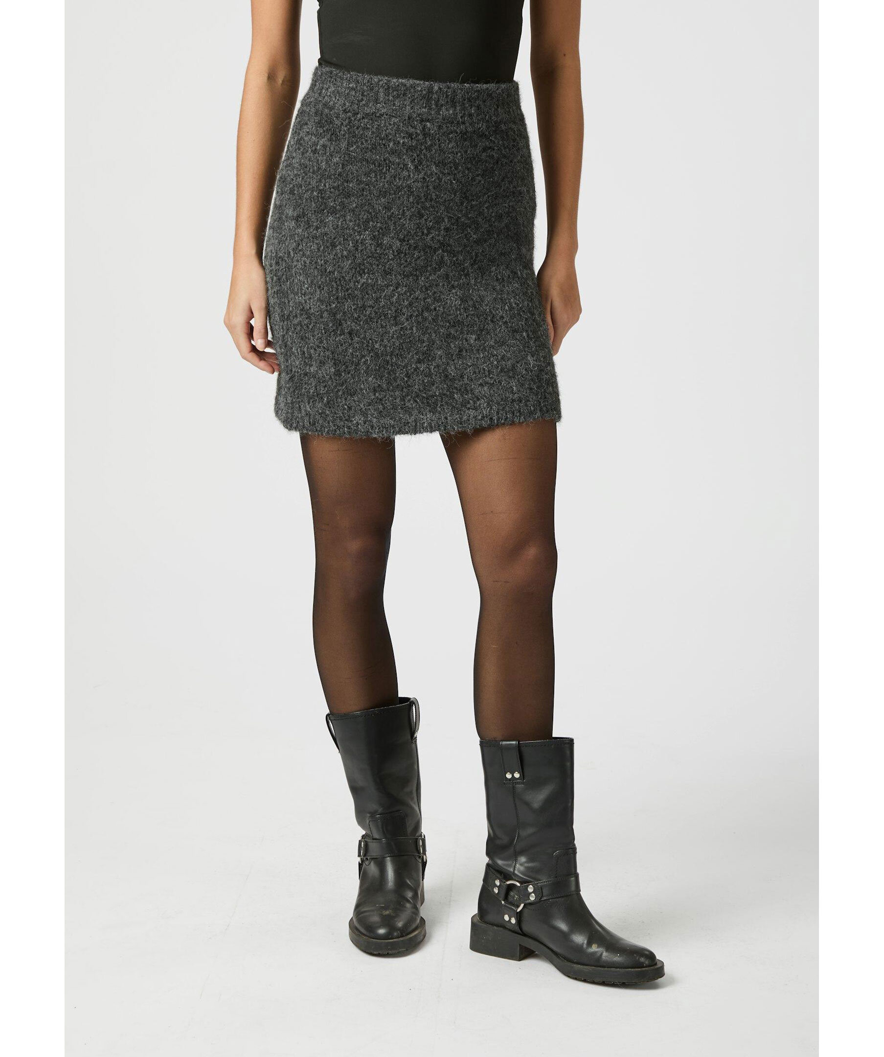 Neo Noir Naria Fluffy Knit Skirt - Mörkgrå