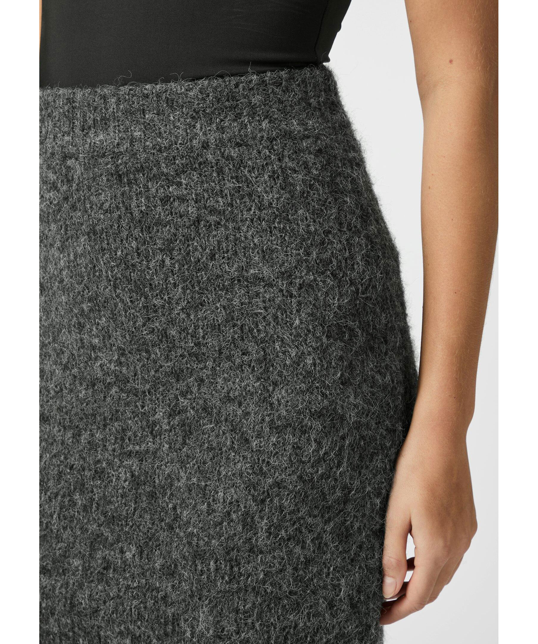 Mörkgrå, stickad och fluffig kjol från Neo Noir. Kjolen har ribbstickad och elastisk midja och är tillverkad i en polyester- och ullblandning.
