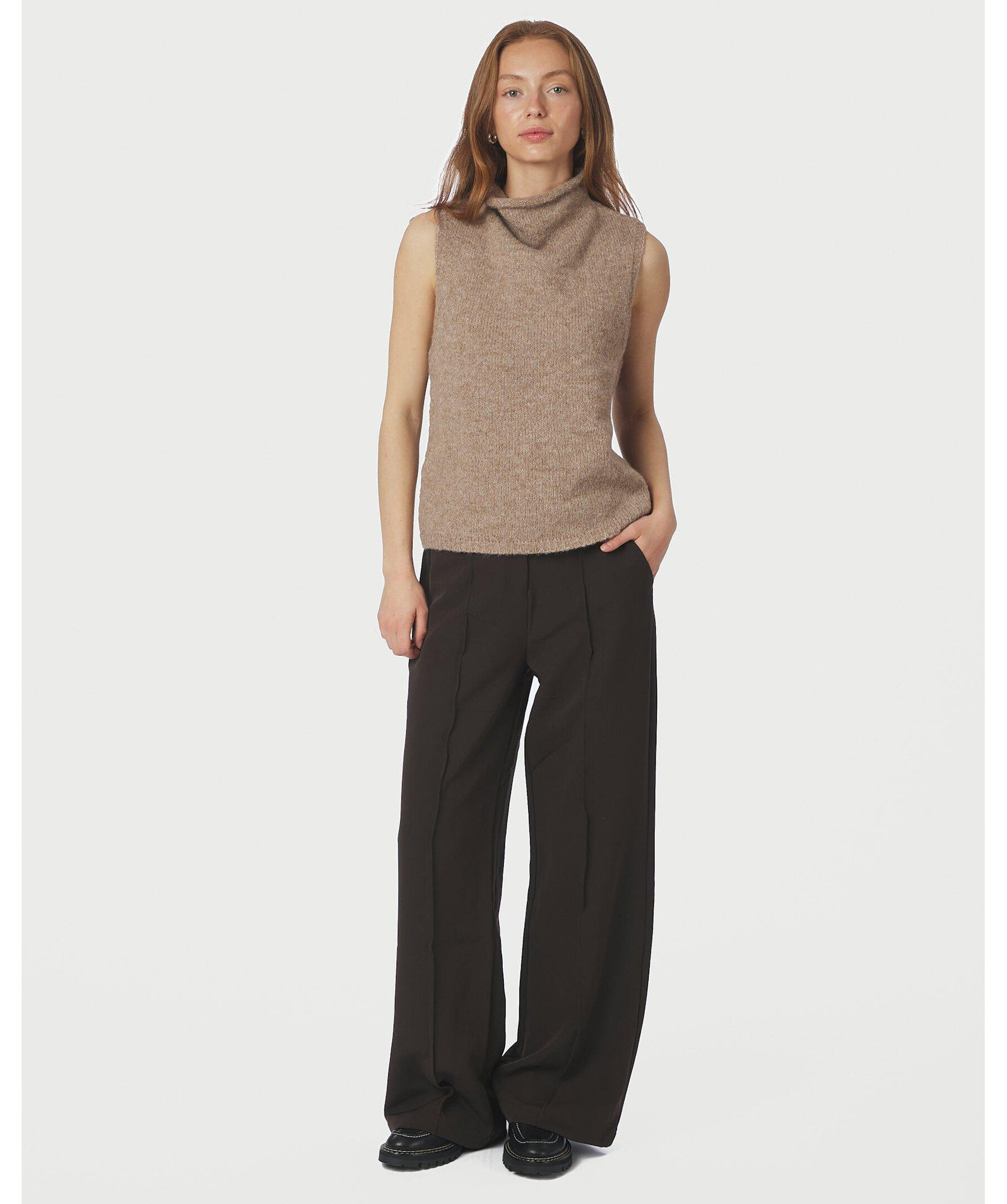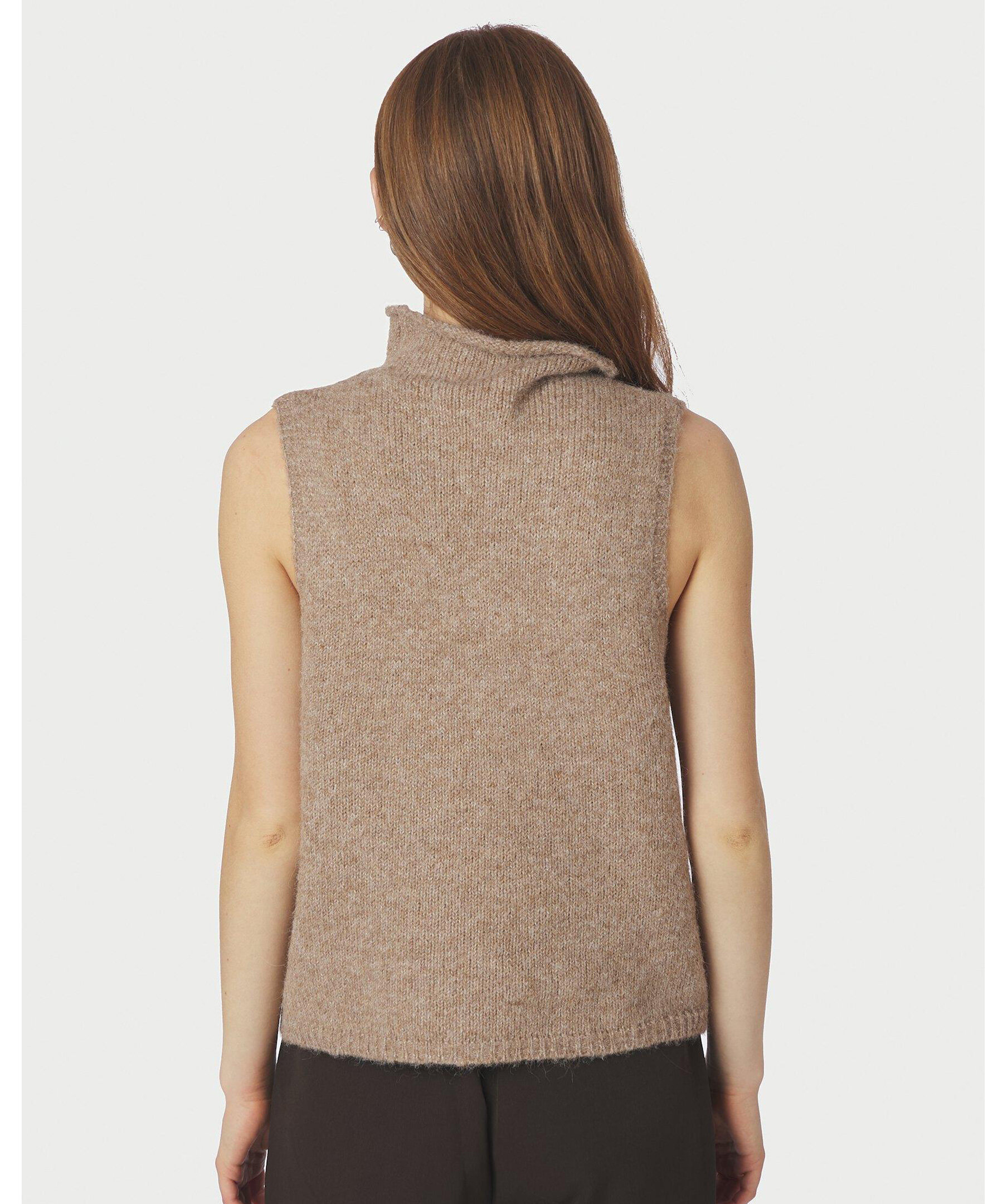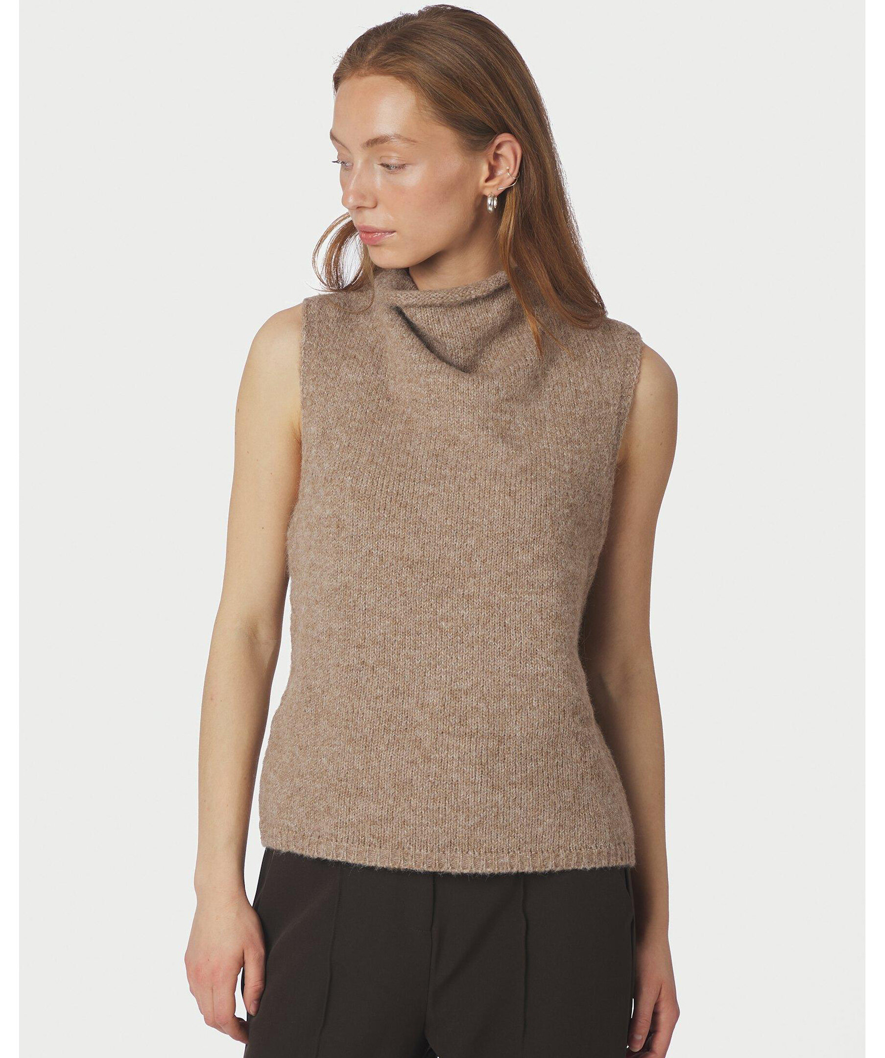 Stickad topp med hög krage från Neo Noir. Modellen är 176 cm lång och bär storlek 36.