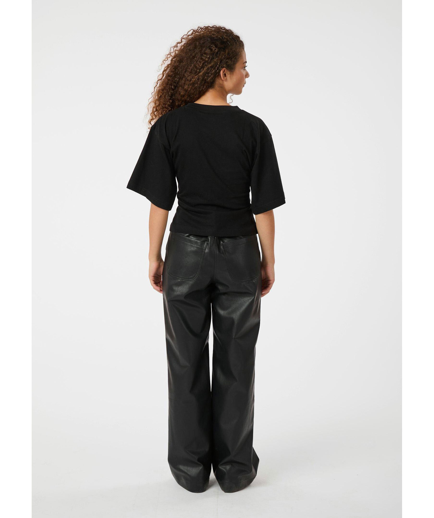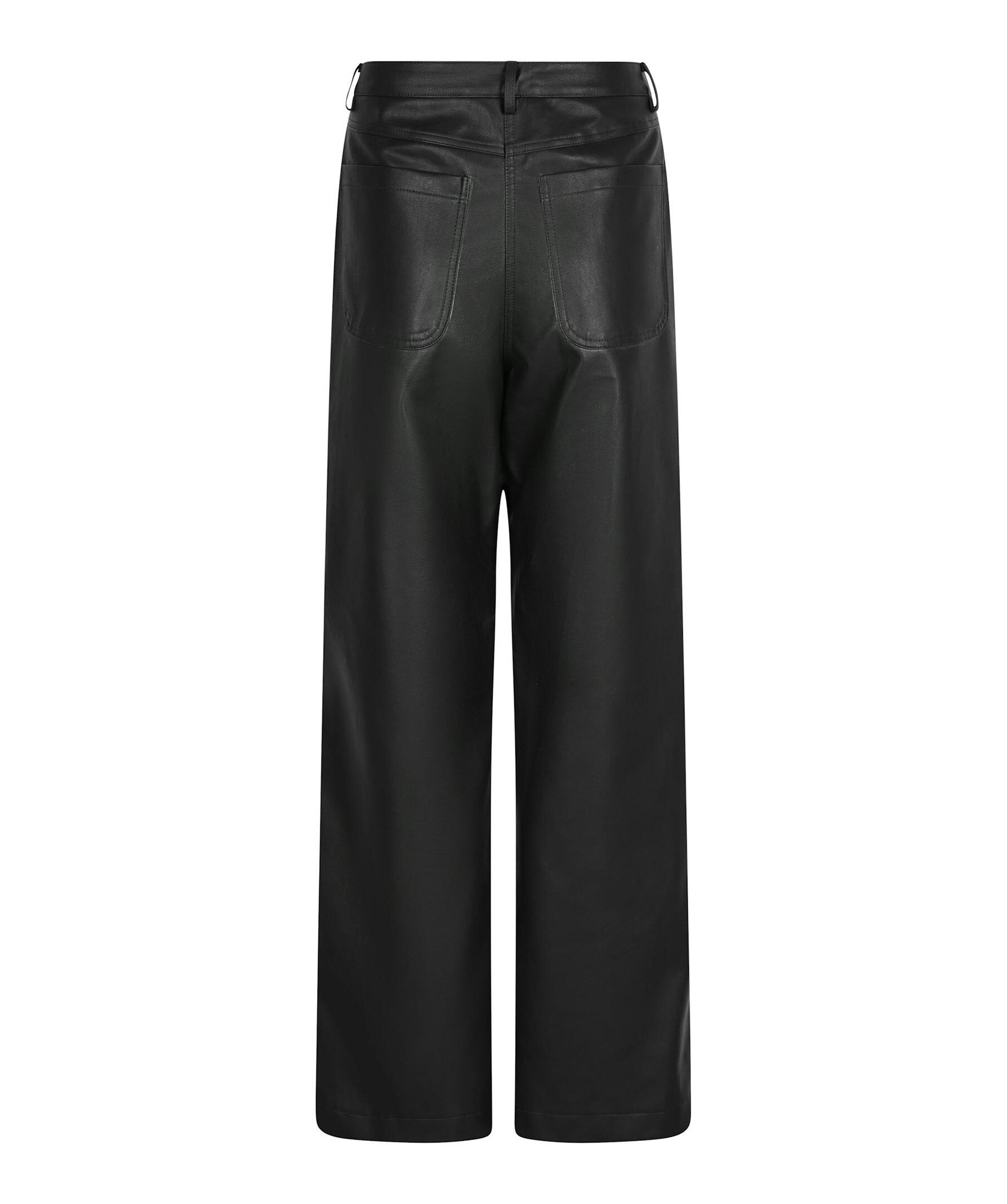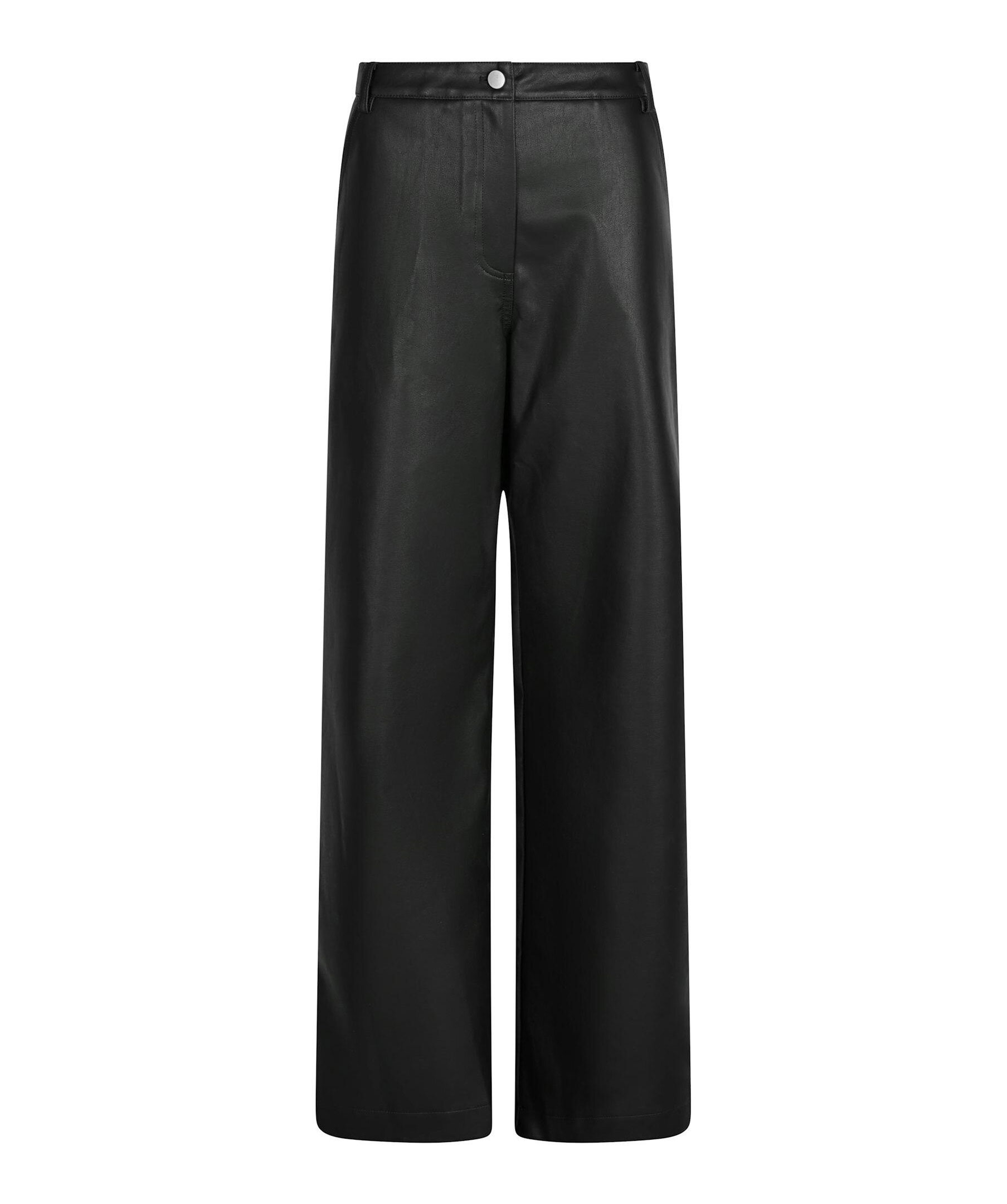 Svarta byxor i konstläderkvalitet från Neo Noir. Byxorna har raka ben, bälteshällor samt två sidfickor och två bakfickor.