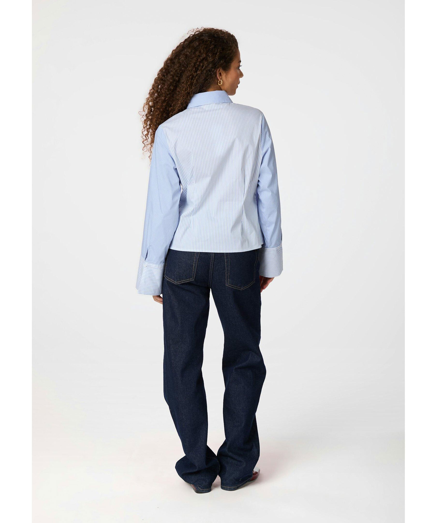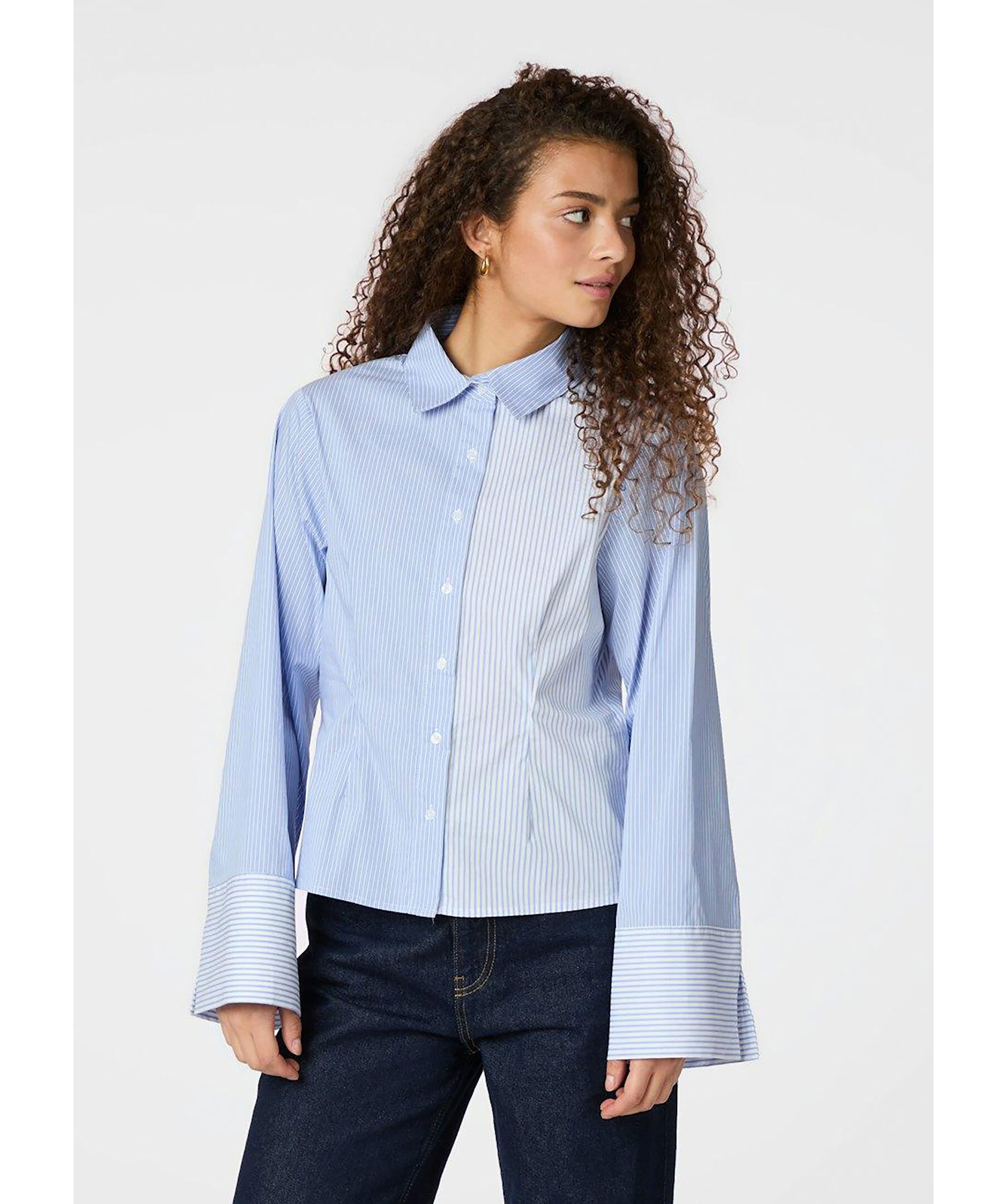 Blå, randig skjorta från Neo Noir. Skjortan stängs med knappar framtill och har vida ärmar samt en mix av två ränder. Tillverkad i en bomullsblandning.
