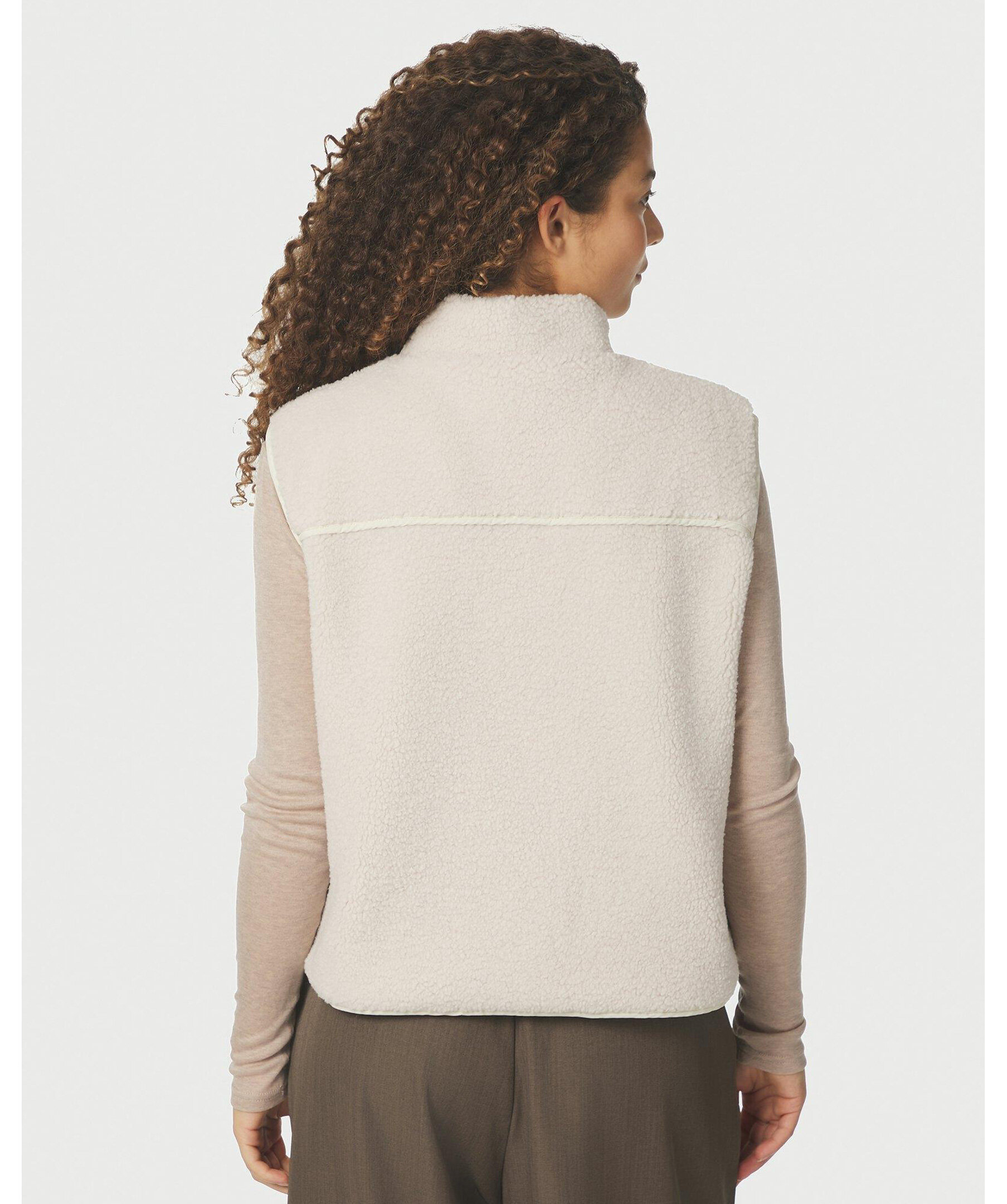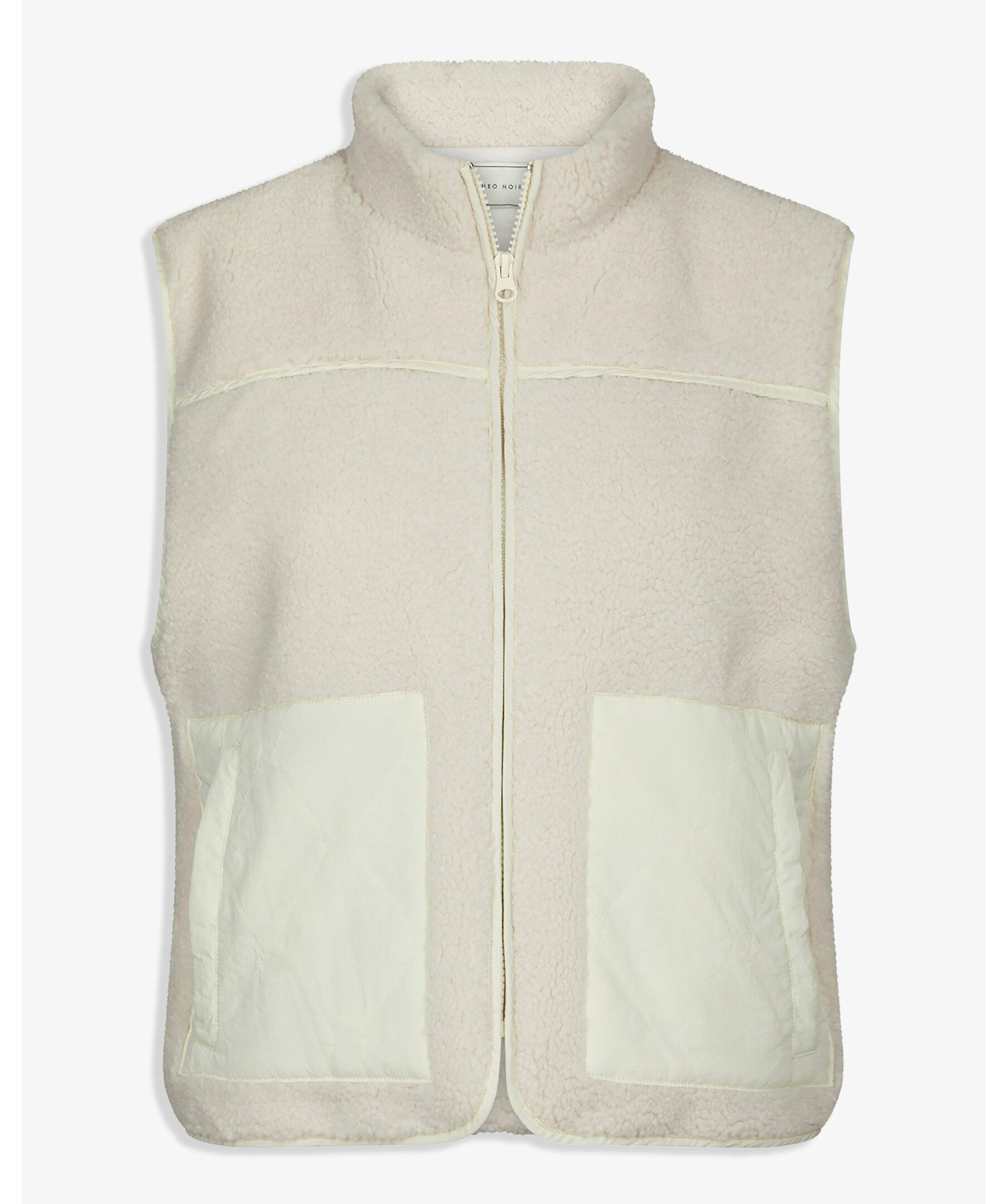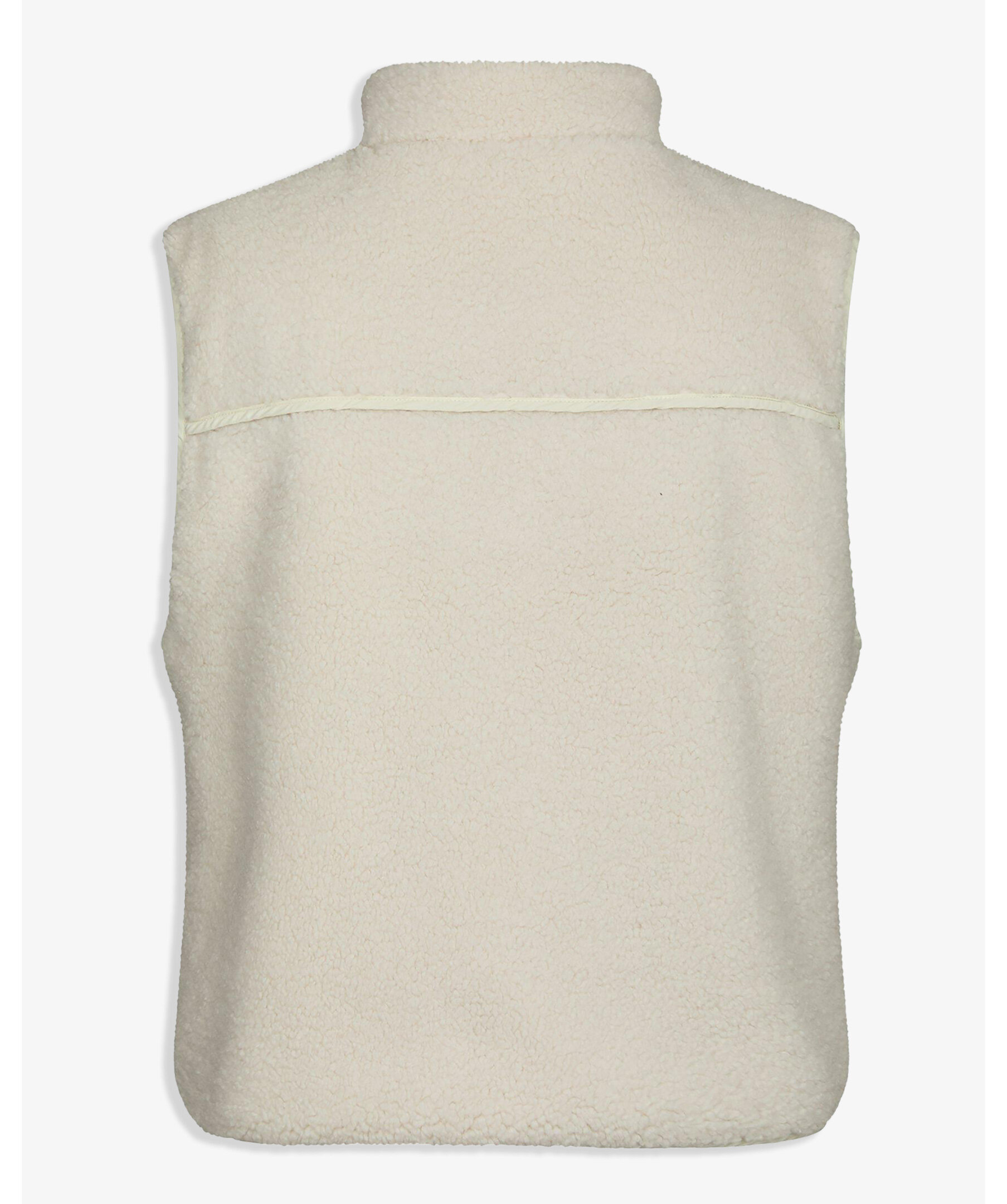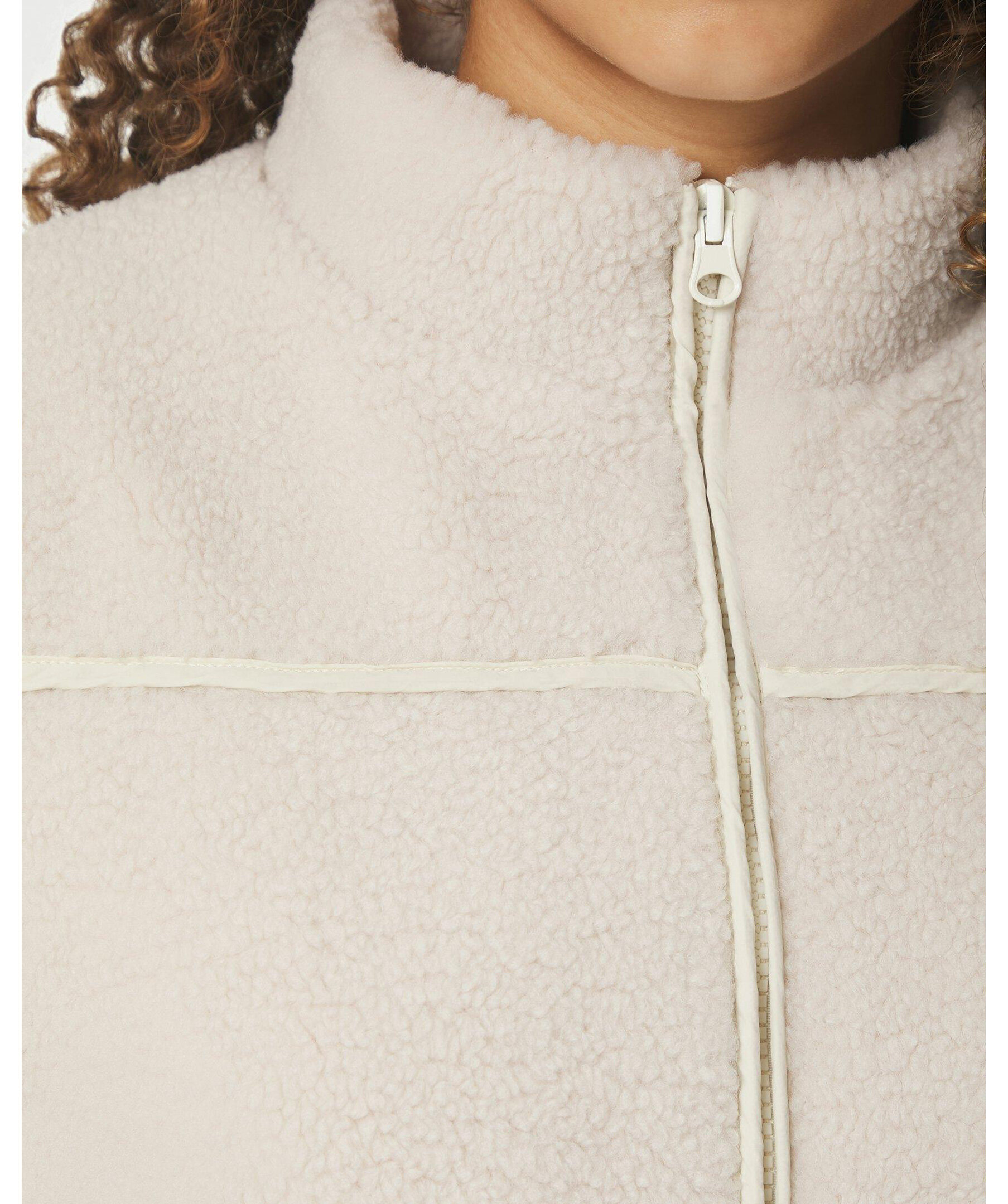 Vit kort väst i en fin och mjuk teddy-kvalitet. Vesten har även dragkedja, en kontrastficka och liten krage.