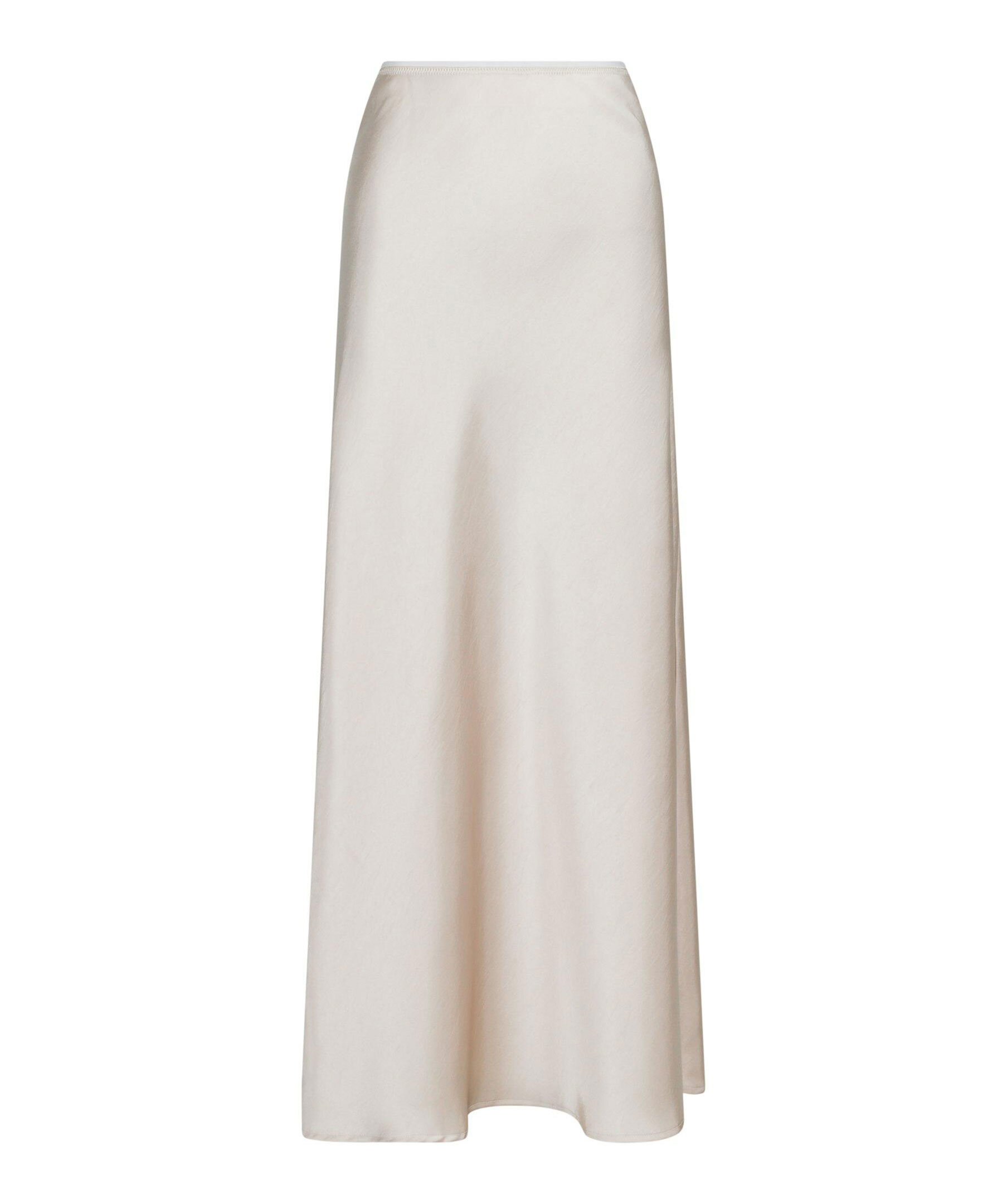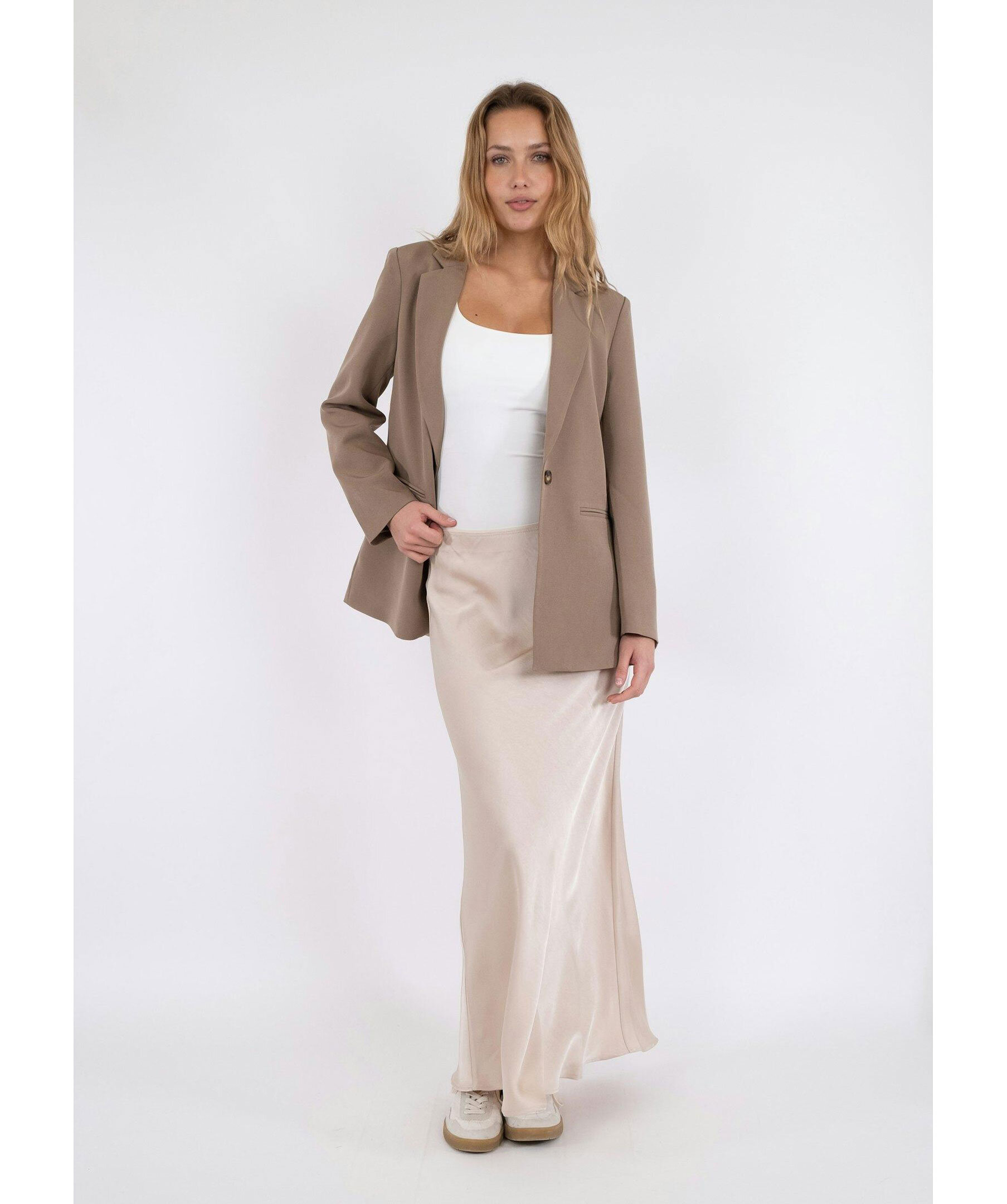 Champagnefärgad kjol i maximodell från Neo Noir. Kjolen är snedskuren och har en smickrande passform. Tillverkad i slät satäng. Elastisk band i midjan.