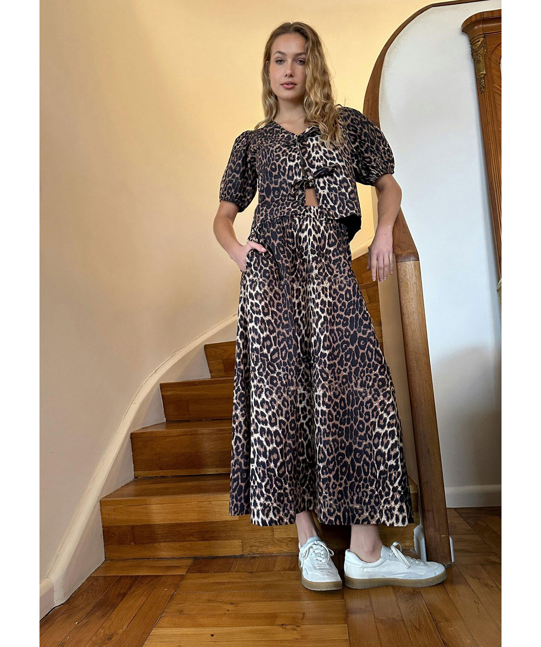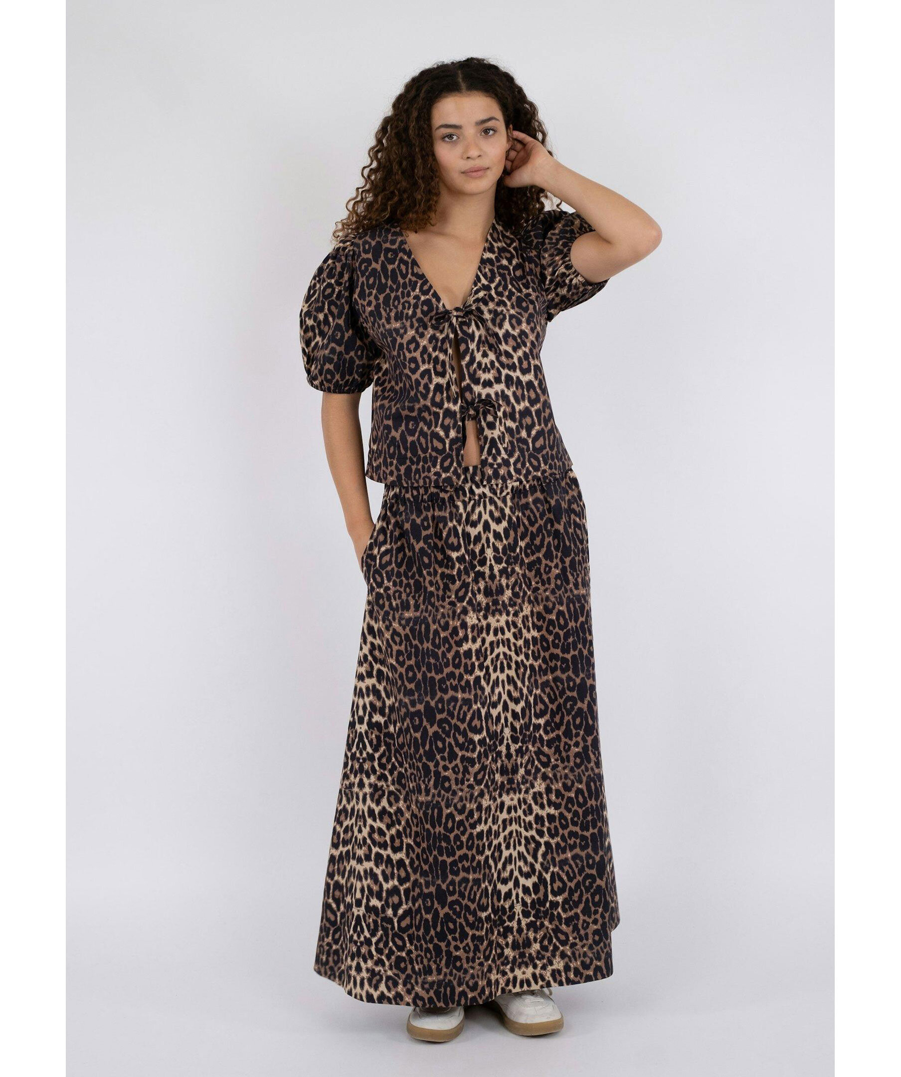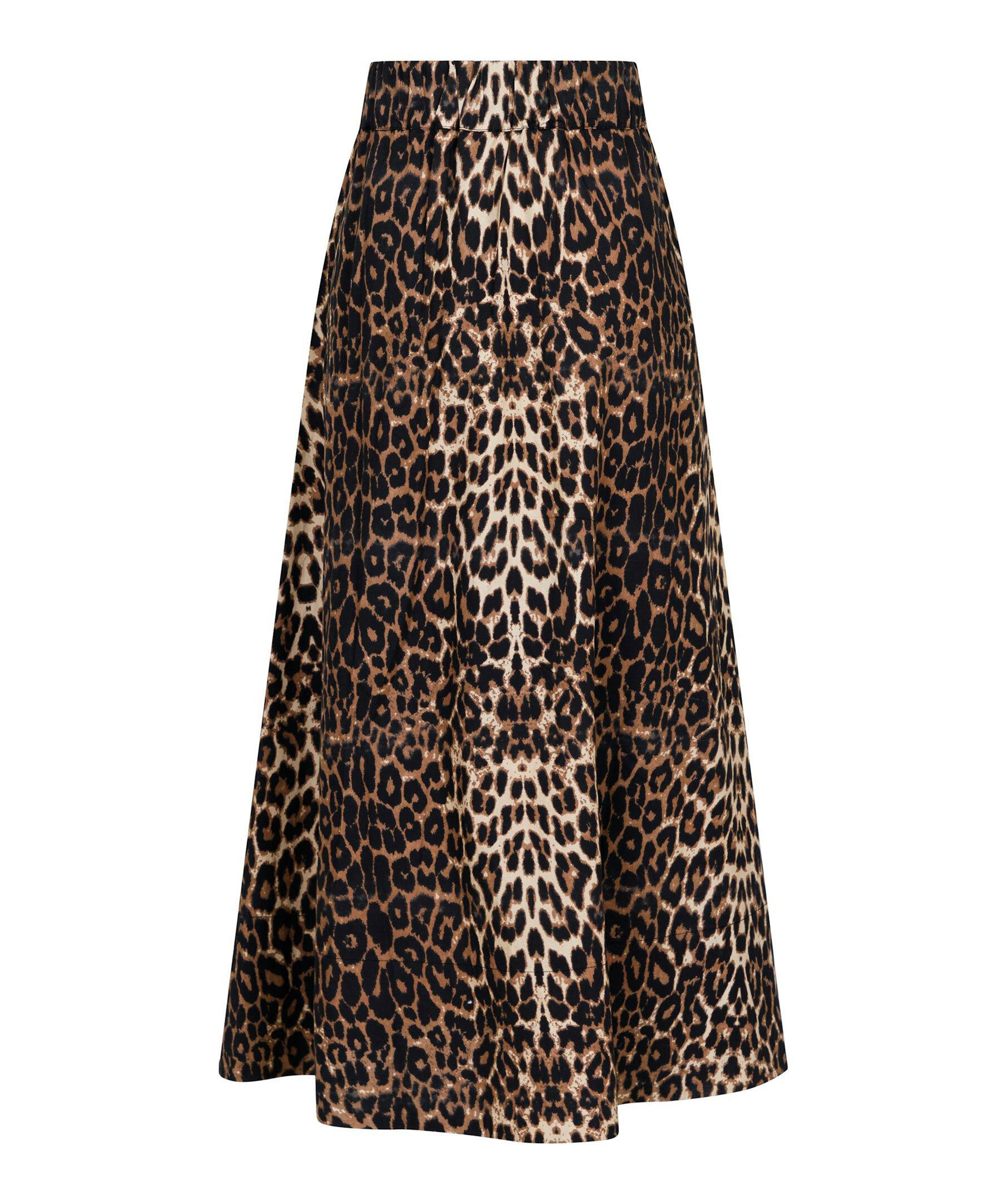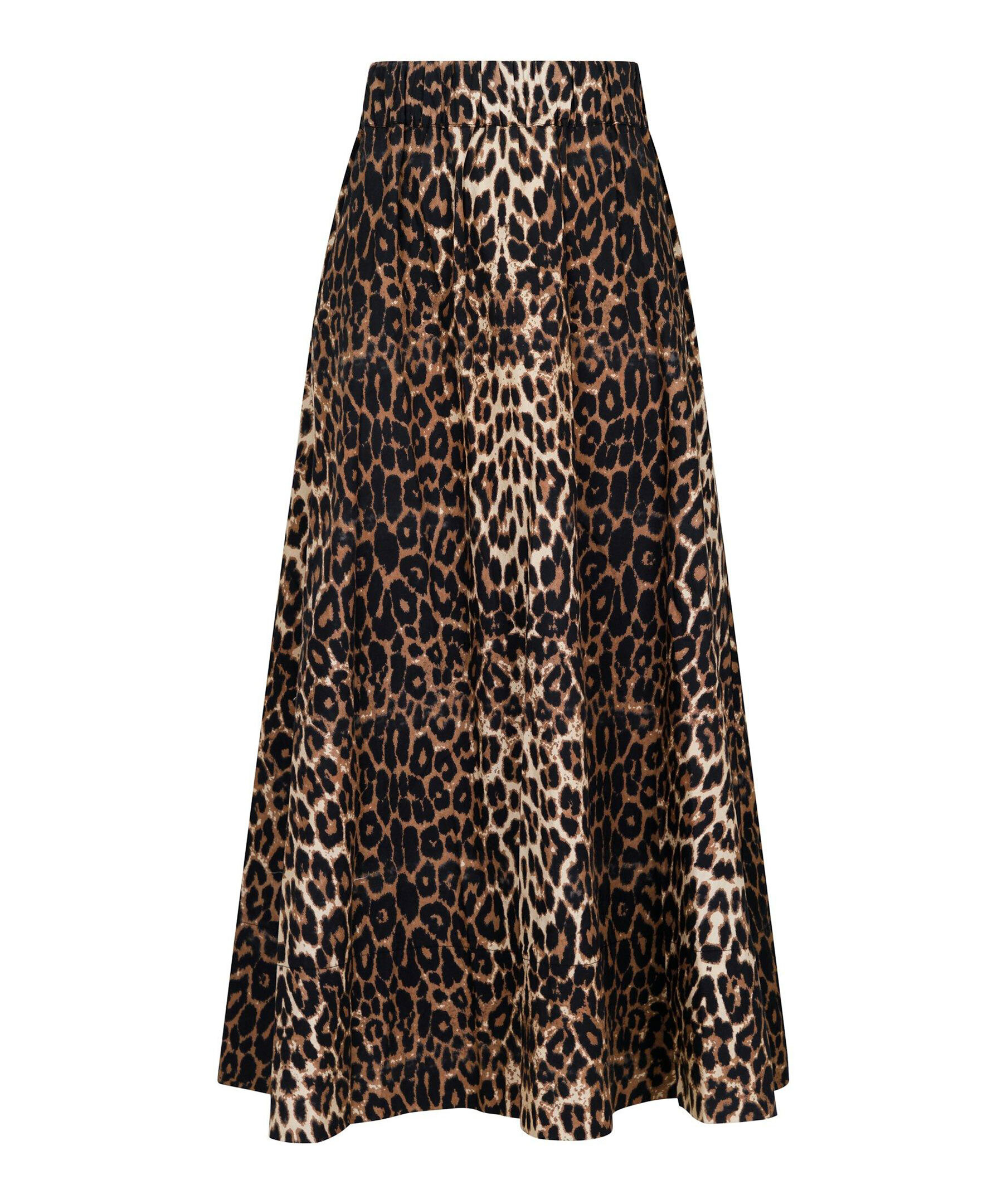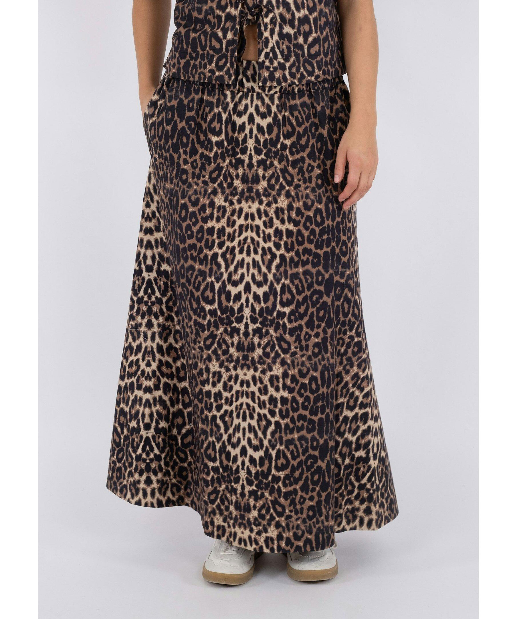 Leopardmönstrad långkjol från Neo Noir. Kjolen har resår i linningen, fickor och en bred fåll. Tillverkad i krispig poplinkvalitet.
