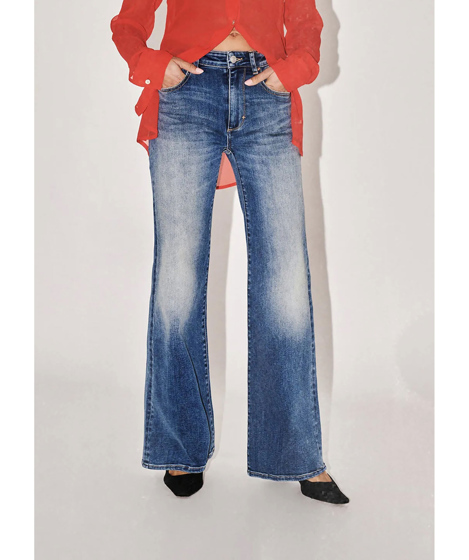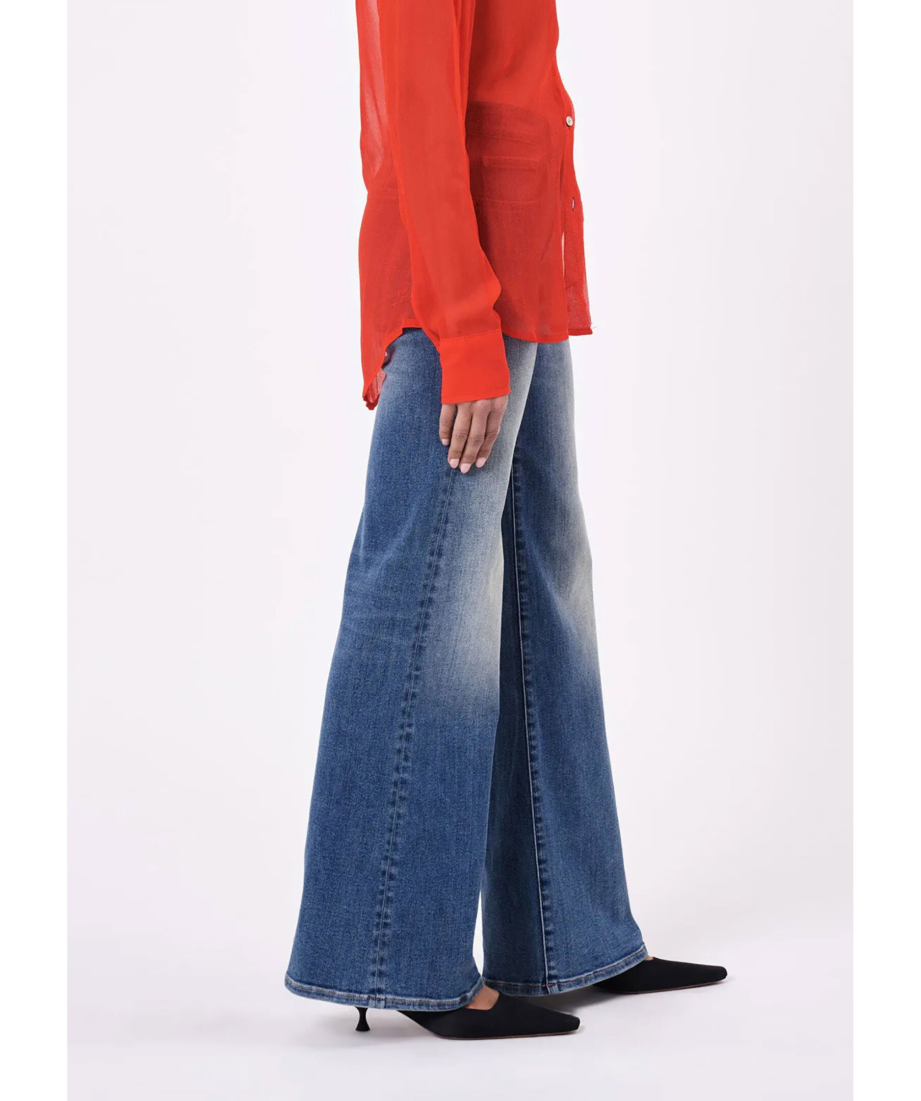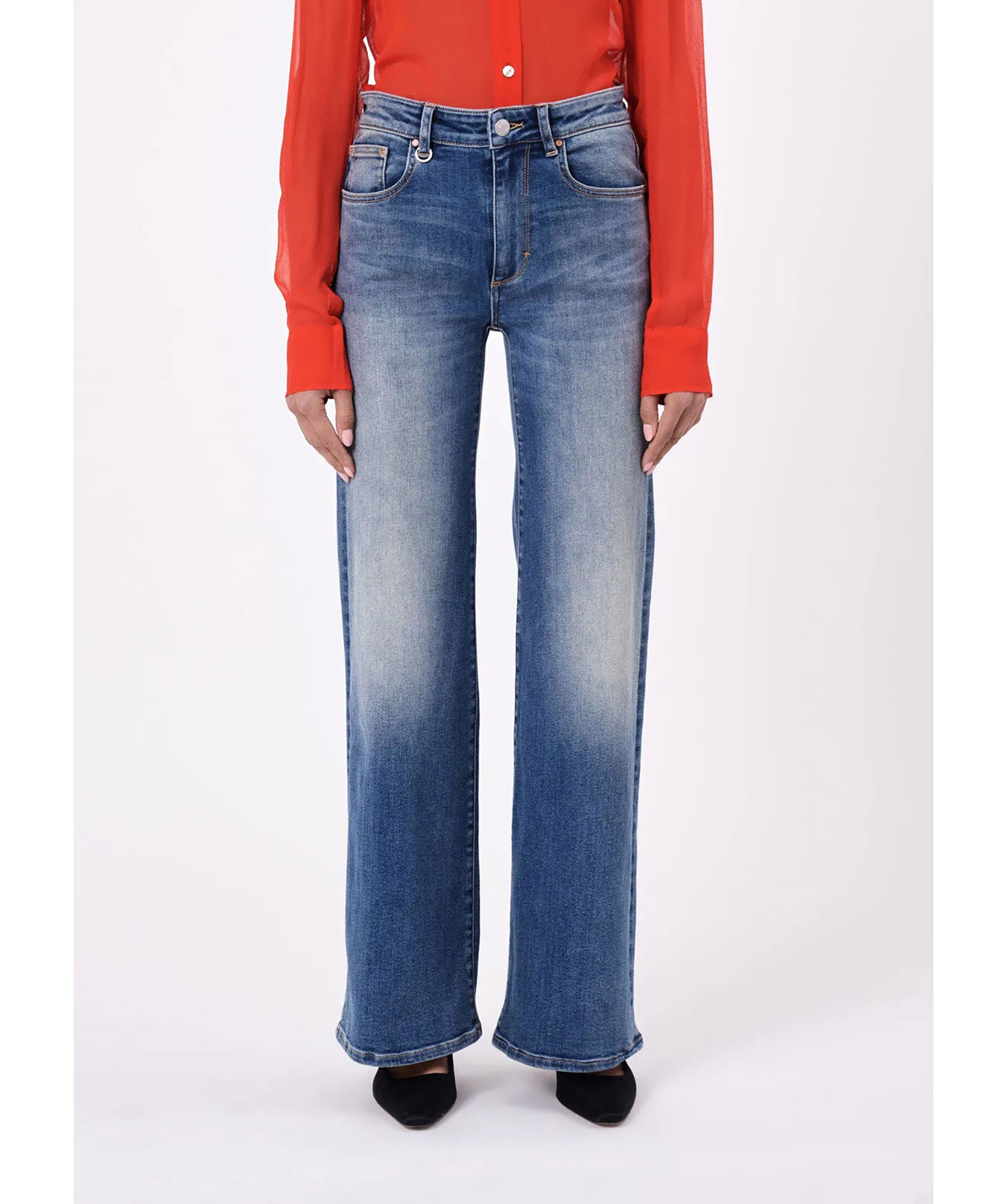 Vintage blåa jeans från Neuw med medelhög midja. Vida ben, femficksmodellen samt bälteshällor i midjan. Tillverkade i en stretchig bomullsblandning.