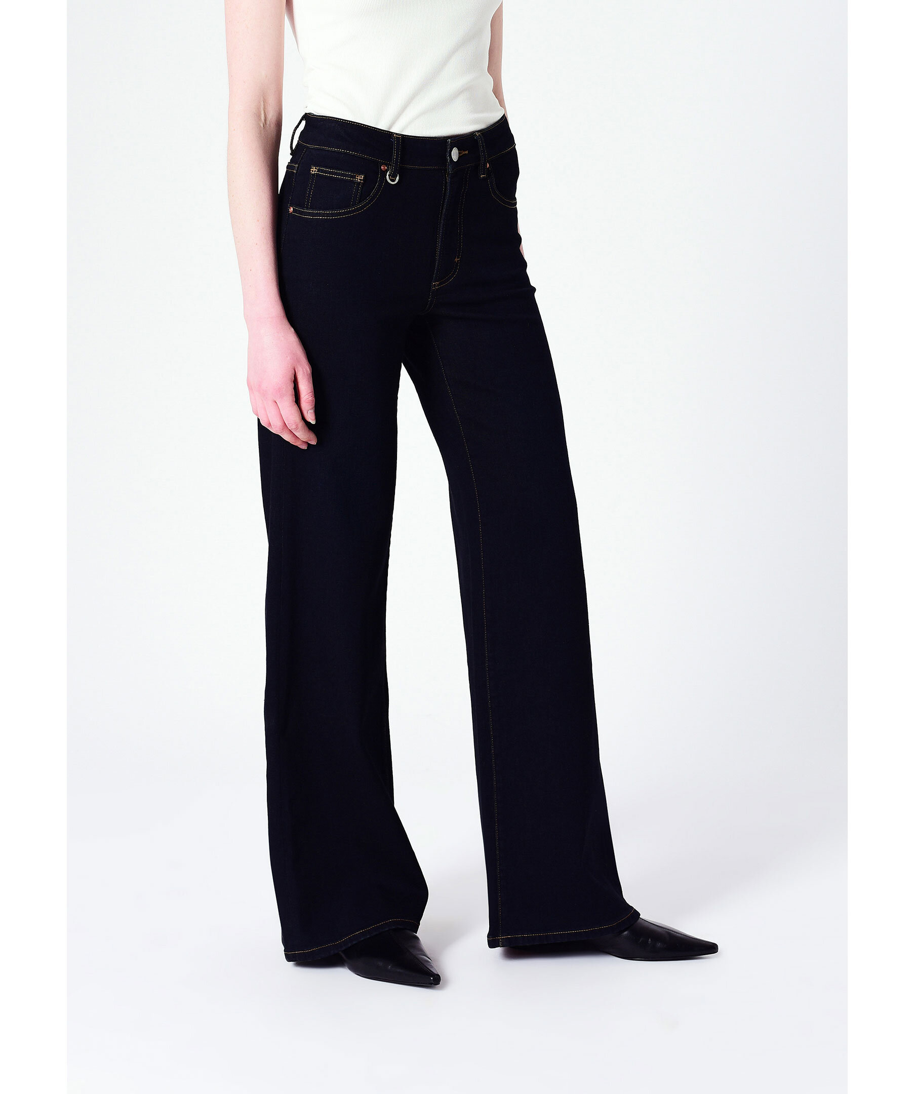 Mörkblåa jeans från Neuw. Jeansen har en medelhög midja med bälteshällor, fem fickor, vida ben samt en liten metallring framtill. Tillverkade i en bomullsblandning.