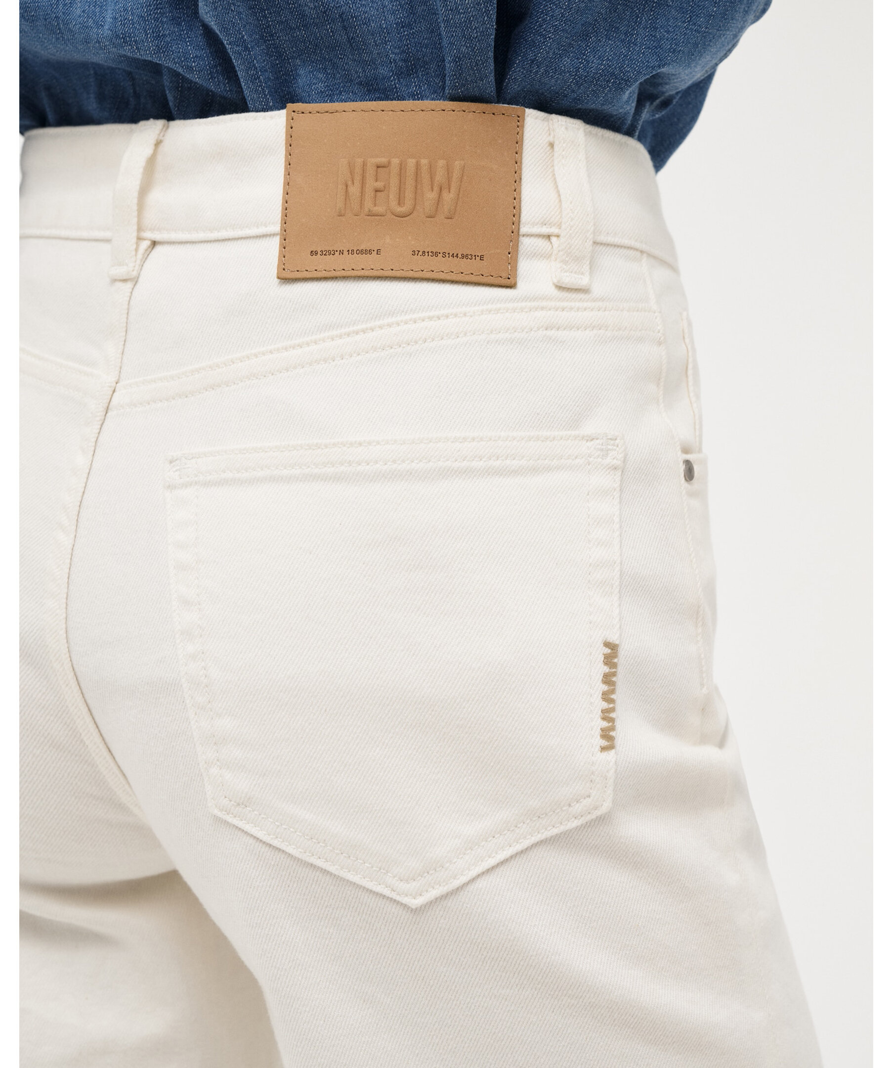 Vita jeans från Neuw. Jeansen kombinerar en mid rise-midja med en skräddarsydd vid silhuett.