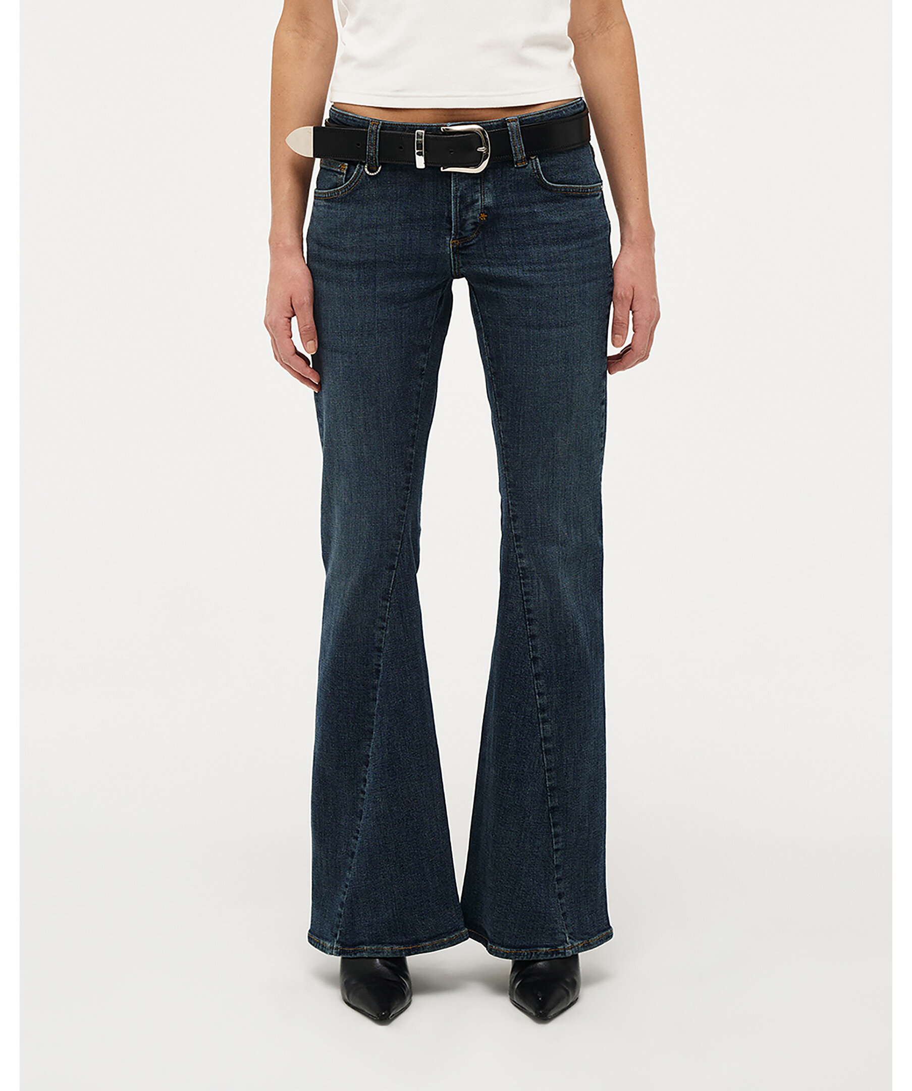 Jeans från Neuw med smal passform över låren och dramatisk utsvängning från knät.