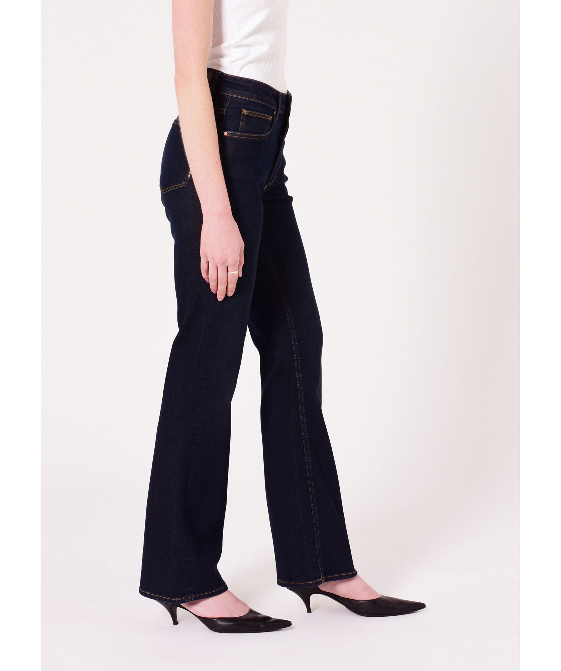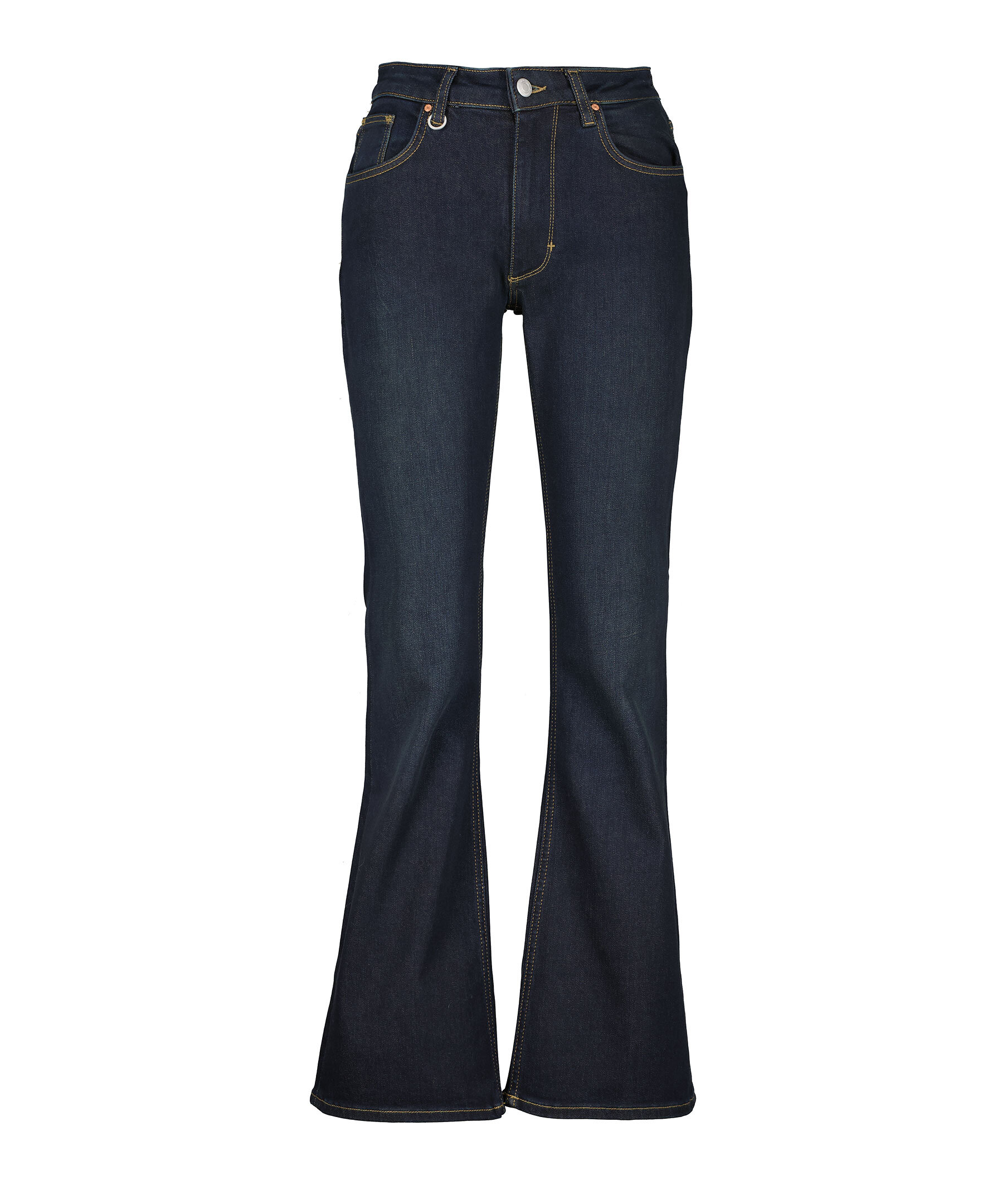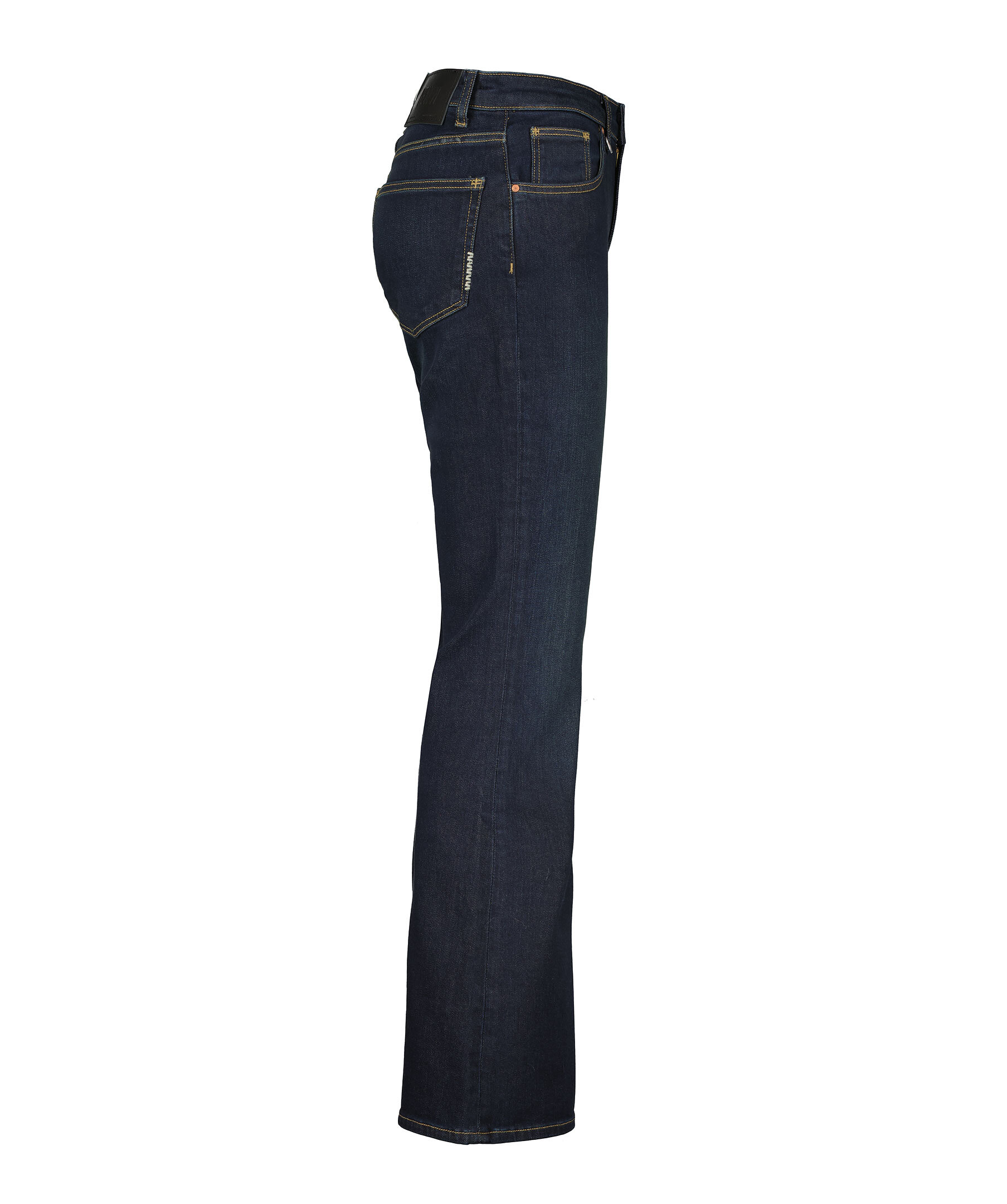Mörkblå jeans från Neuw. Jeansen är en femficksmodell med bälteshällor samt en liten metallring framtill. Tillverkad av en bomullsblandning