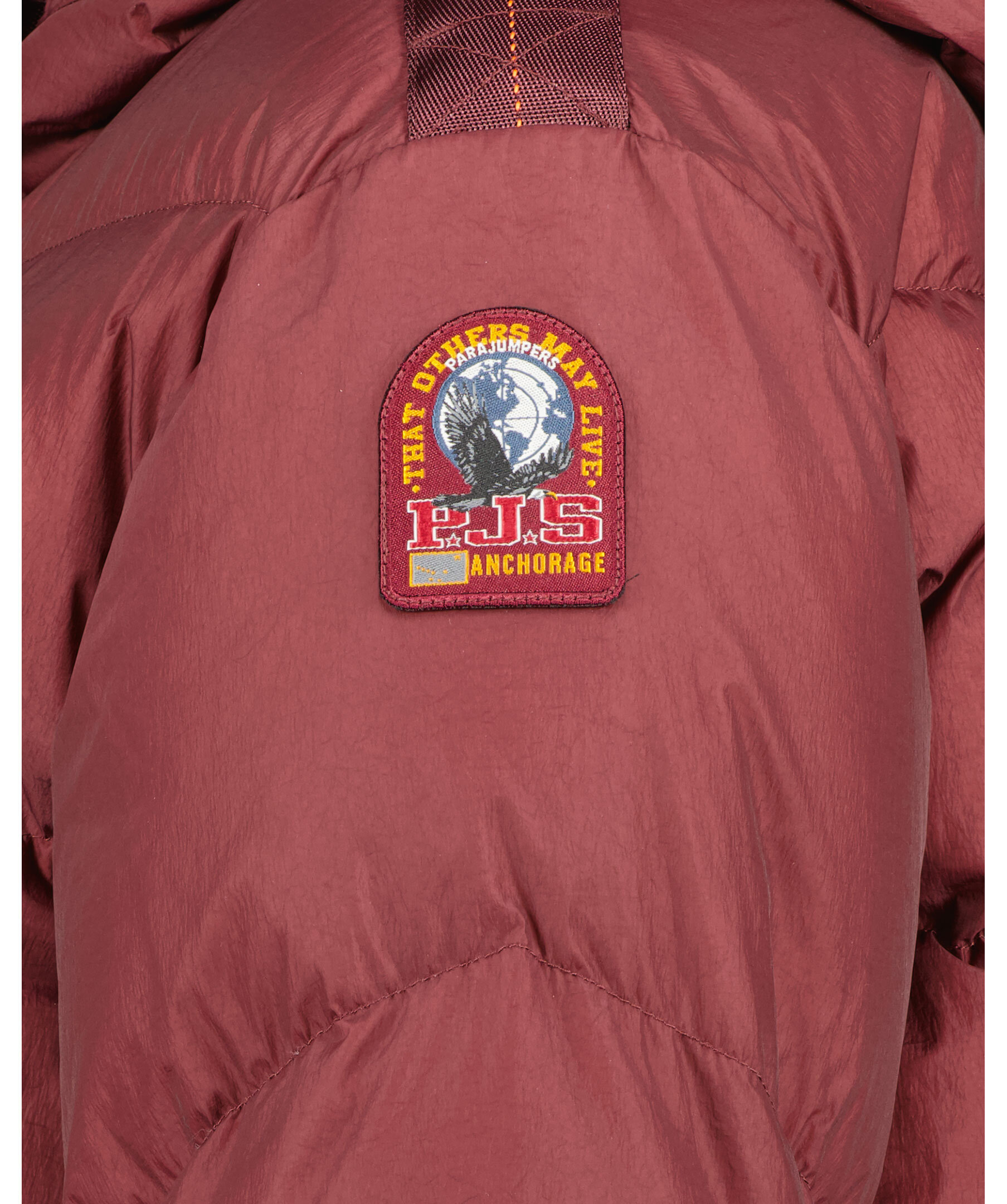 Vinröd pufferjacka från Parajumpers. Jackan stängs med tvåvägsdragkedja och har huva med dragsko, två sidfickor med dragkedja samt patch-logotyp på vänster ärm. Tillverkad i polyamid med dunfyllning.