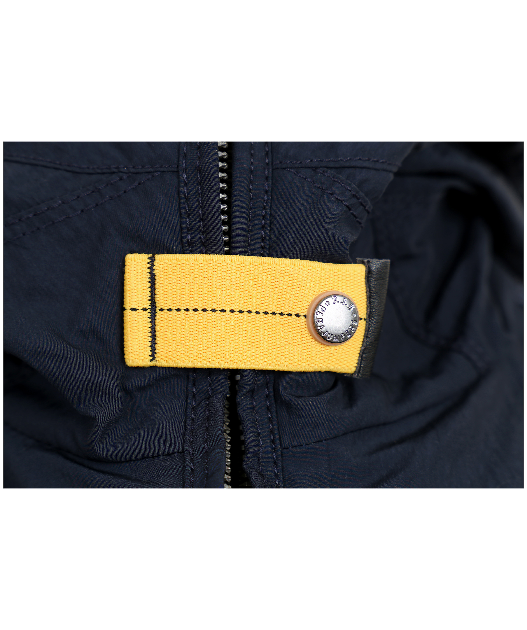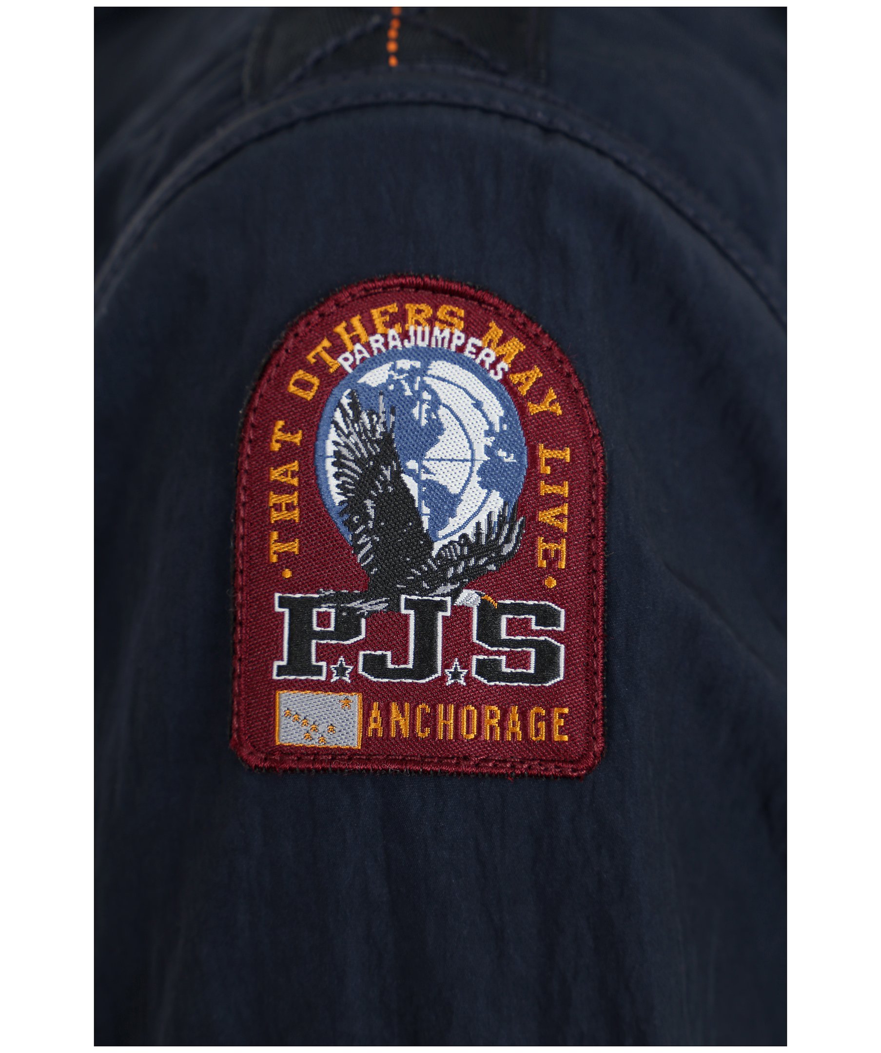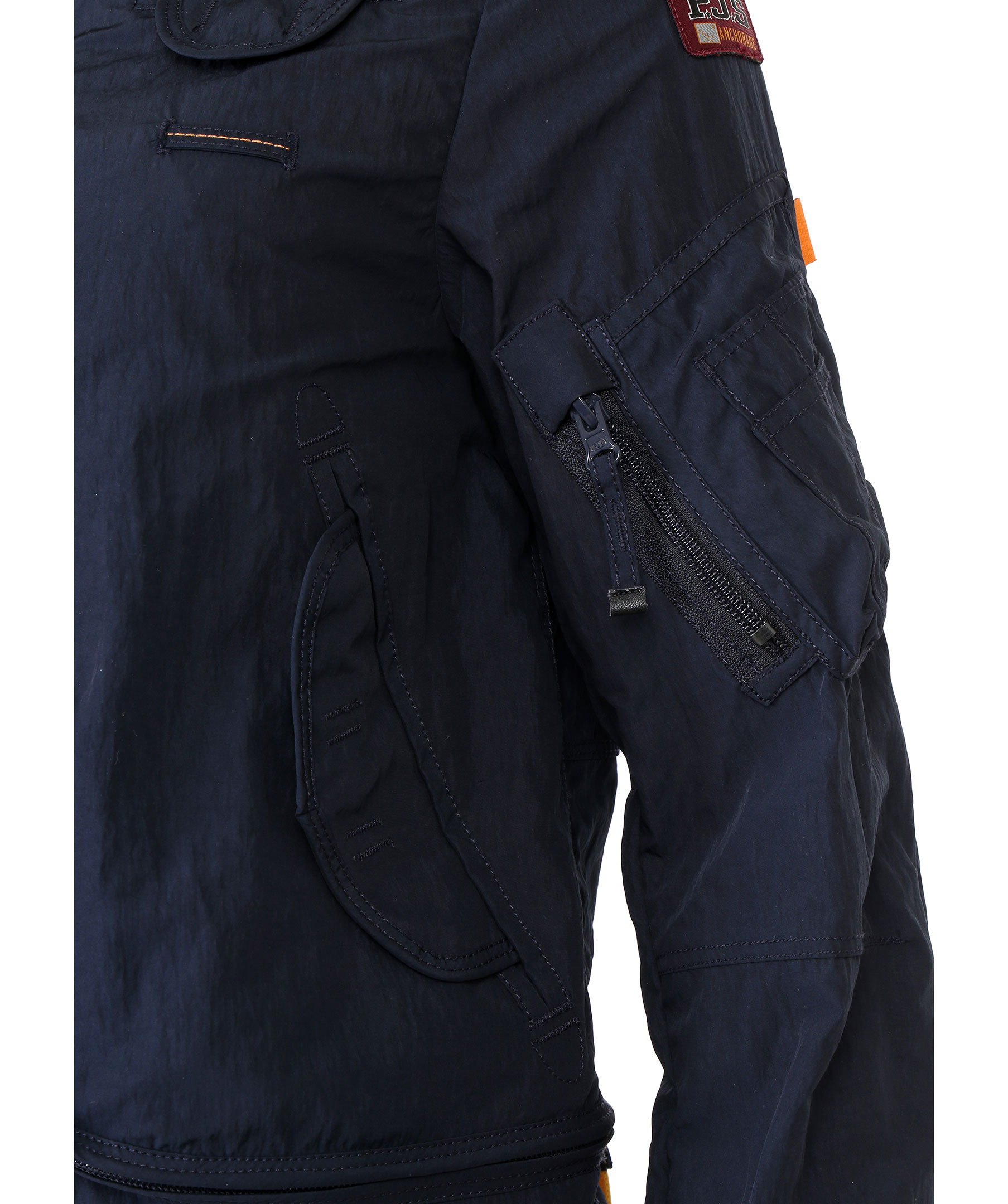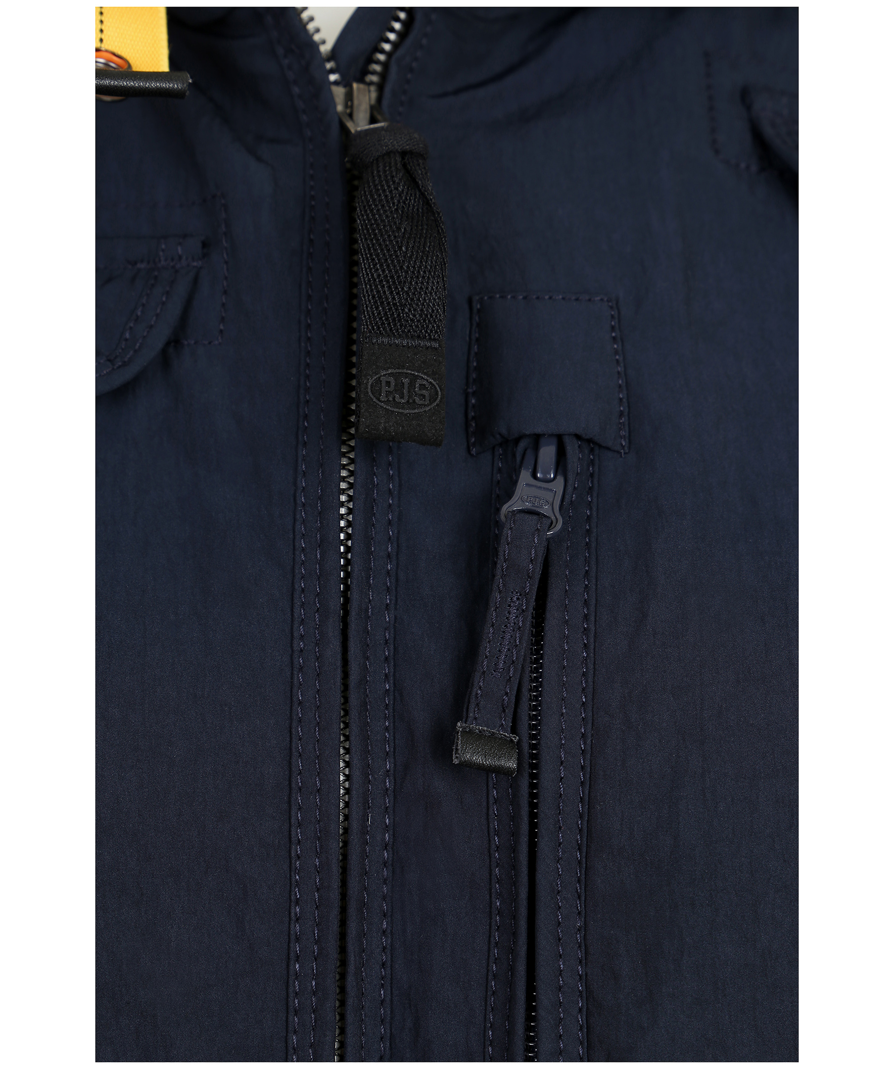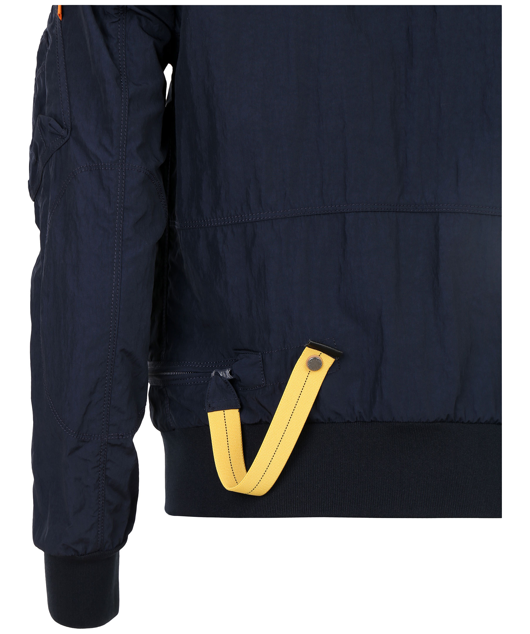 Marinblå vårjacka i tunt material, från Parajumpers. Jackan har många praktiska fickor, spänne i kragen samt patch på vänster ärm. Modellen är 164 cm lång och bär storlek S.