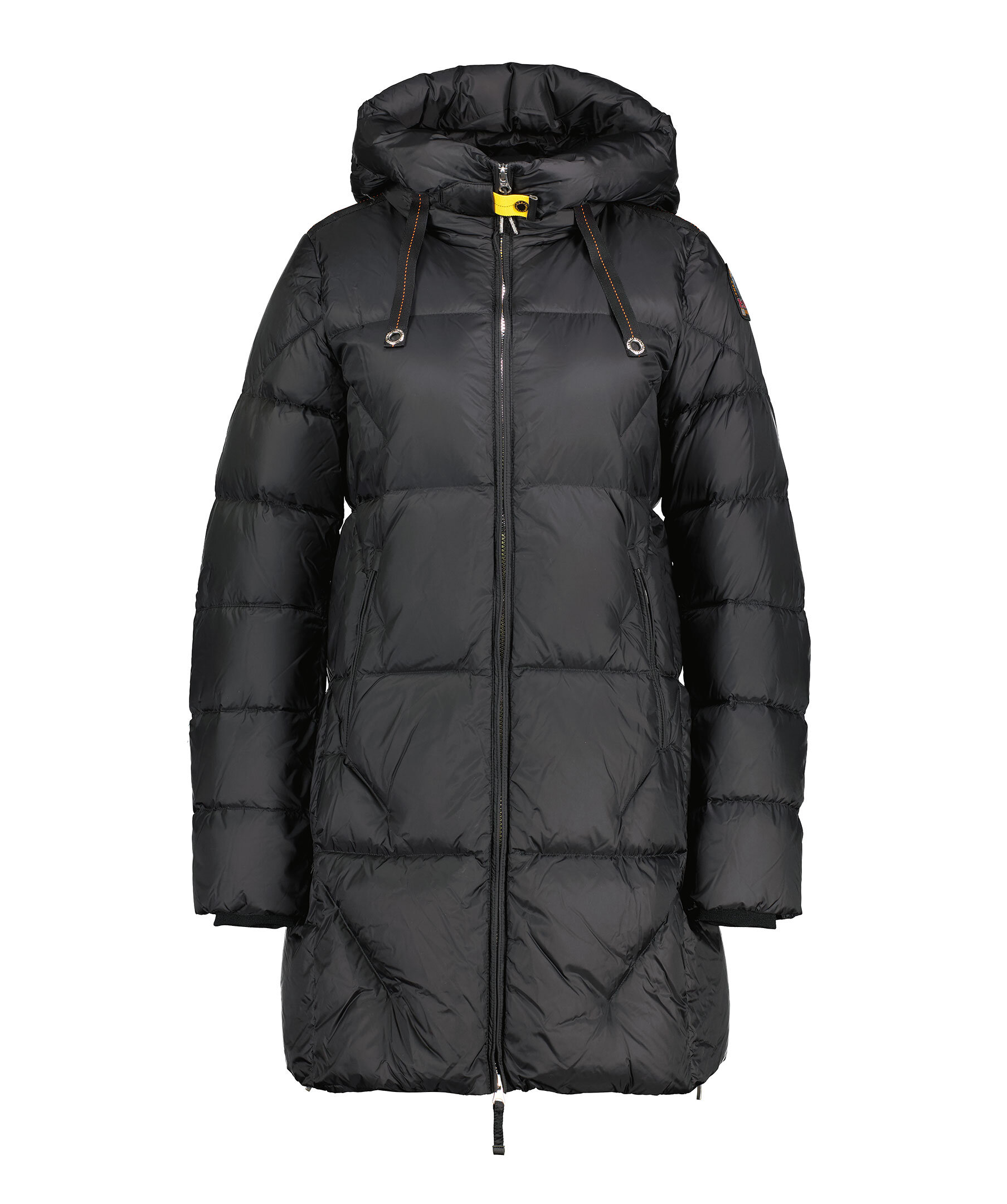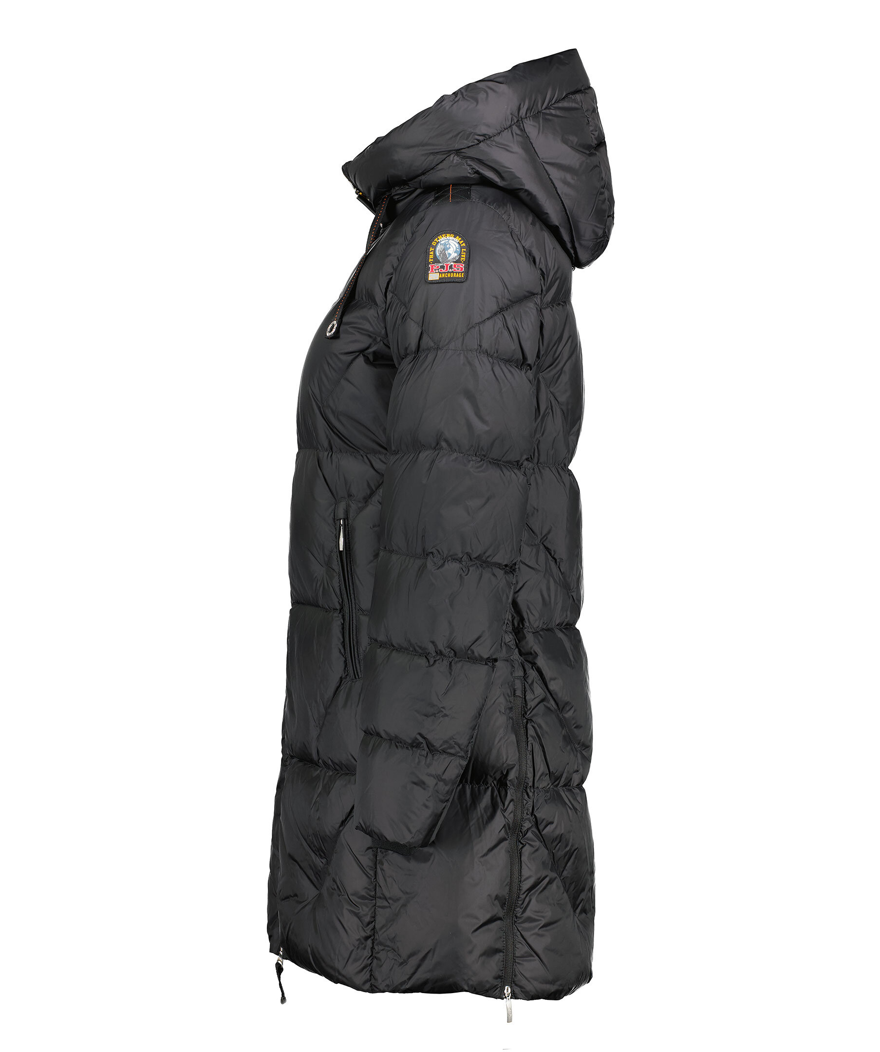 Svart, lång pufferjacka med huva från Parajumpers. Jackan stängs med tvåvägsdragkedja och har två sidfickor med dragkedja, patch-logotyp på vänster ärm samt en innerficka i mesh. Tillverkad i polyamide med dunfyllning. ■ OBS! Modellbilderna visar endast passform
