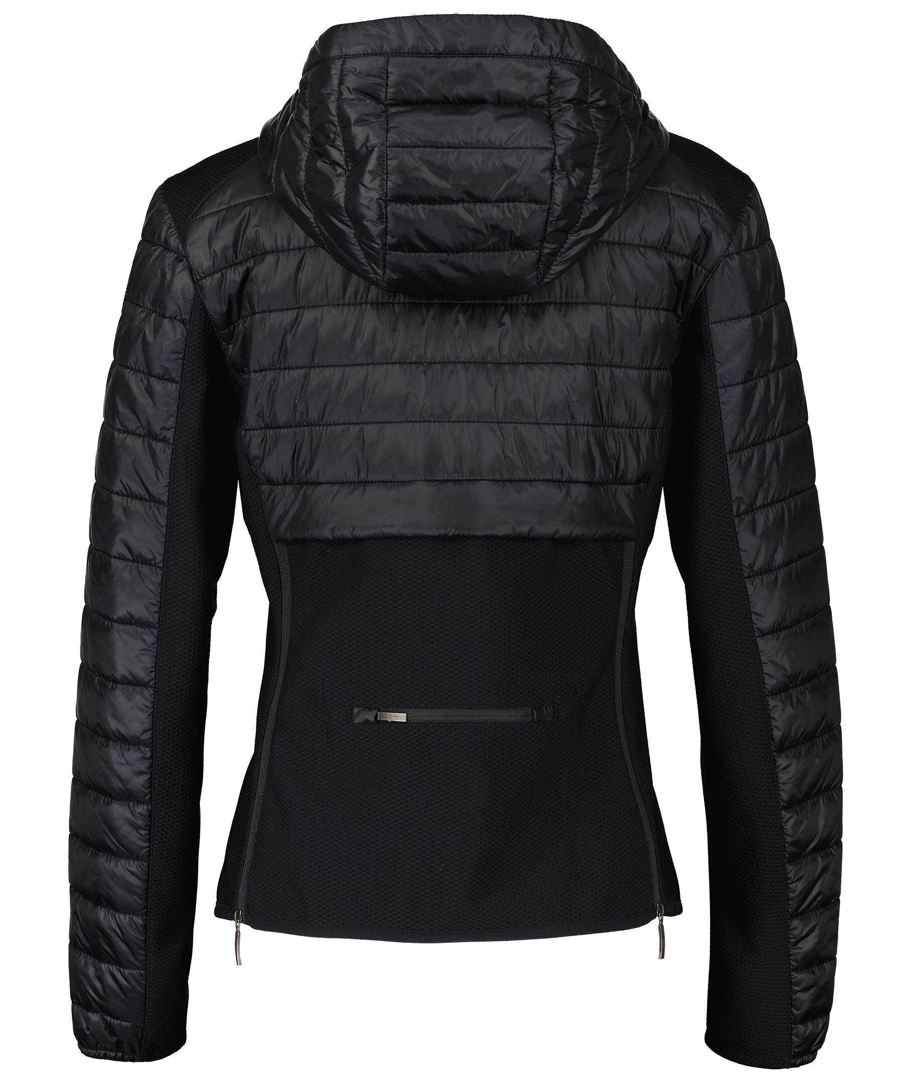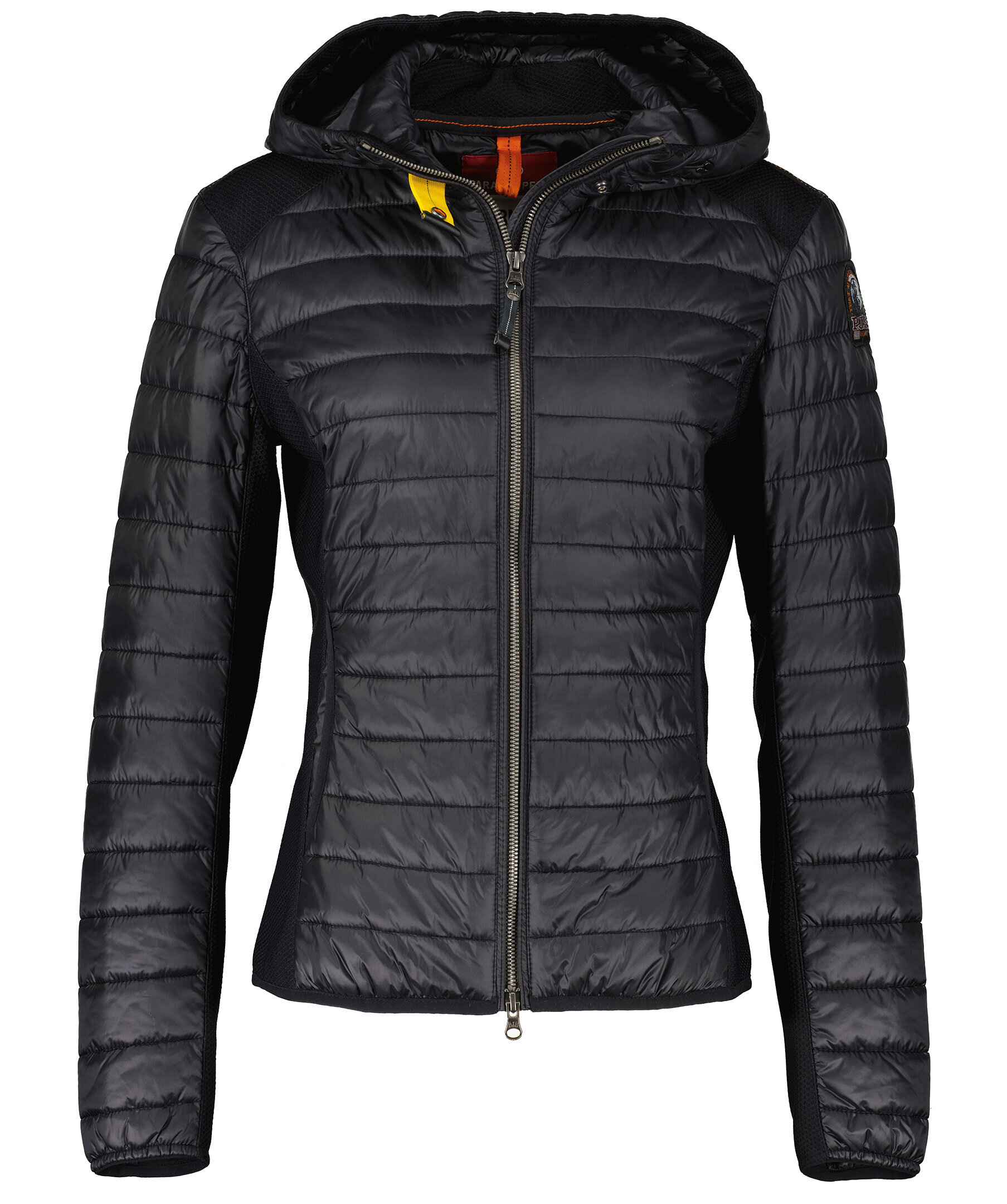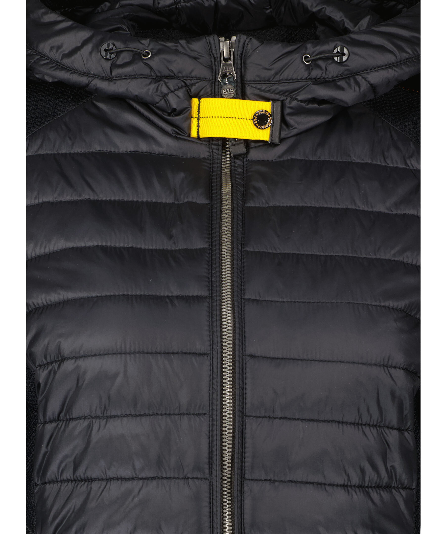 Svart hybridjacka från Parajumpers. Luva med dragsko Ärmarna delvis i mesh. Stängs med tvåvägsdragkedja. Två fickor framtill med smal elastiskmudd. Gult spänne vid kragen. Dragsko i luvan. Patch med logotyp på vänster ärm.