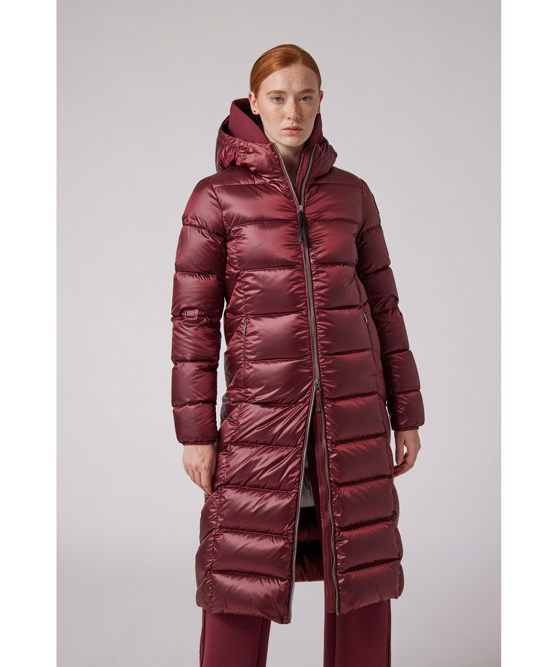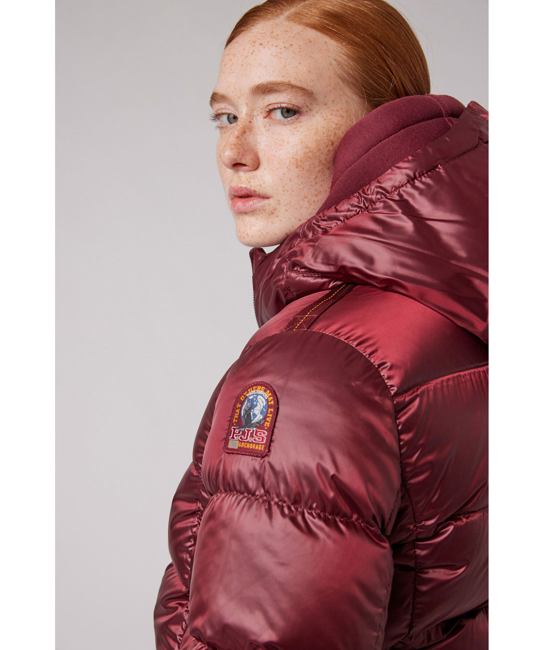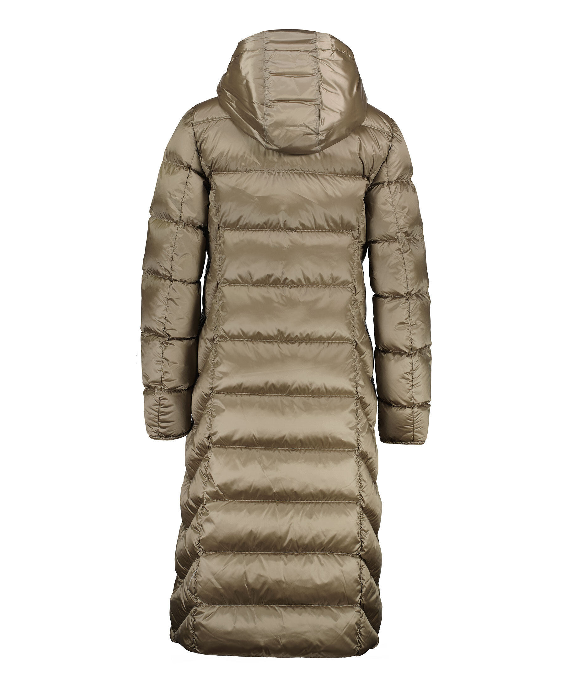 Taupefärgad, lång pufferjacka med huva från Parajumpers. Tillverkad i glänsande nylon-polyestertwill. Jackan stängs med tvåvägsdragkedja och har en patch-logotyp på vänster ärm samt två dragkedjefickor på utsidan. Tillverkad i en polyesterblandning. ■ OBS! Modellbilderna visar endast passform