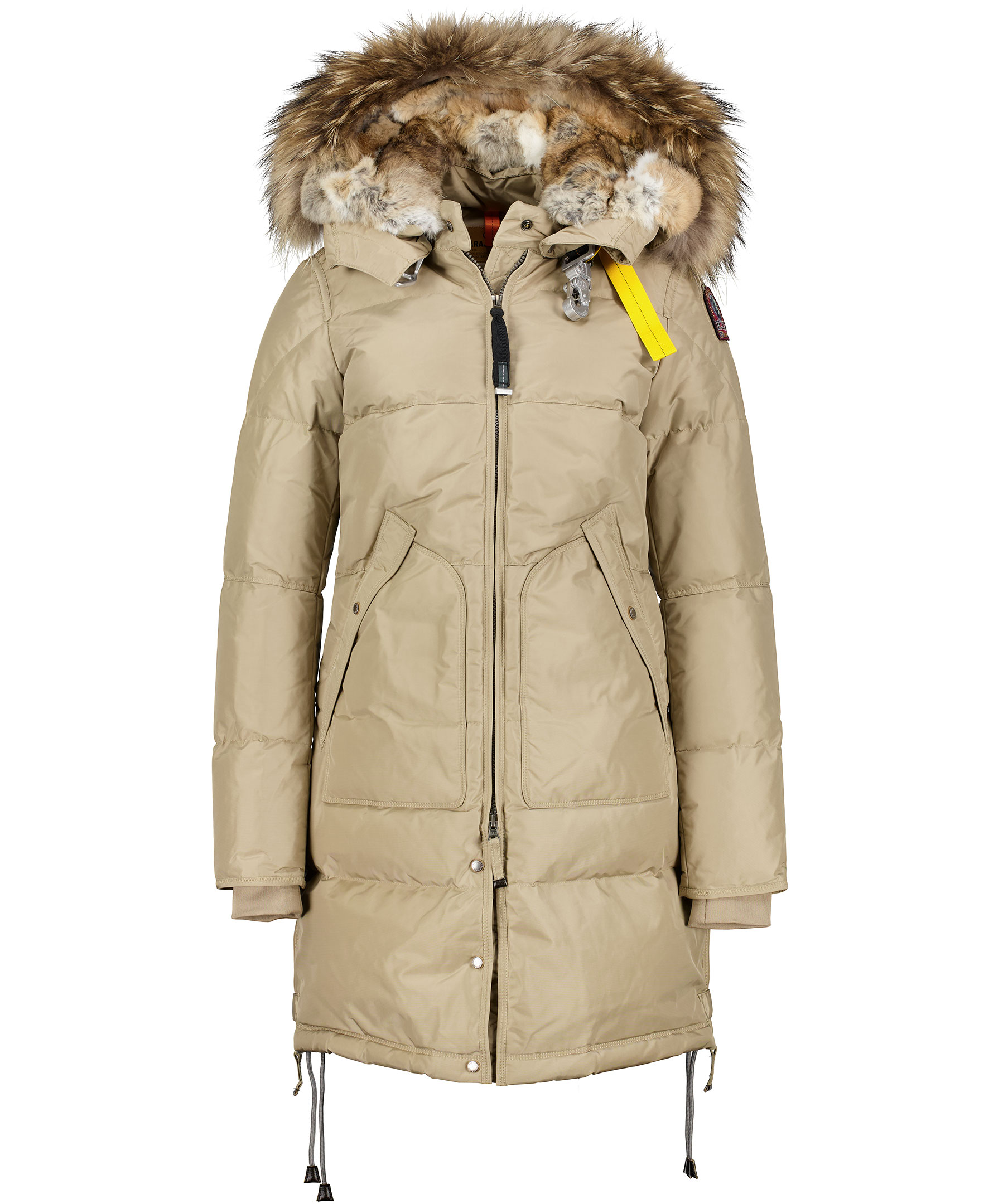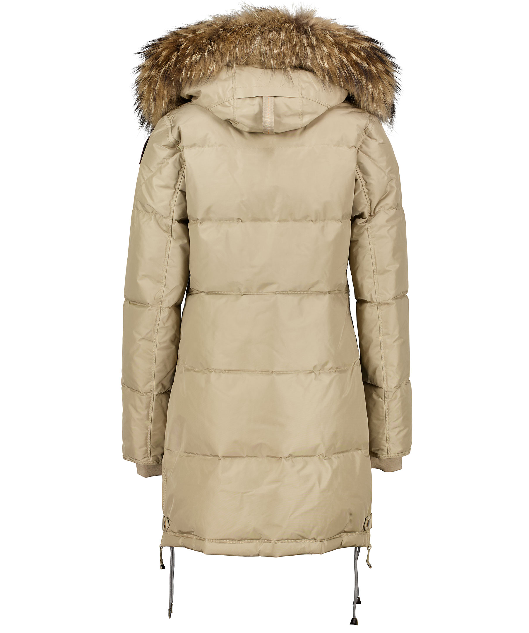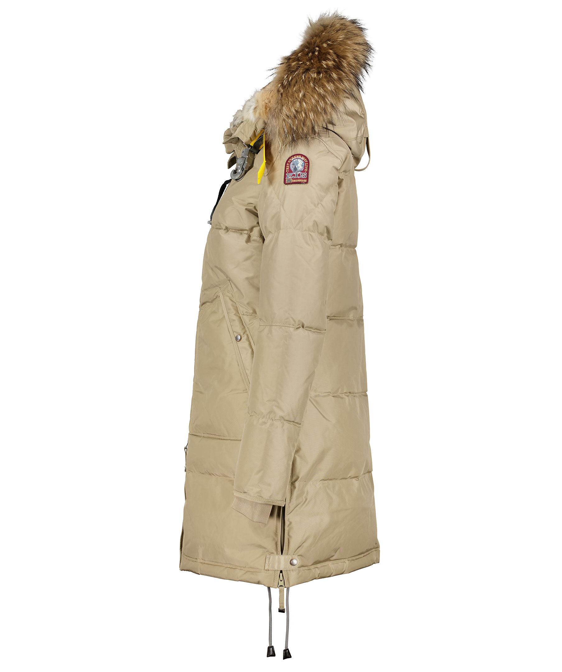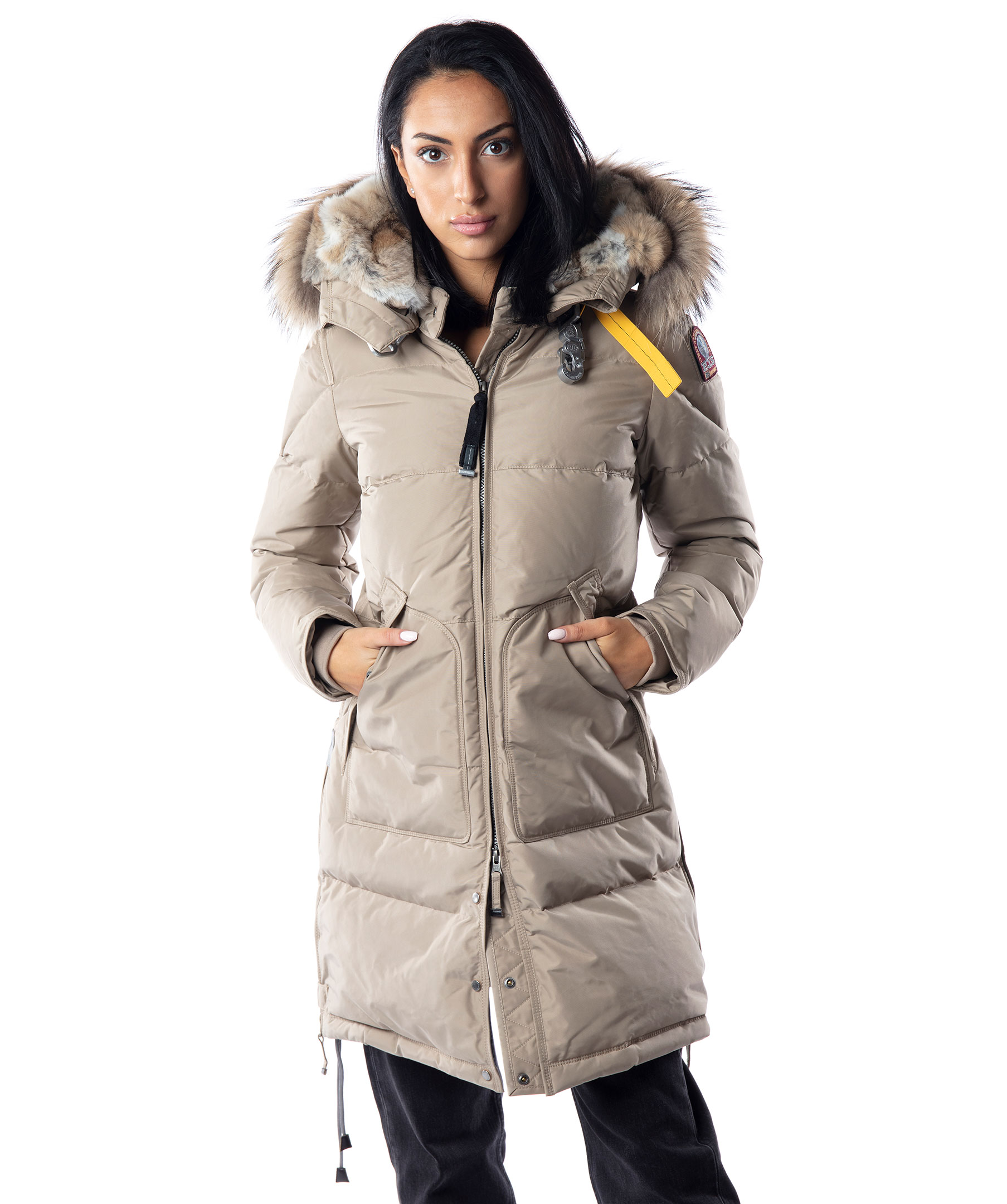 Beige lång dunjacka från Parajumpers. Två framfickor, stort löstagbart spänne i halsen och päls på och i luvan. Brodyrmärke på ärmen. Stängs med dragkedja och tryckknappar. Ingår i Parajumpers Masterpiece Series bestående av deras exklusivaste modeller. Modellen är 170 cm lång och bär storlek S. TIPS! Ånga pälsen för att få den stor och fluffig. OBS! Naturpälsar är unika och kan skilja sig från bilden.