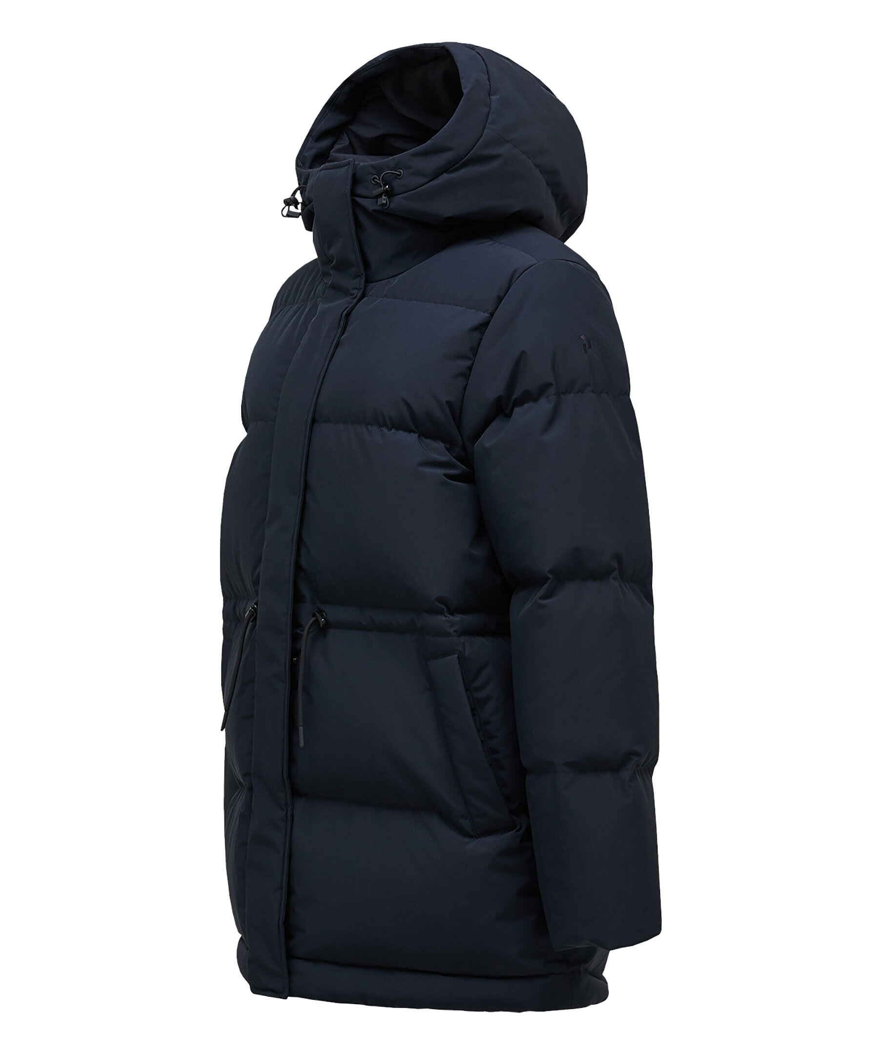 Svart dunparka från Peak Performance. Jackan stängs med tvåvägsdragkedja och har huva med dragsko, dragsko i midjan, två sidfickor samt en innerficka med dragkedja. Broderad logotyp på vänster ärm. Tillverkad i polyester med dunfyllning.