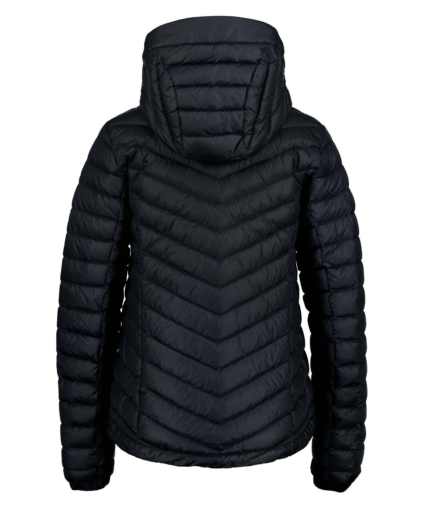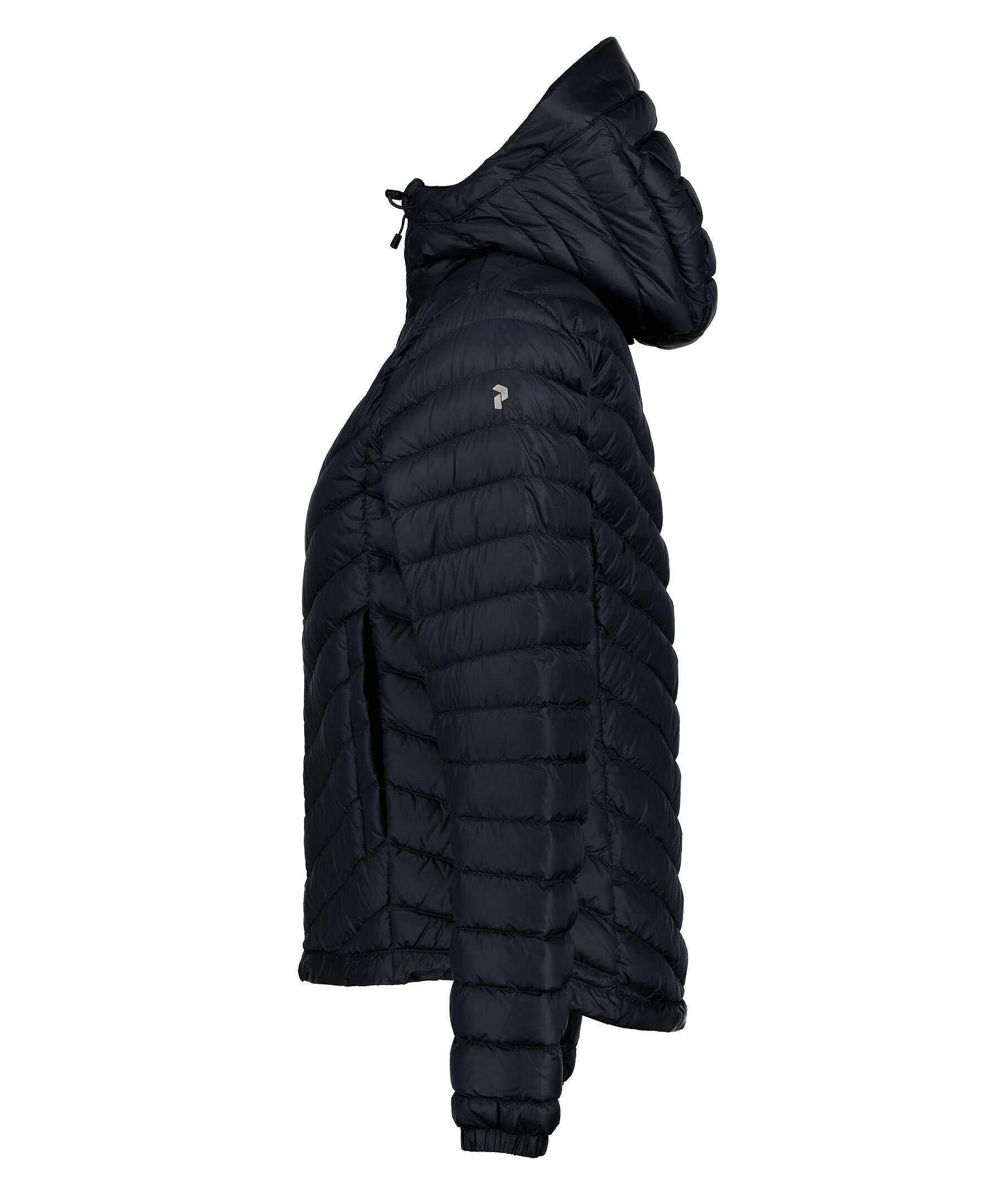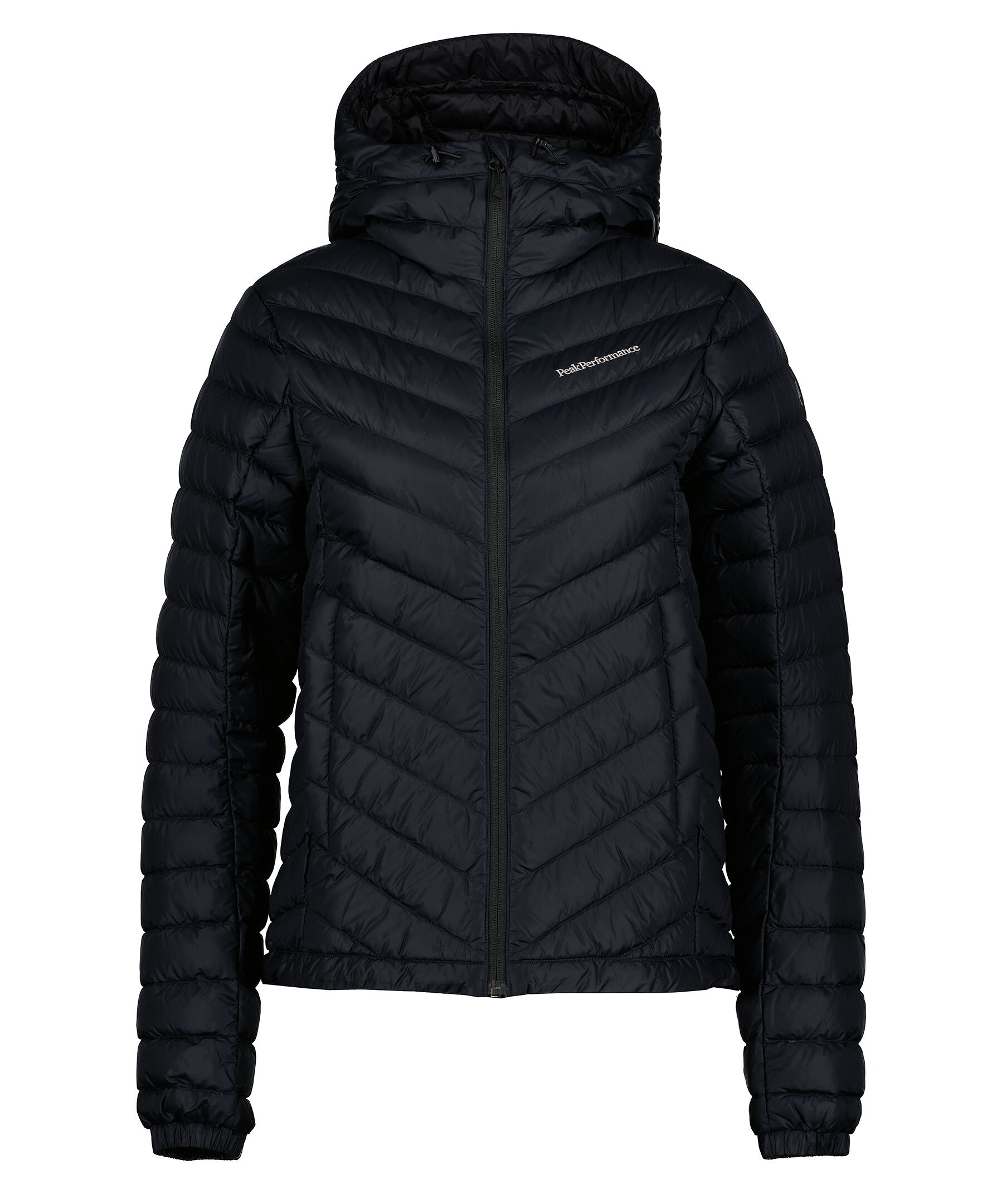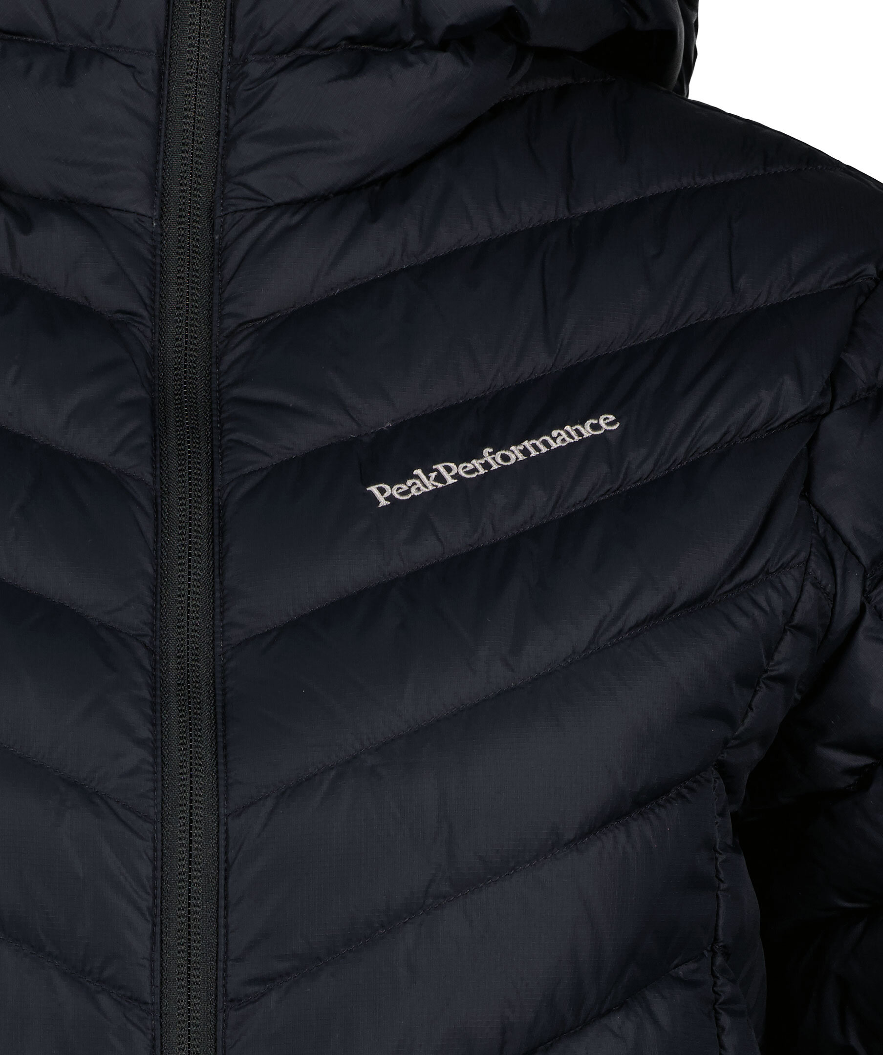 Svart quiltad dunjacka från Peak Performance. Stängs framtill med dragkedja. Luva med dragsko. Broderad logotyp på vänster bröst och vänster ärm. Två fickor framtill som stängs med dragkedja. Innerficka med dragkedja.