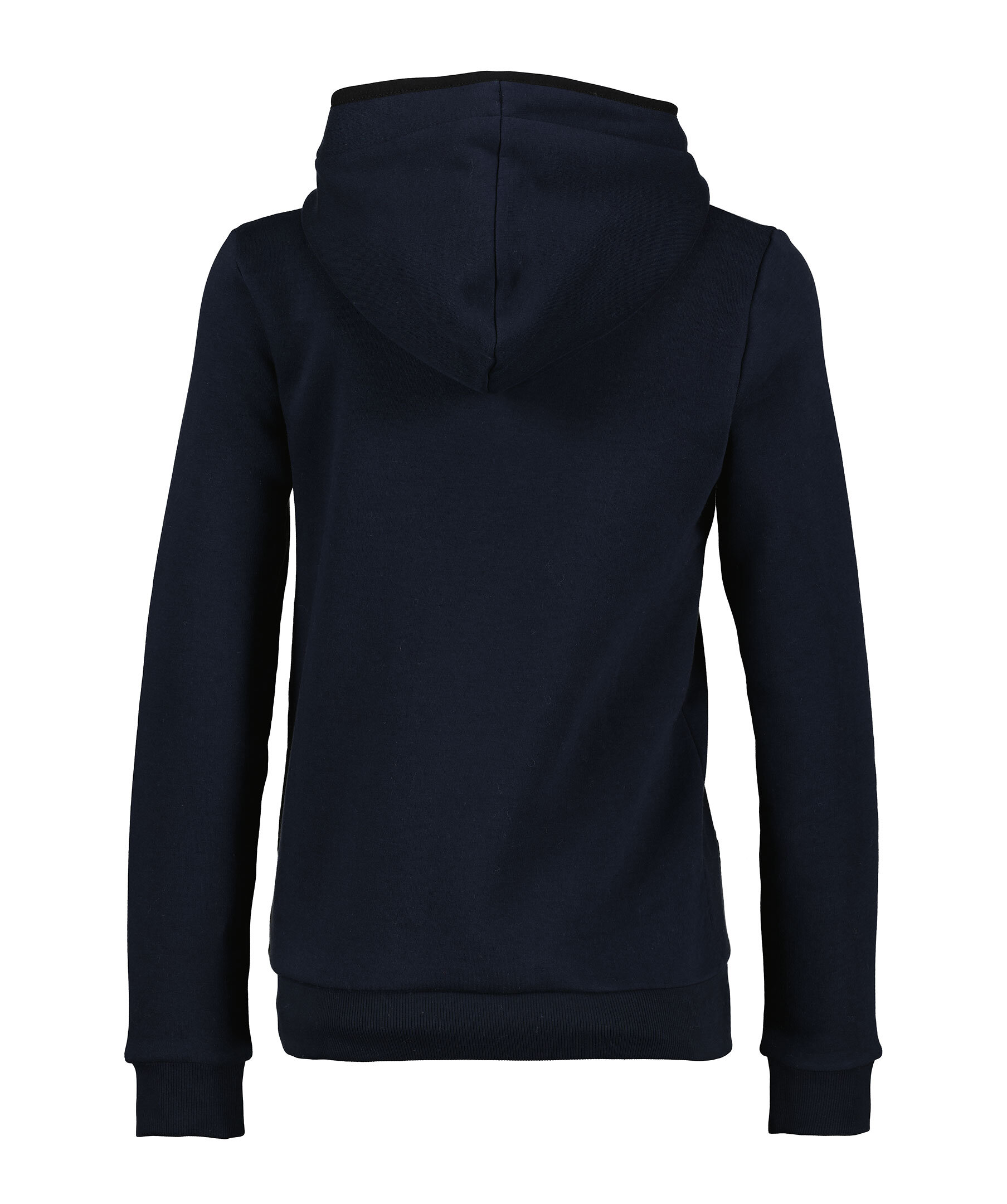 Marinblå hoodie från Peak Performance. Tillverkad i bomullsblandning. Luva med dragsko, svart snöre. Tryckt vit logotyp över bröstet. Känguruficka på magen. Ribbad mudd i plaggslut och ärmslut samt tunn svart kant på luvans kanter. Borstad insida.