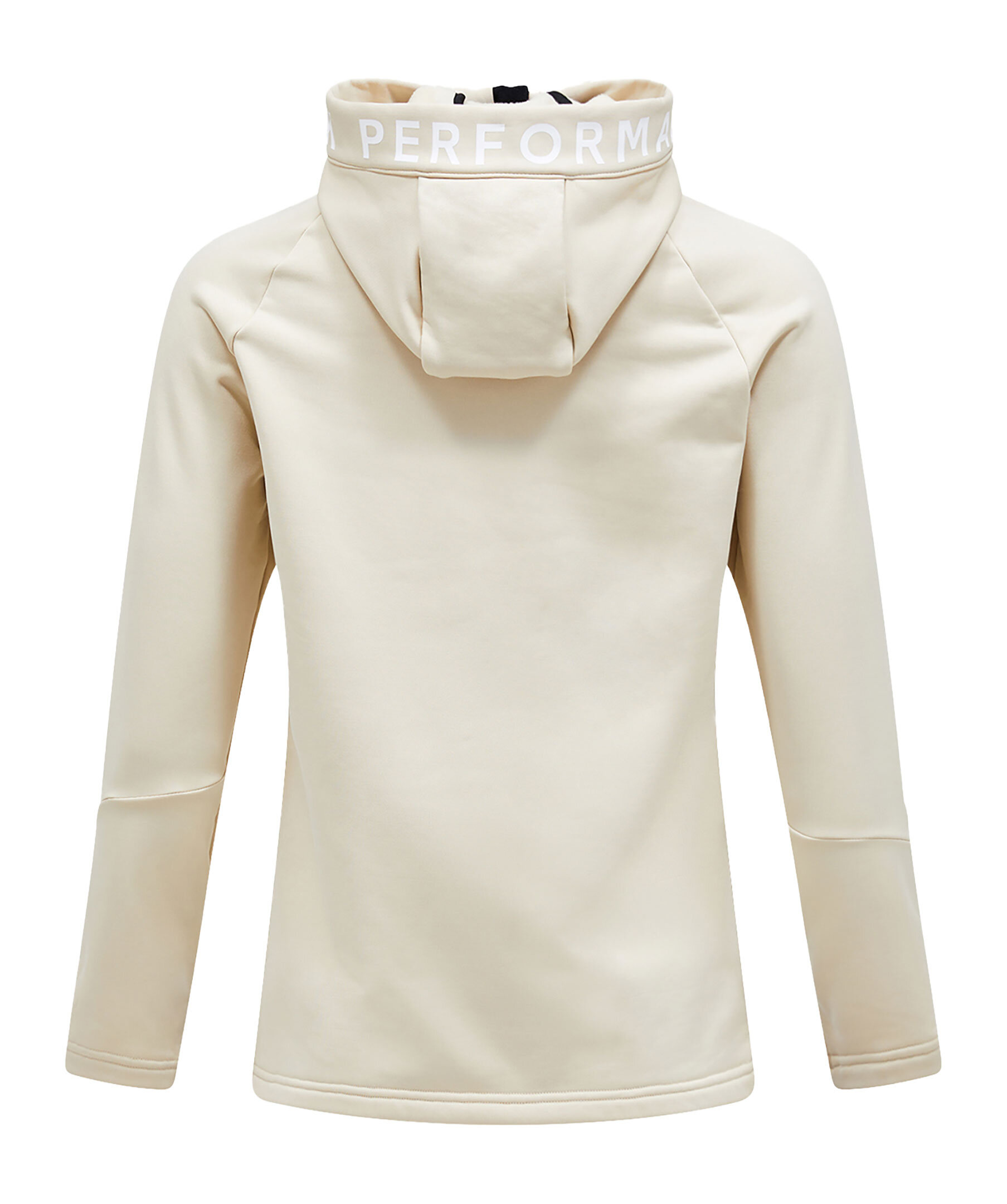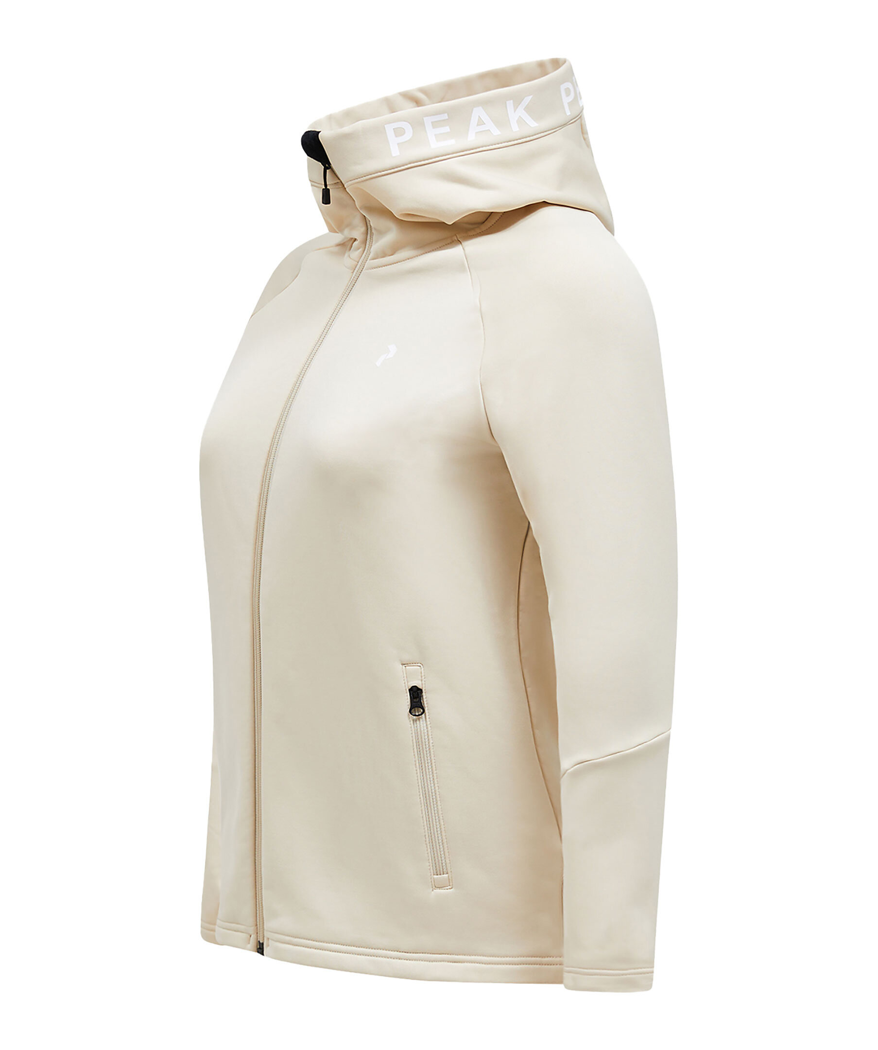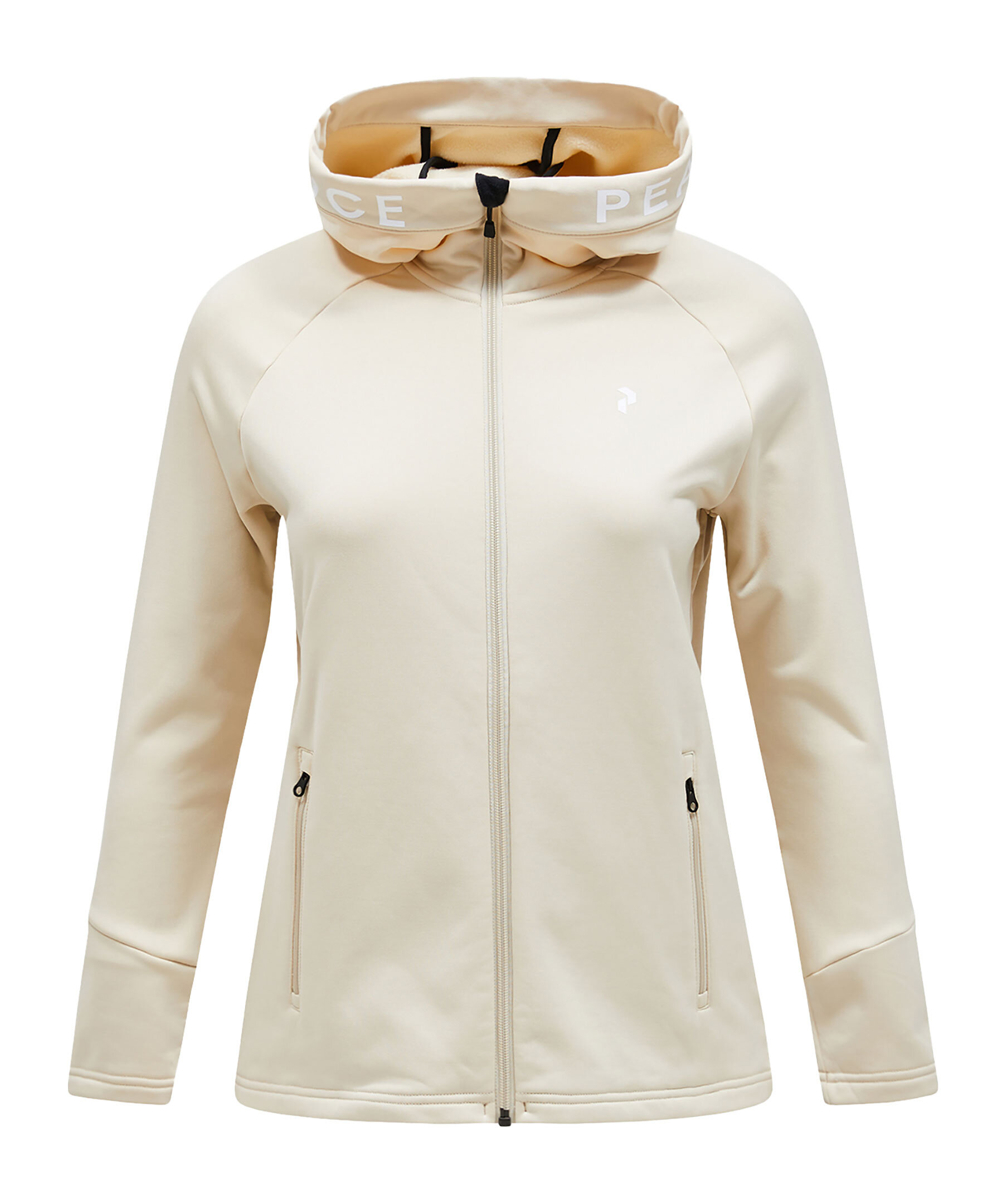 Sandfärgad zip-up hoodie från Peak Performance. Hoodien funkar som en mellanlagersjacka och har hög krage, två sidfickor med dragkedja, logotyp på huvan samt på bröstet. Tillverkad i en polyesterblandning.