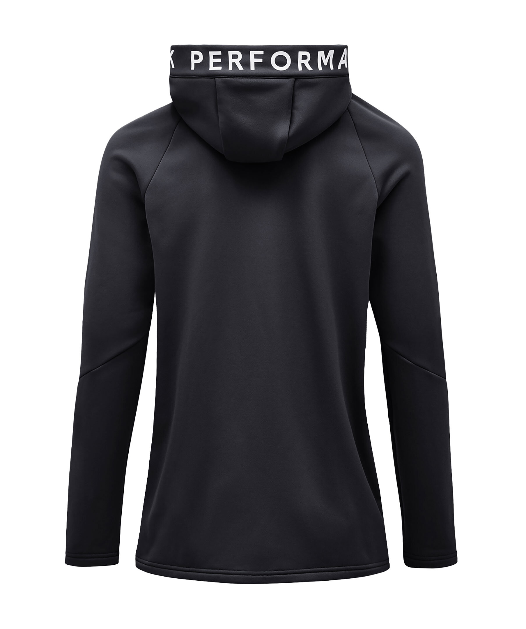 Svart zip-up hoodie med luva från Peak Performance. Tillverkad i en polyesterblandning. Liten logotyp på bröstet samt logotyp runt luvan. Två sidfickor med dragkedja. Normal passform.