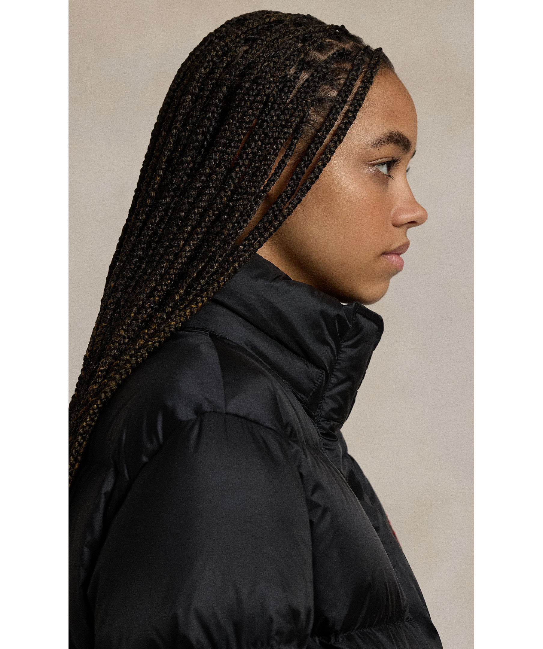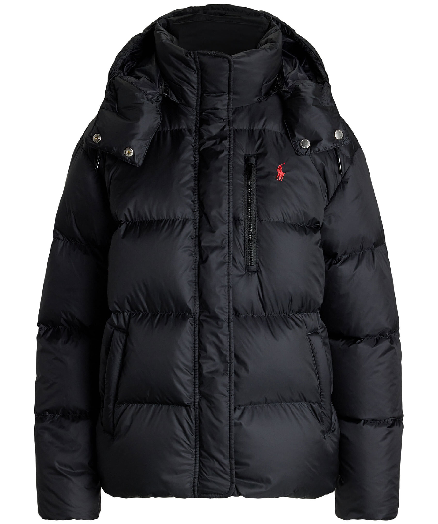 Svart pufferjacka med dunfyllning från Polo Ralph Lauren. Jackan har en avslappnad passform och är designad för att sluta vid höften. Luvan är avtagbar med knäppbar vindslå. Dunjackan stängs med en tvåvägsdragkedja och har två framfickor och en bröstficka. Broderad logotyp på bröstet. Gjord i ett vattenavvisande yttertyg. Produkten är certifierad enligt Responsible Down Standard (RDS) för djurvälfärd.
