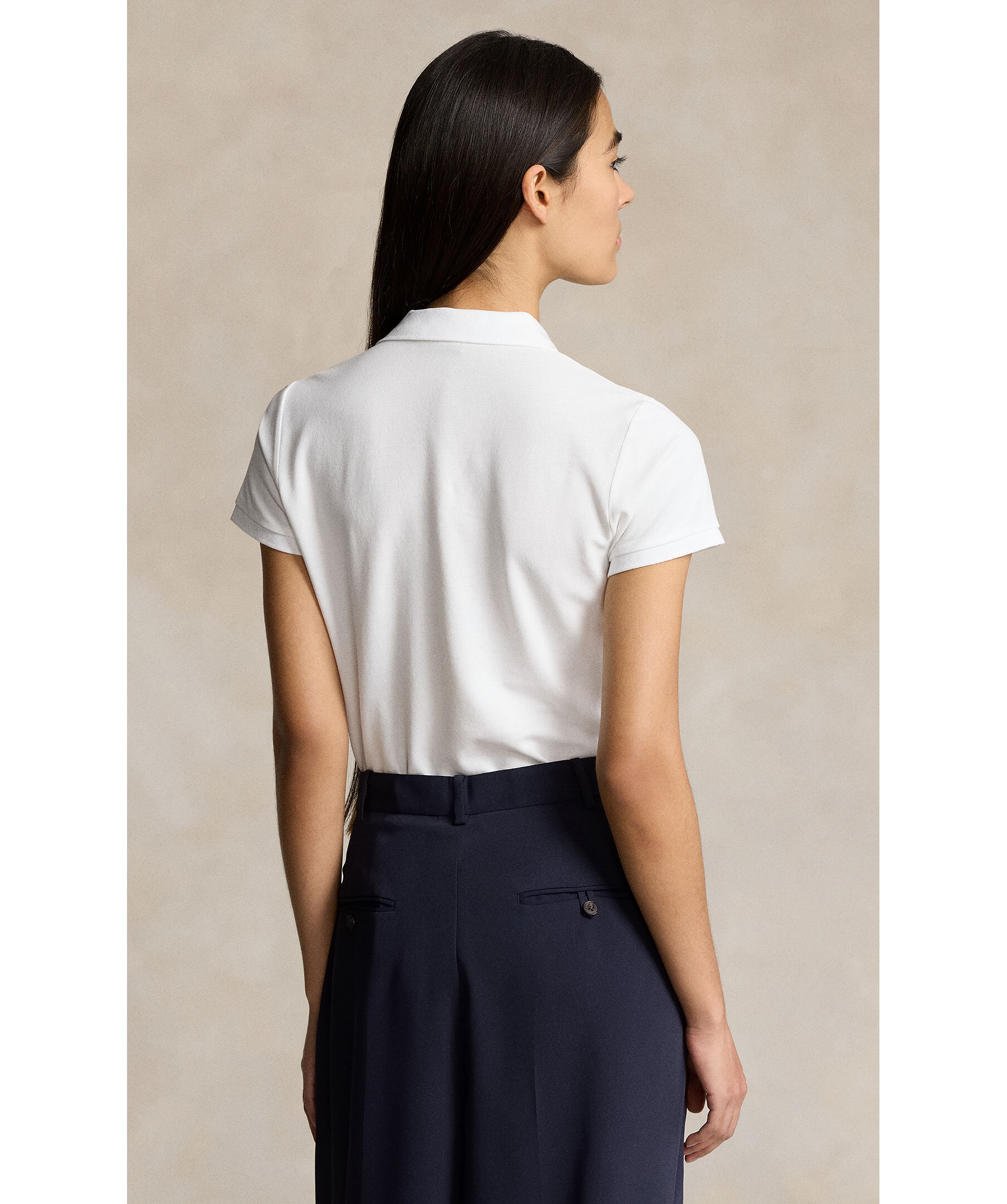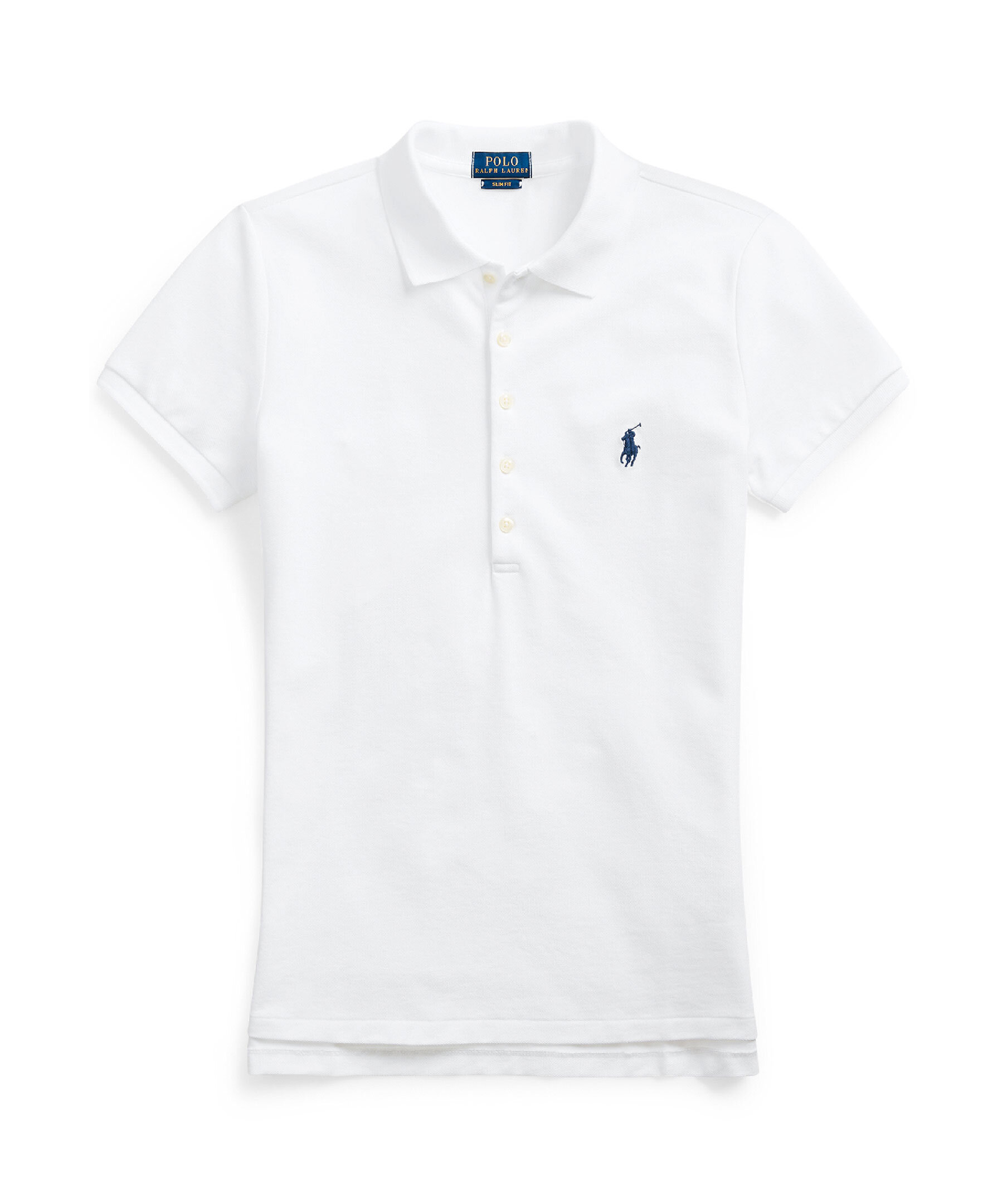 Klassisk vit pikétröja från Polo Ralph Lauren. Kortärmad design med ribbstickad krage och knäppning framtill. Märkets ikoniska ponnylogga är broderad på bröstet. Slim fit för en figurnära passform.