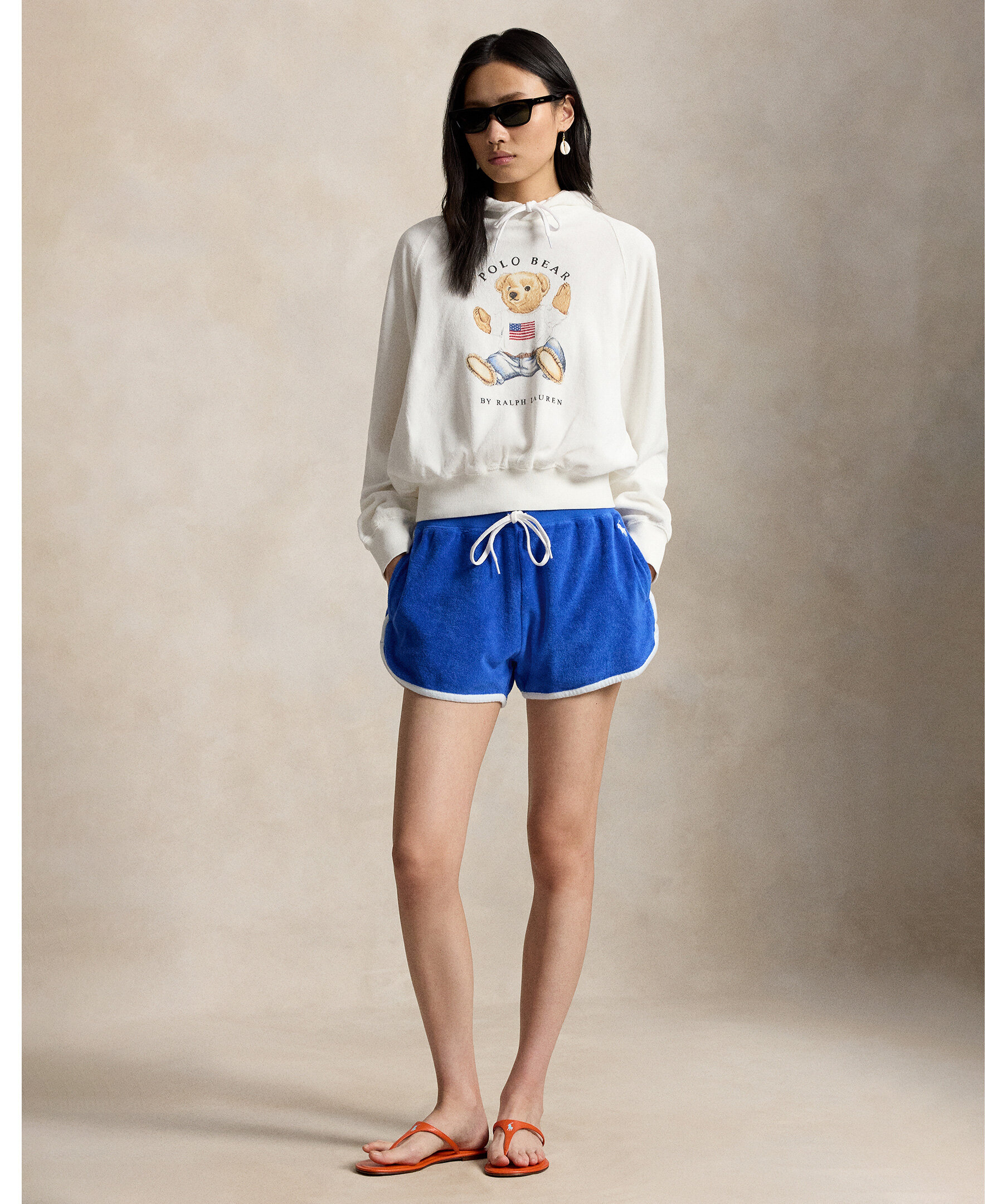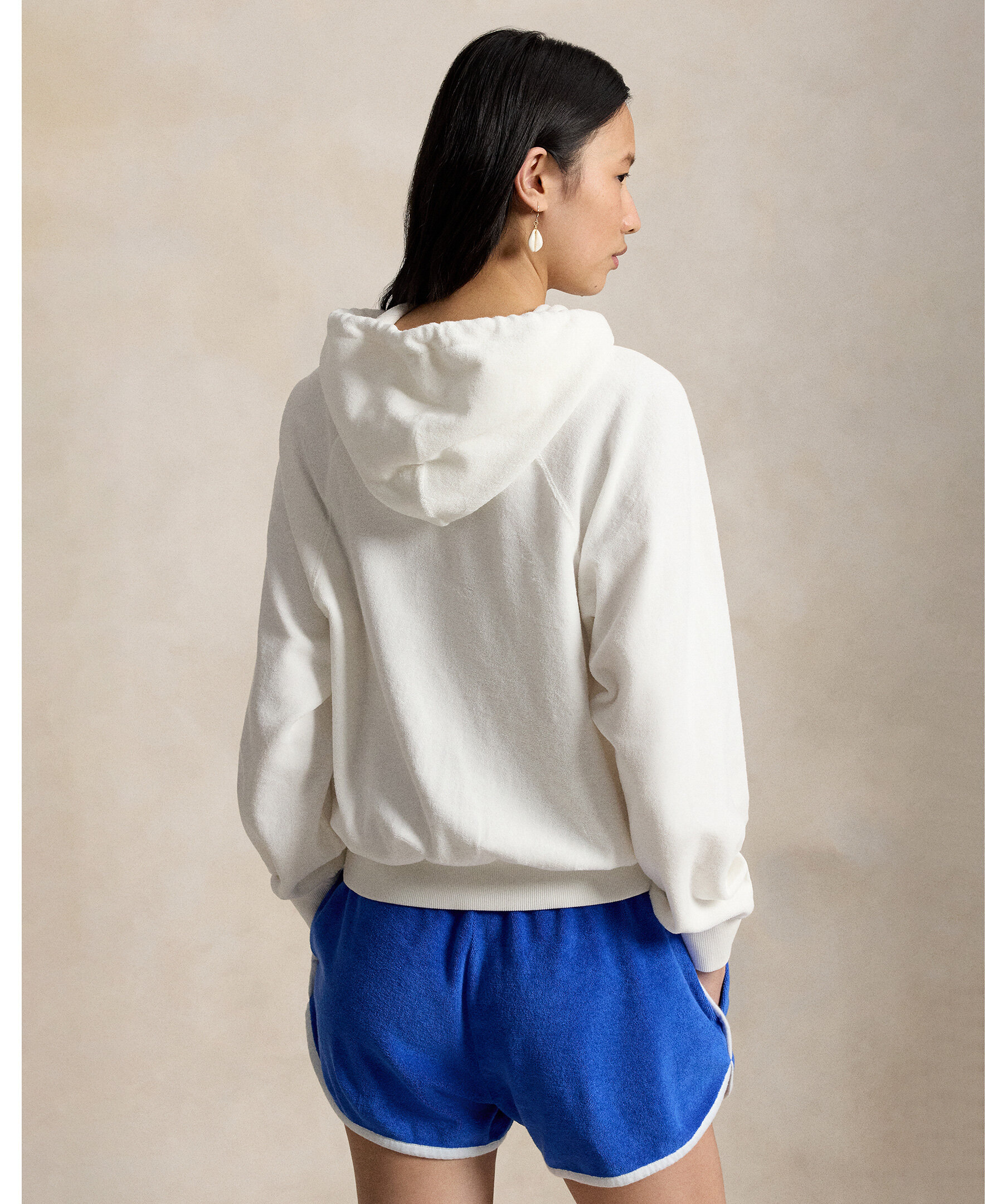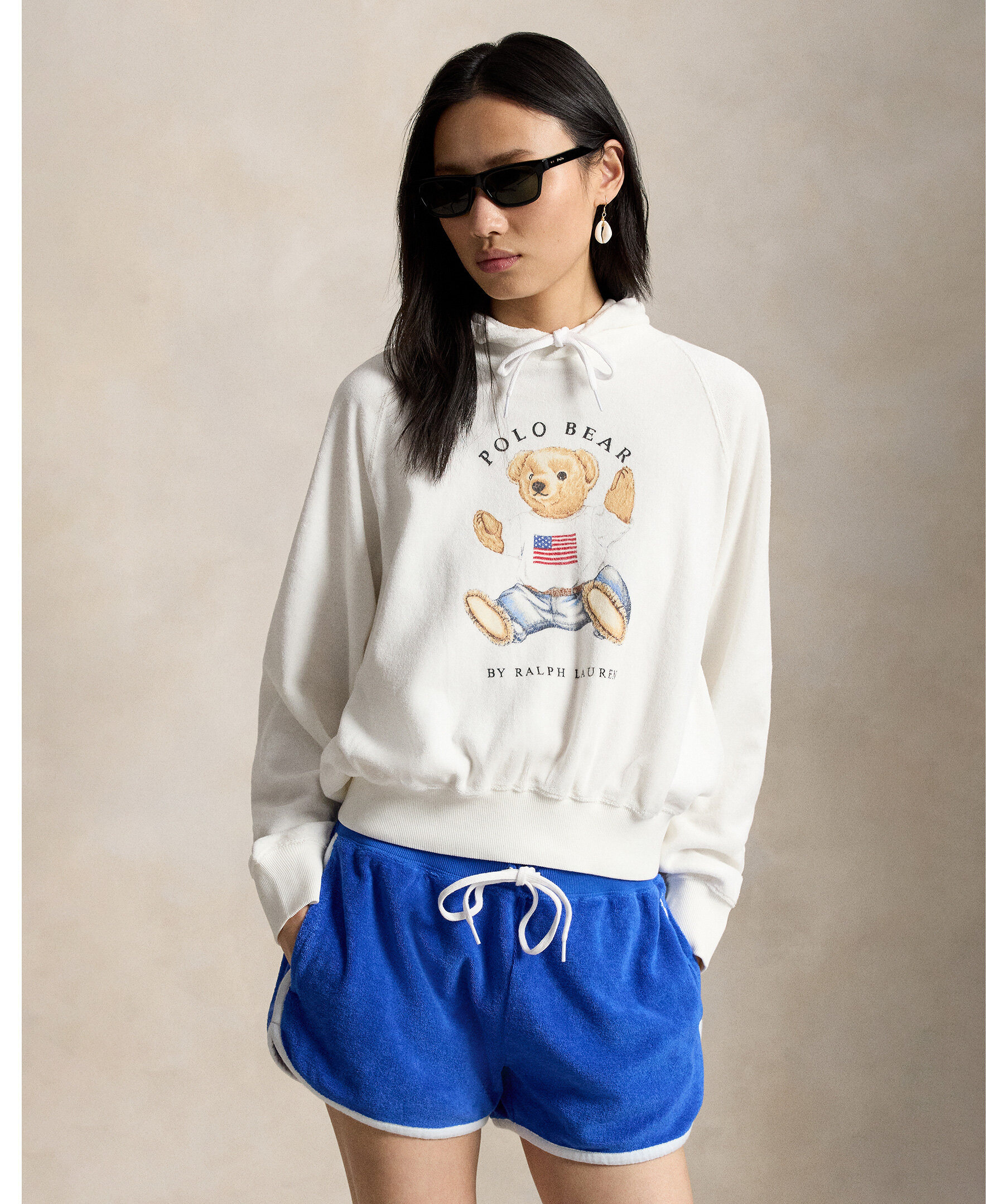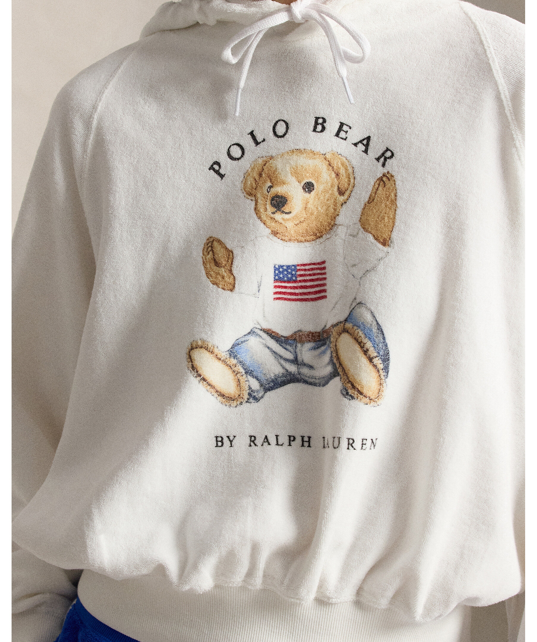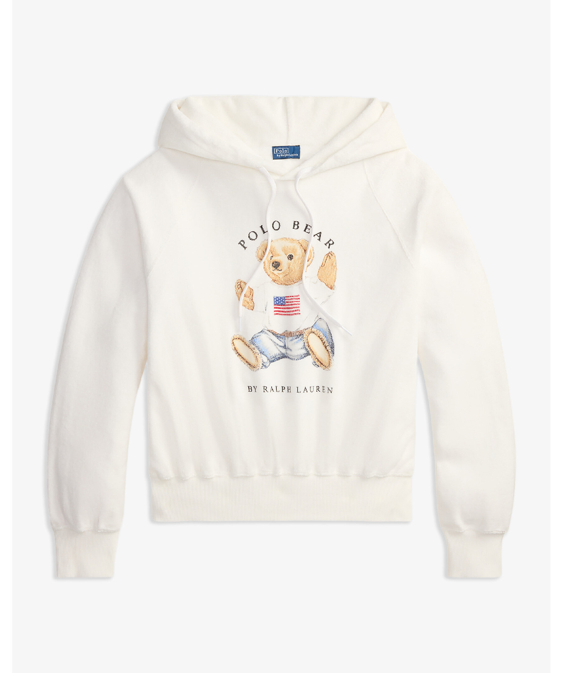 Vit hoodie med tryck från Polo Ralph Lauren. Tillverkad av mjuk fransk frotté för en bekväm känsla och har en tryckt version av ikoniska Sitting Bear från 1992 på bröstet.