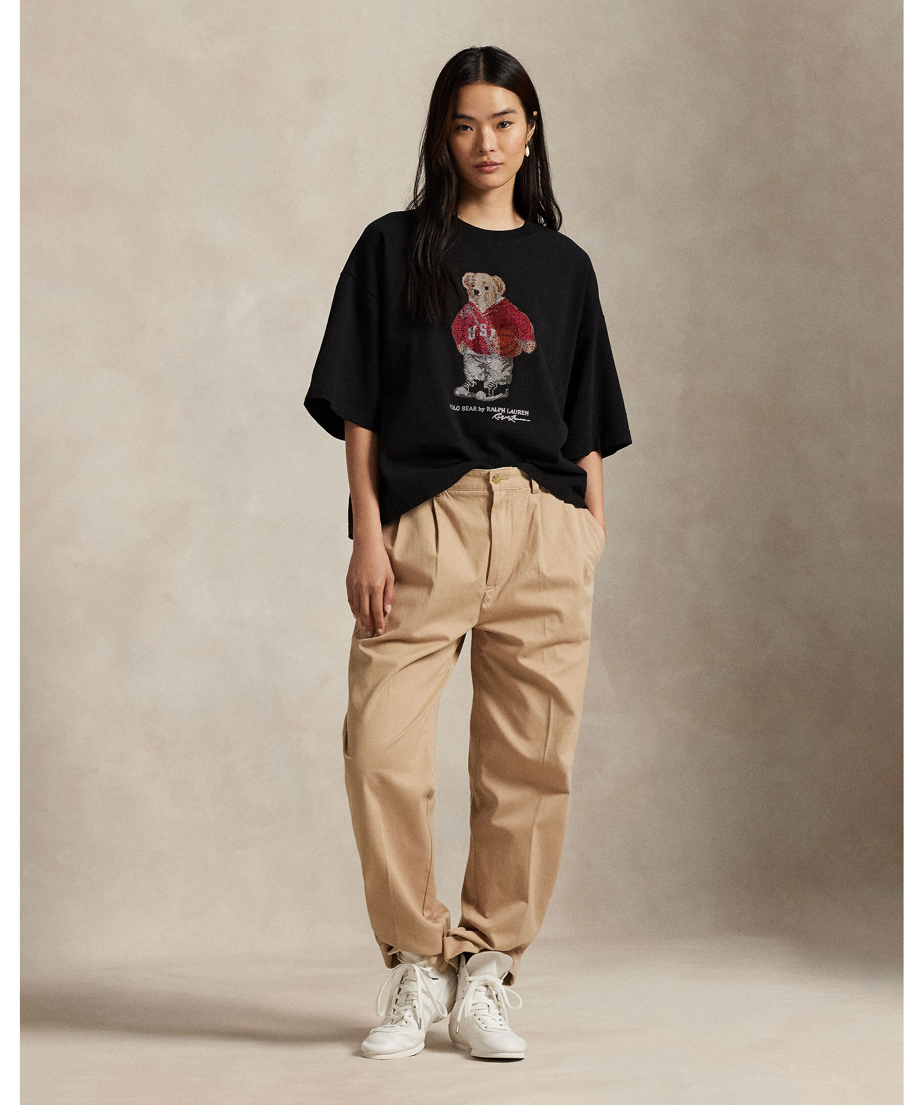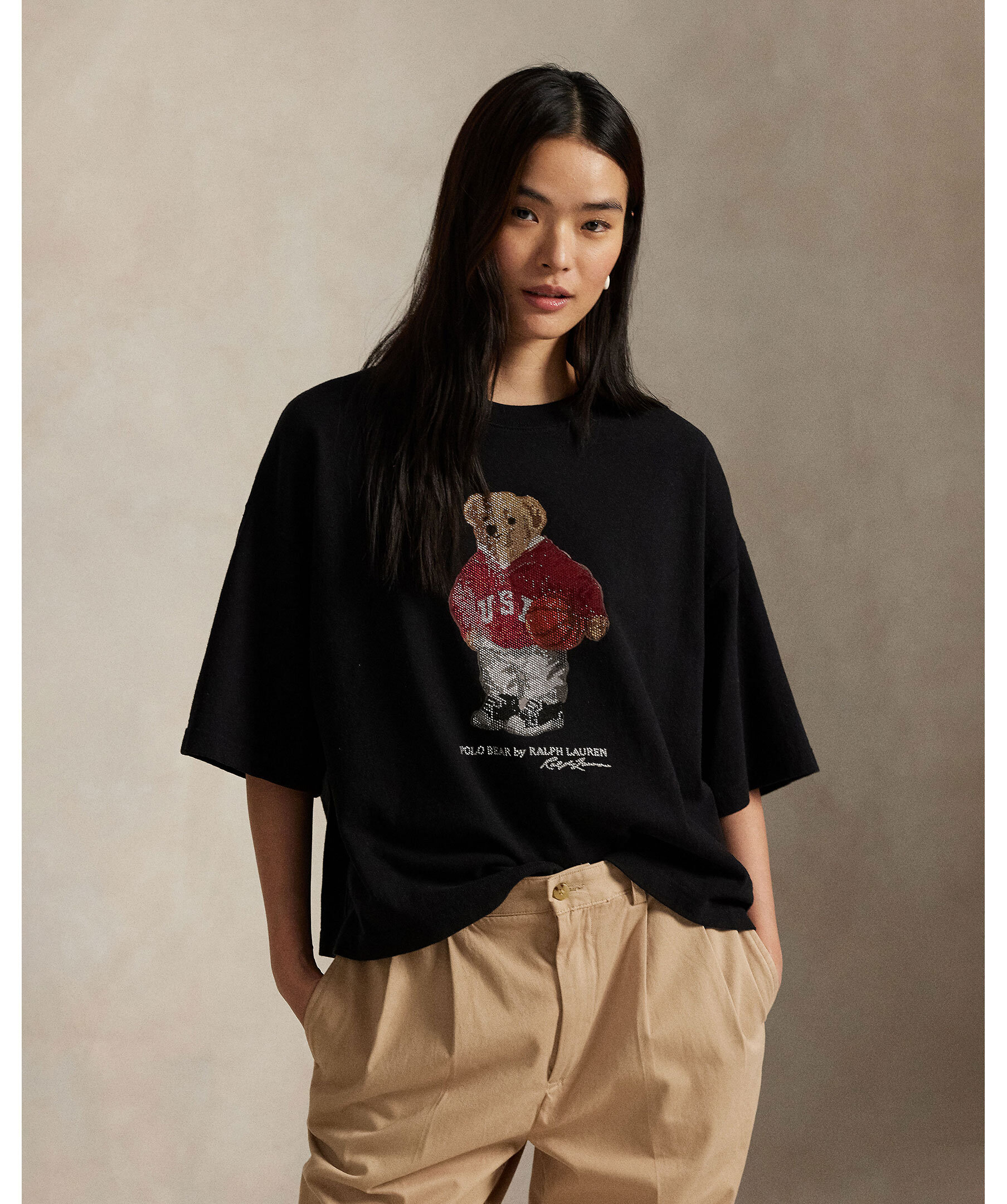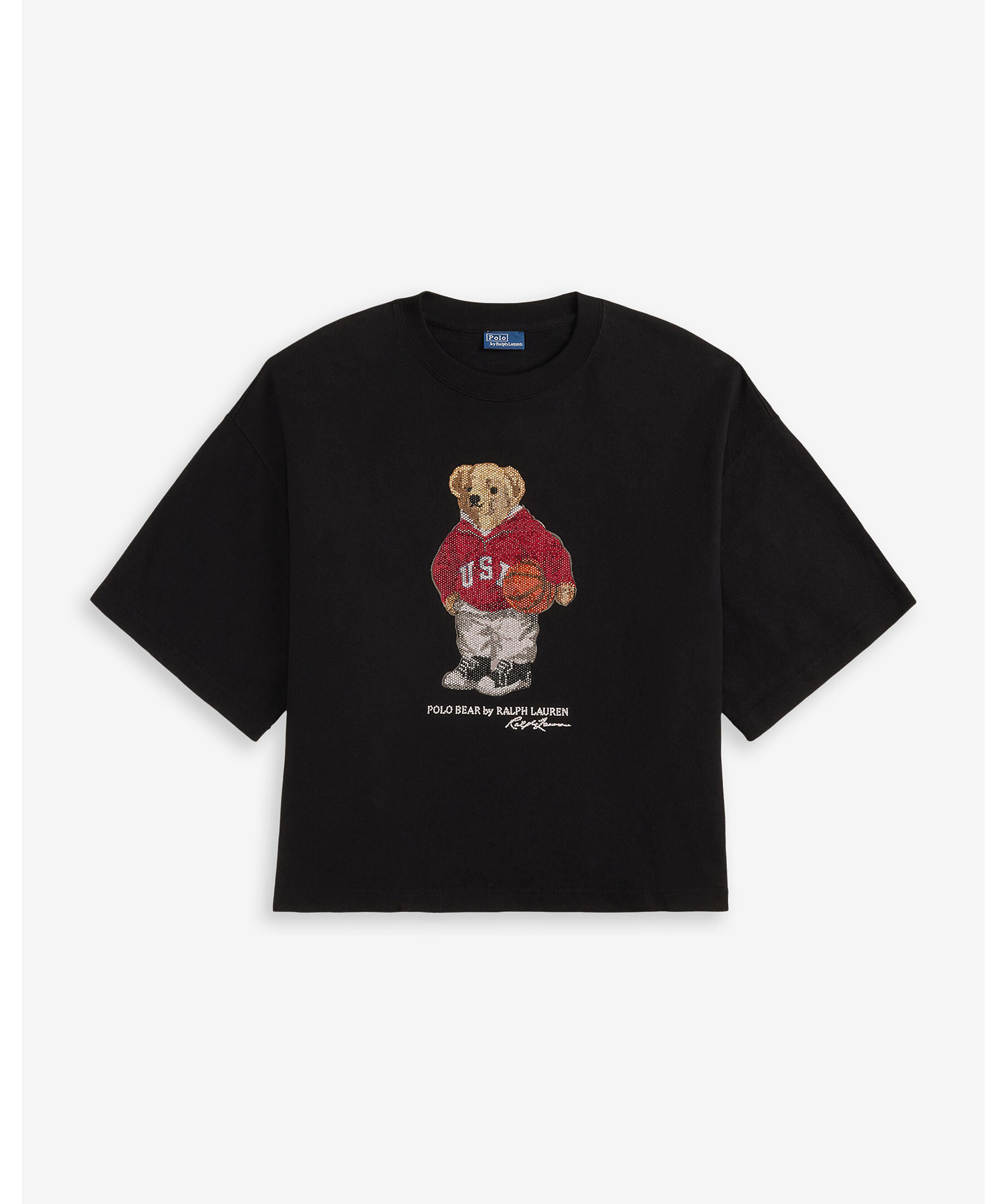 Svart t-shirt från Polo Ralph Lauren. Tröjan har ett Polo-Bear tryck på bröstet med strass. Passformen är något avslappnad och croppad. Modellen är 178 cm lång och har på sig strl S.
