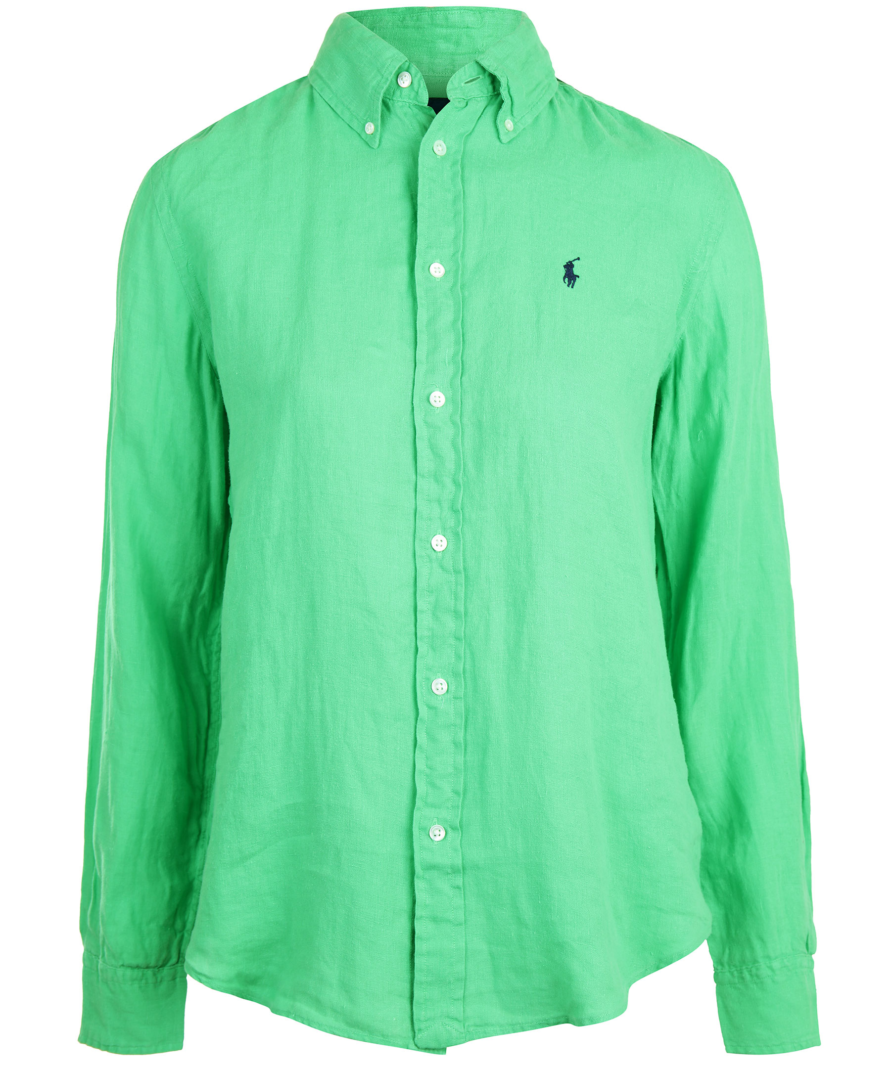 Starkt grön skjorta från Polo Ralph Lauren i relaxed fit. Tillverkad helt i linne. Turndown-krage med knappar och broderad logotyp på bröstet.