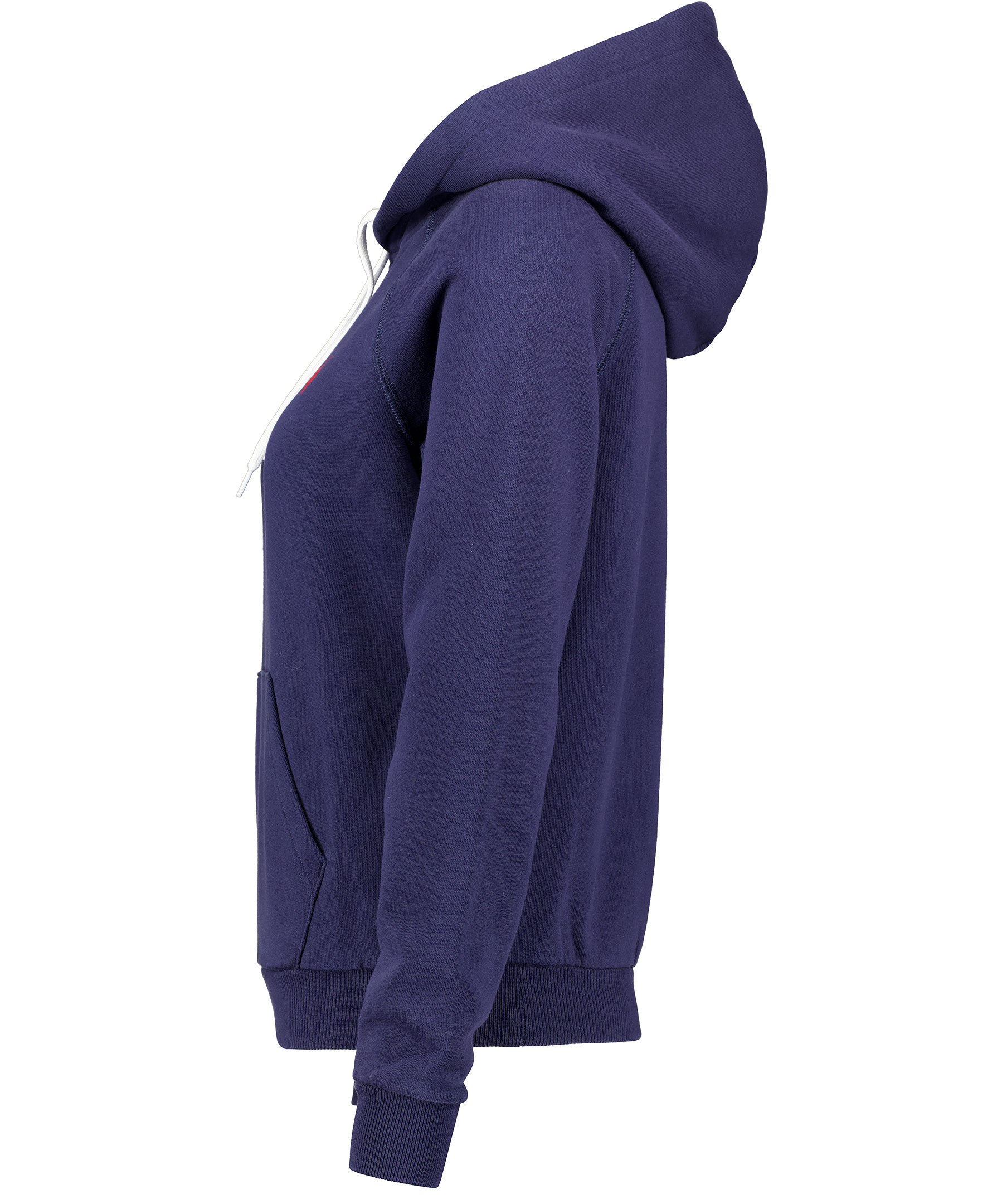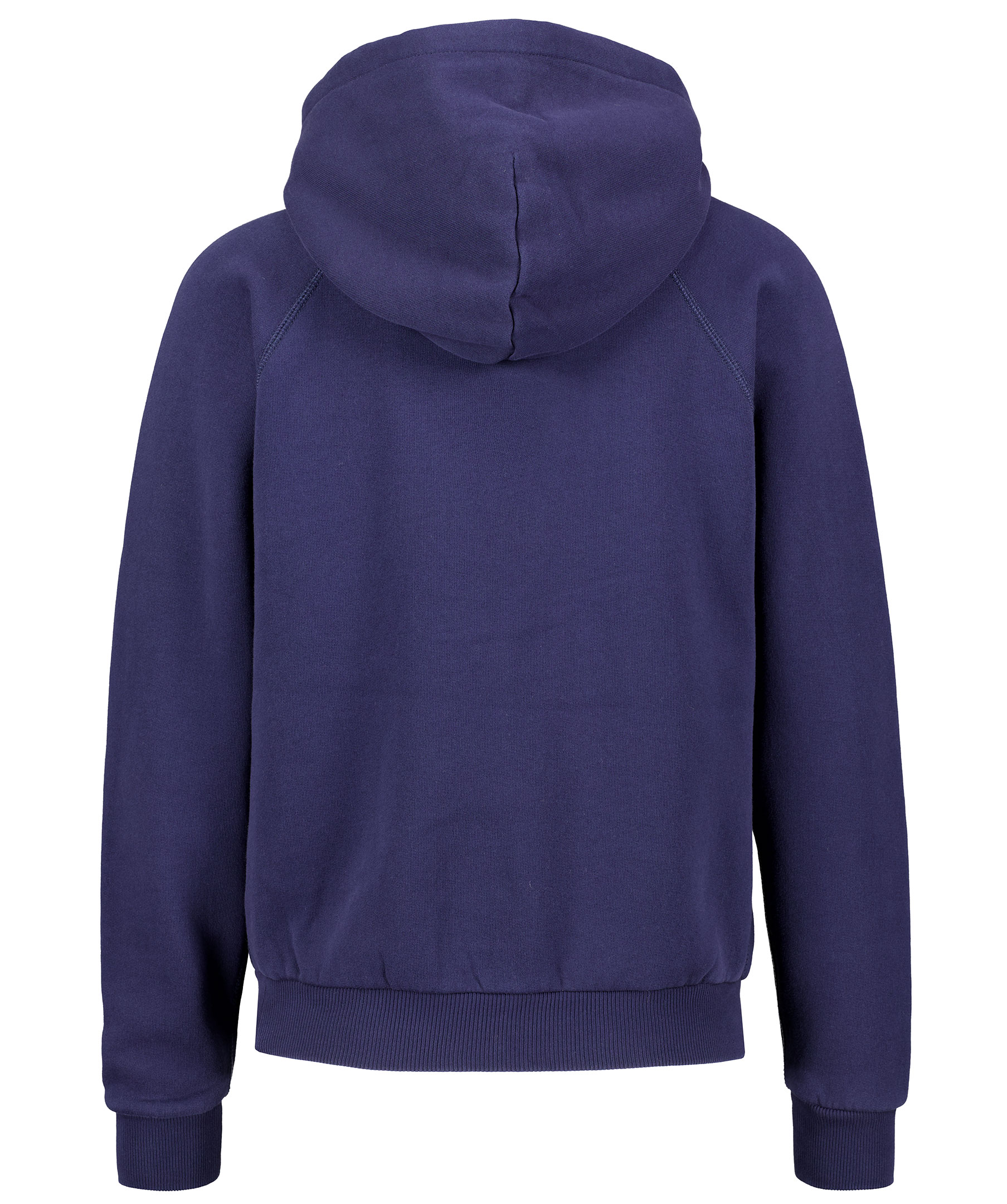 * Broderad logga * Ficka på magen * Snörning i luvan