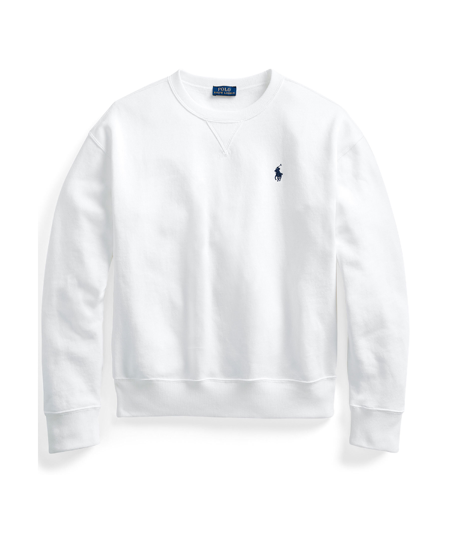 Vit sweatshirt från Polo Ralph Lauren. Tillverkad i en mjuk bomullsmix med en mjuk borstad insida. Rundad halsringning broderad logotyp på bröstet. Ribbade muddar i halsringning, plaggslut och ärmslut.