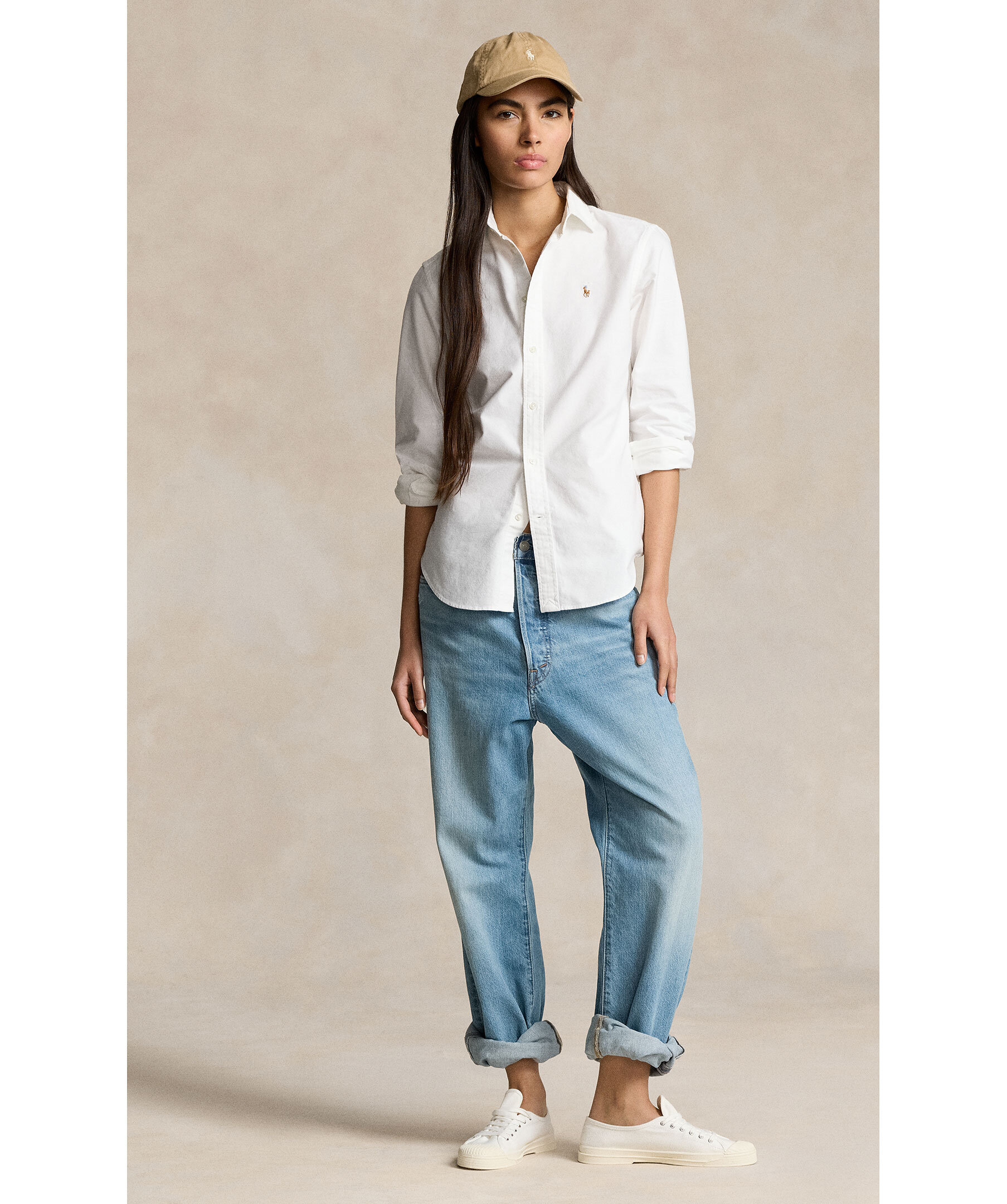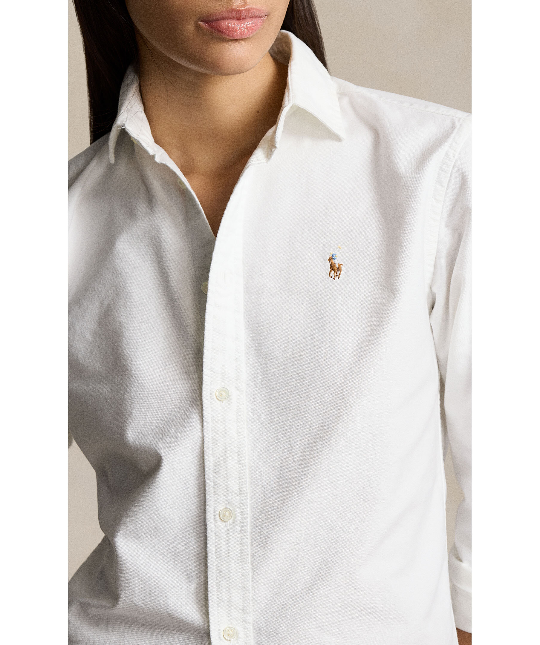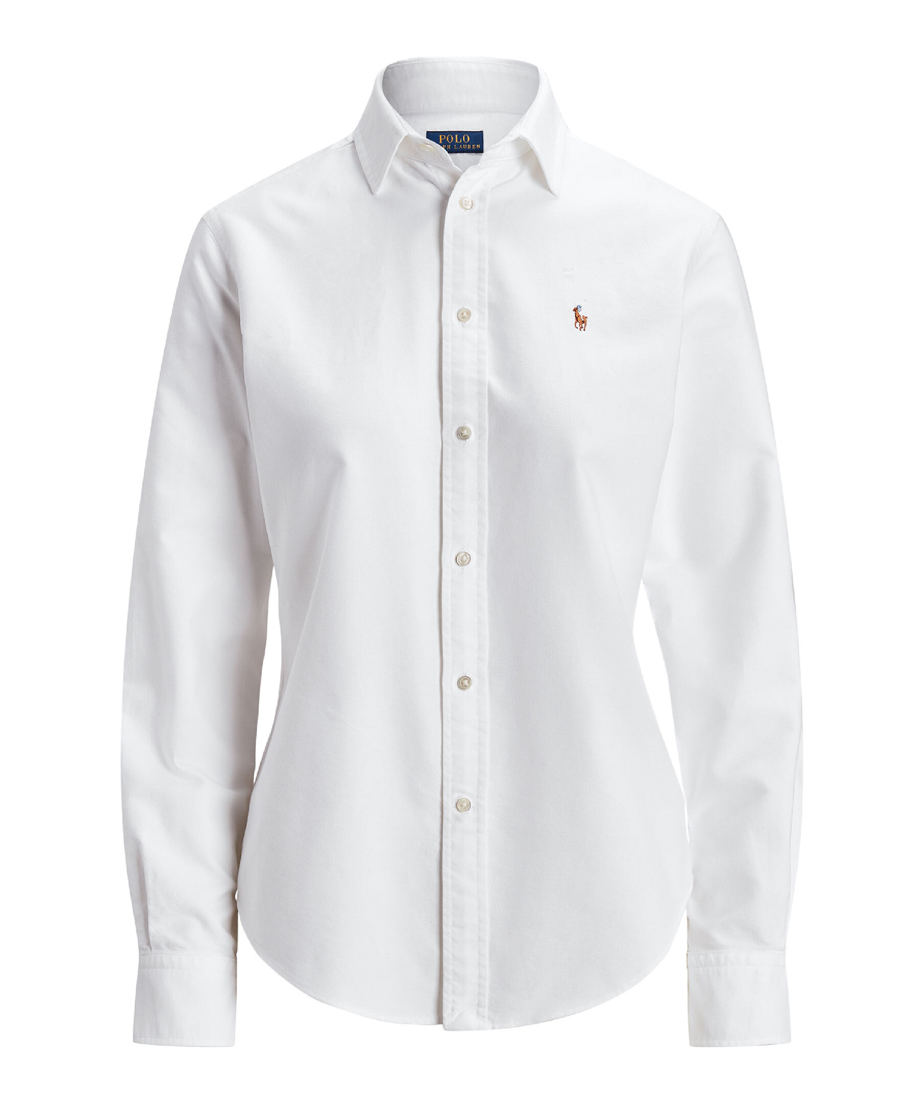 Vit, klassisk Oxford-skjorta med avslappnad passform från Polo Ralph Lauren. Knäppning framtill, knappslå och krage. Broderad "Polo Ralph Lauren"-logga på bröstet.