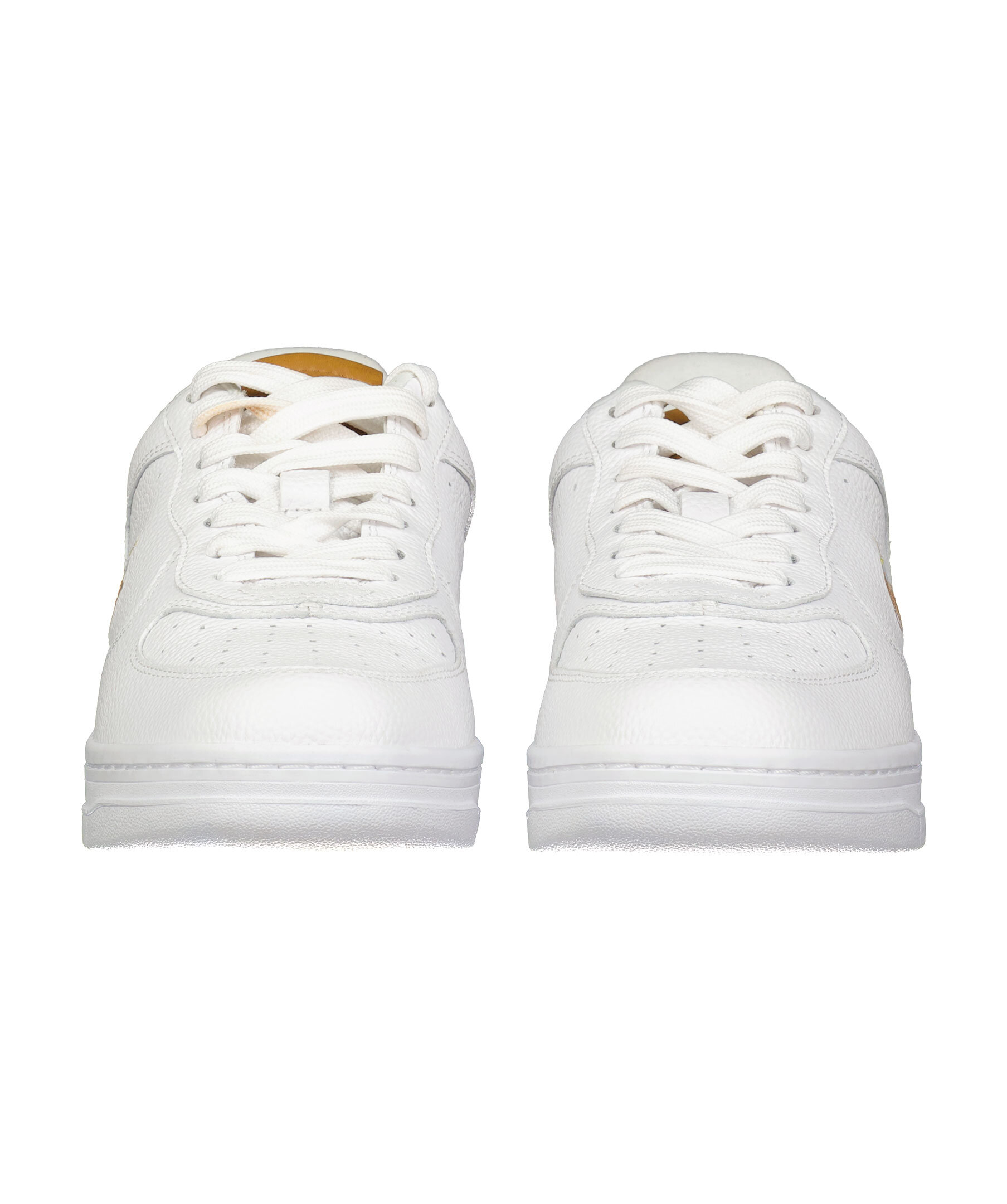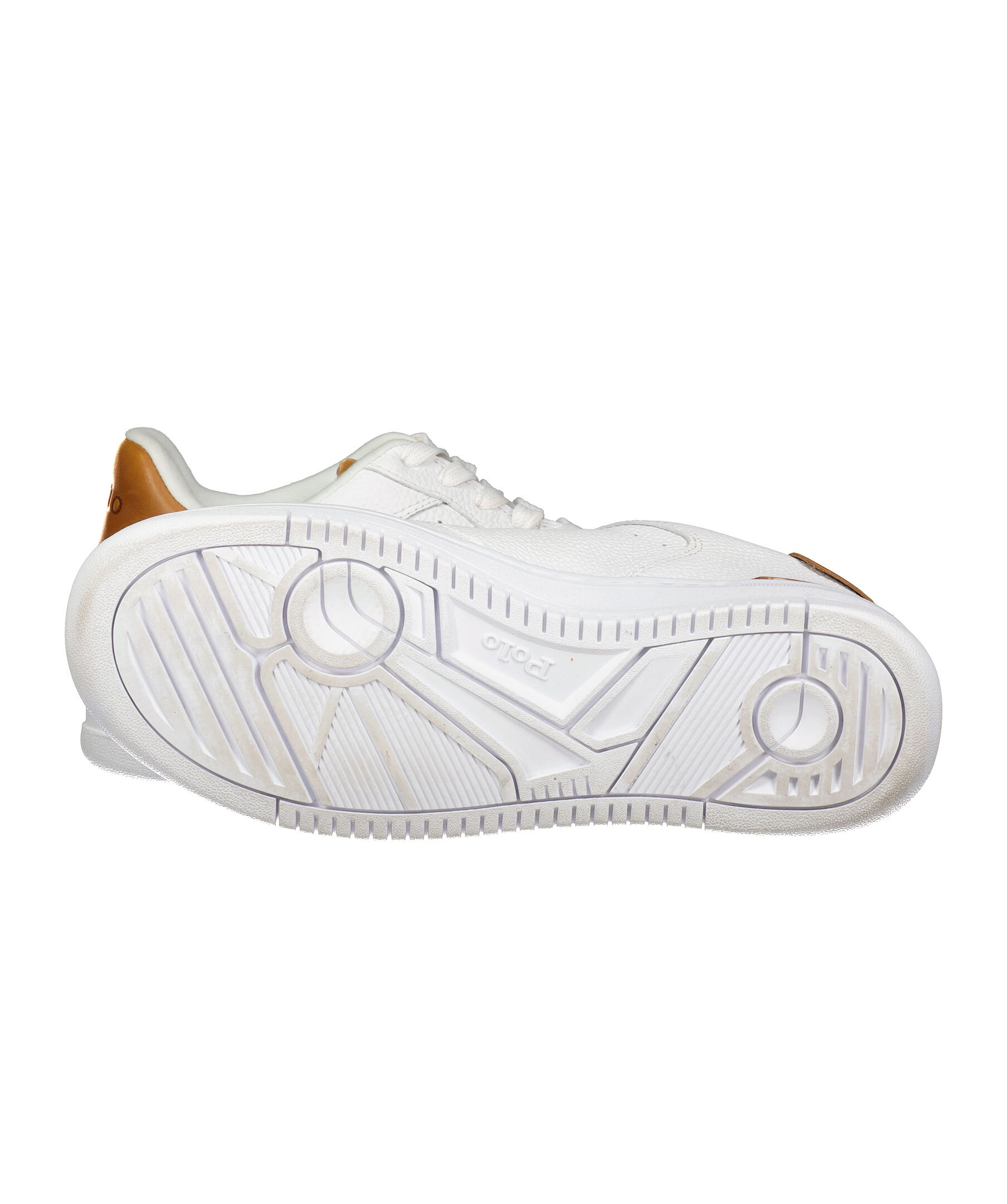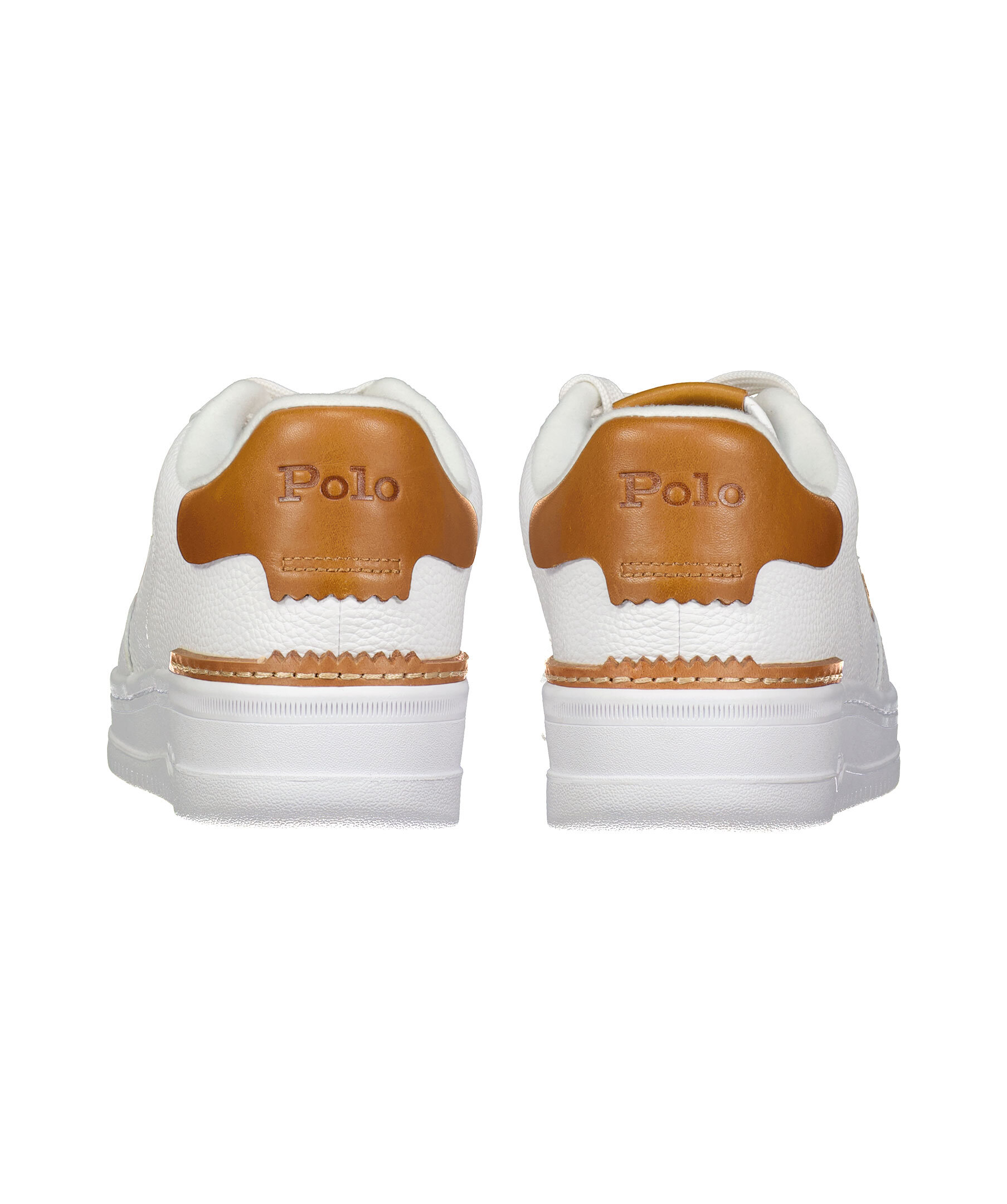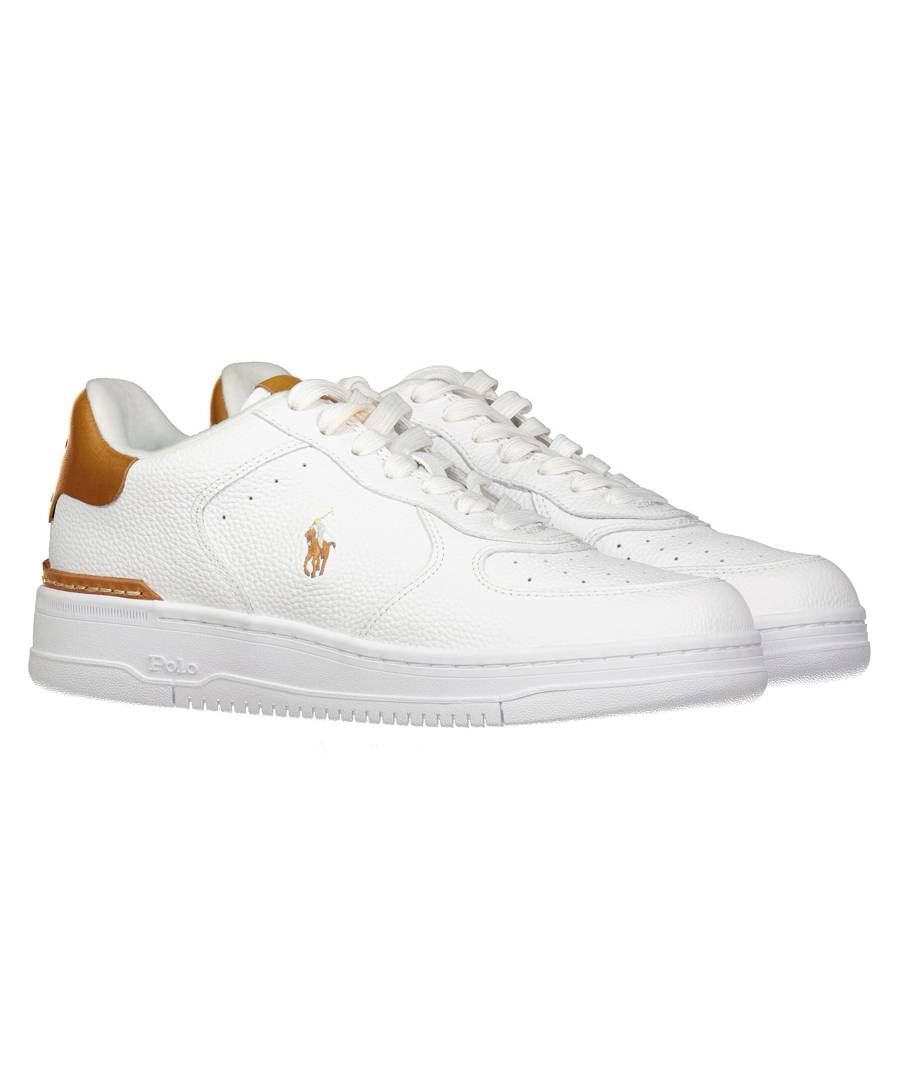 Vita sneakers i läder från Polo Ralph Lauren. Broderade logotyp på skons yttersida. Platta skosnören. Brun patch med logotyp på plösen. Hög sula i gummi. Brun detalj på hälen med embossad logotyp, läder med färgad detalj på hälen.