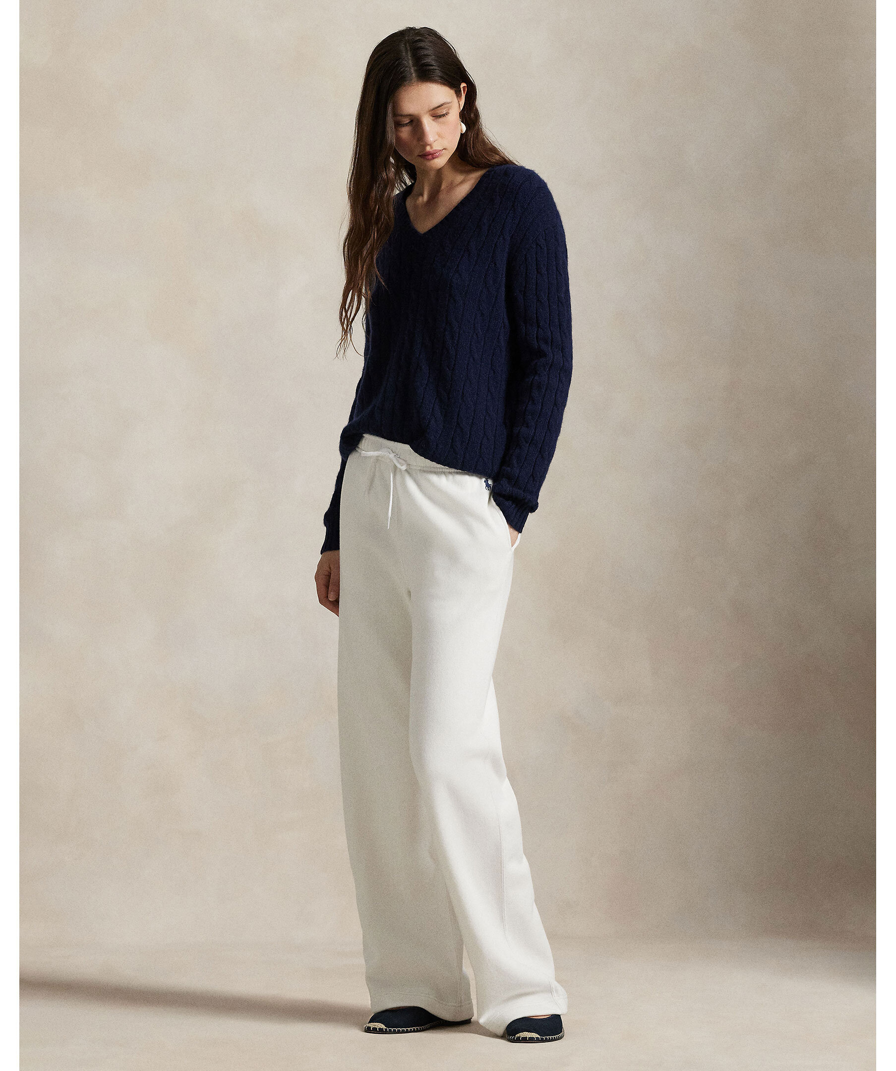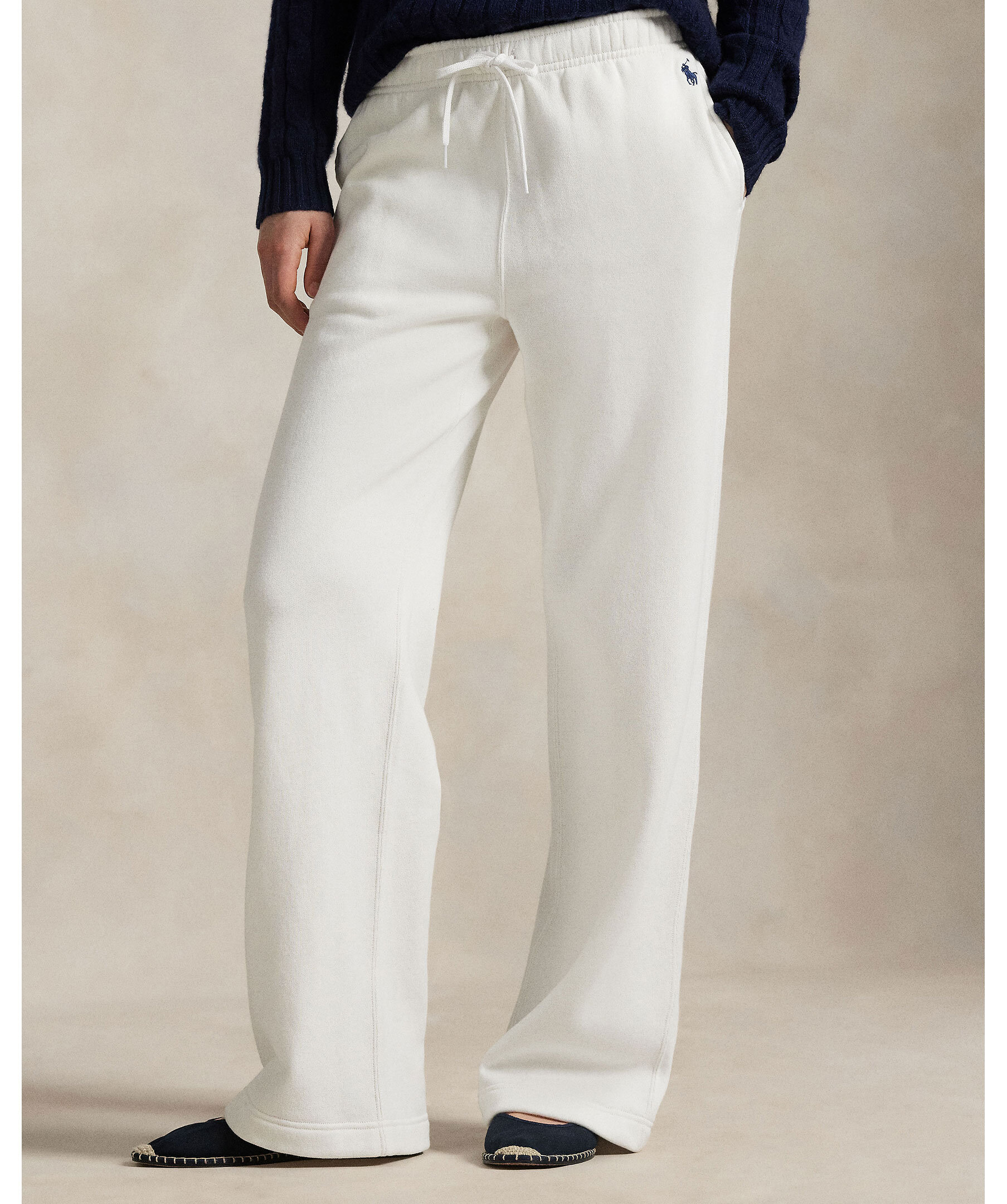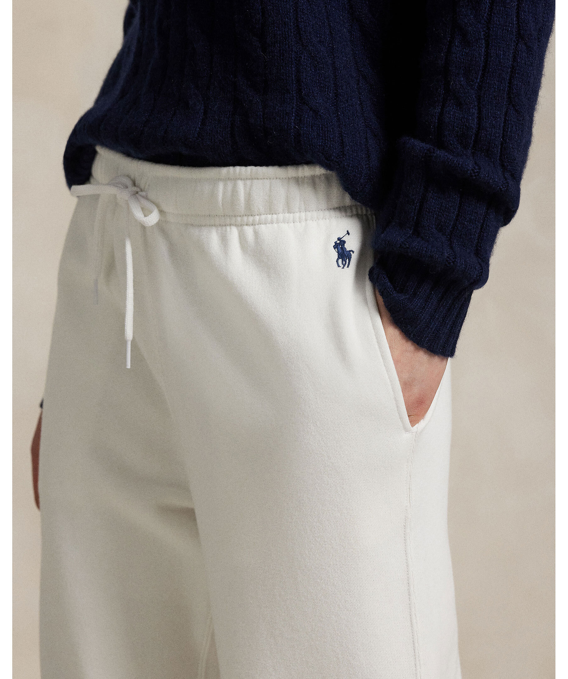 Vita mjukisbyxor från Polo Ralph Lauren. Tillverkade i mjuk bomullsblandning. Mjukisbyxorna har dragsko i midjan, en vid silhuett och har Ralph Laurens ikoniska broderade Pony.
