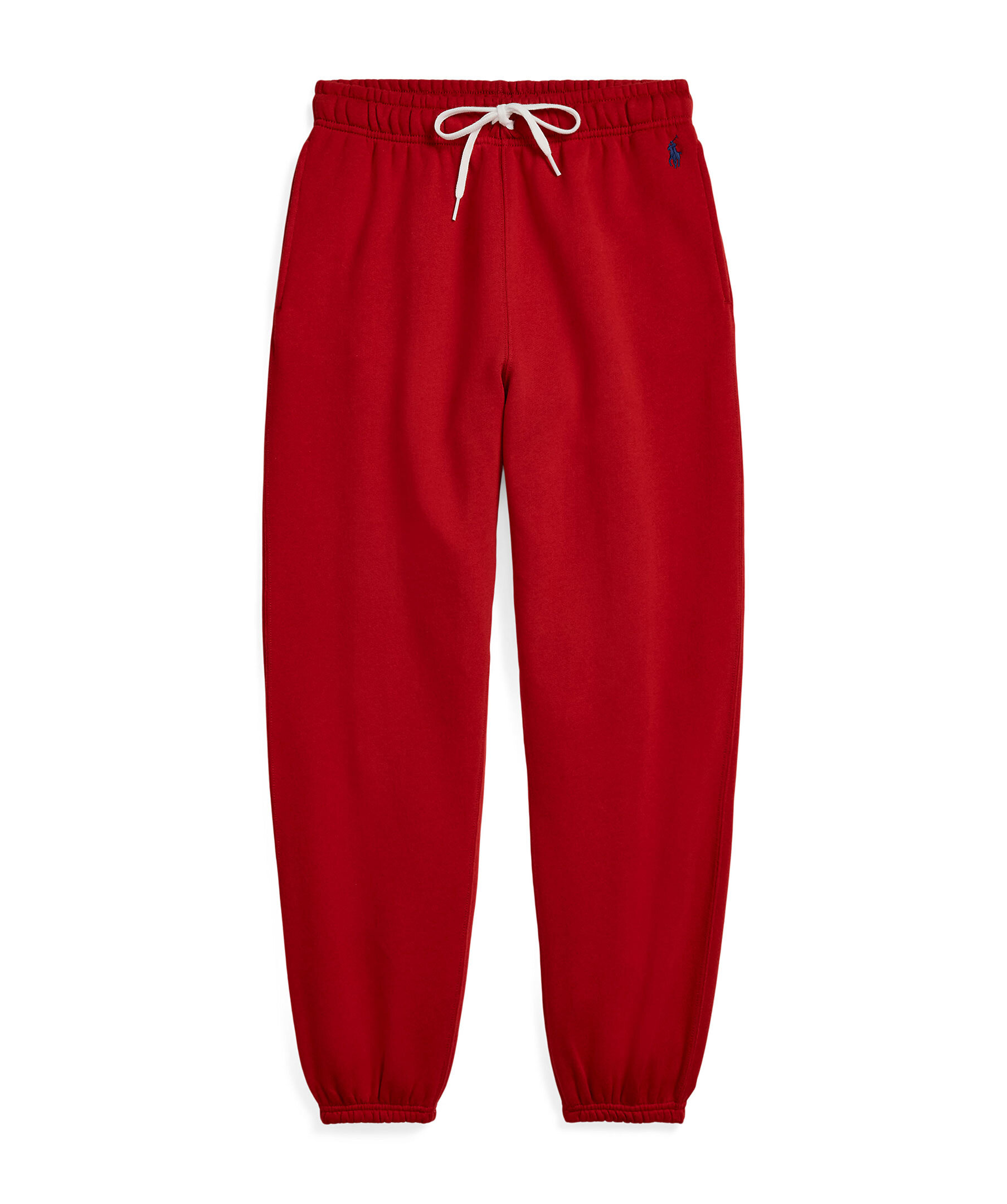 Röda mjukisbyxor från Polo Ralph Lauren. Byxorna har en elastisk midja med dragsko för justerbar passform och ribbade muddar vid anklarna. Fickor på sidorna och en broderad logotyp pryder ena benet.