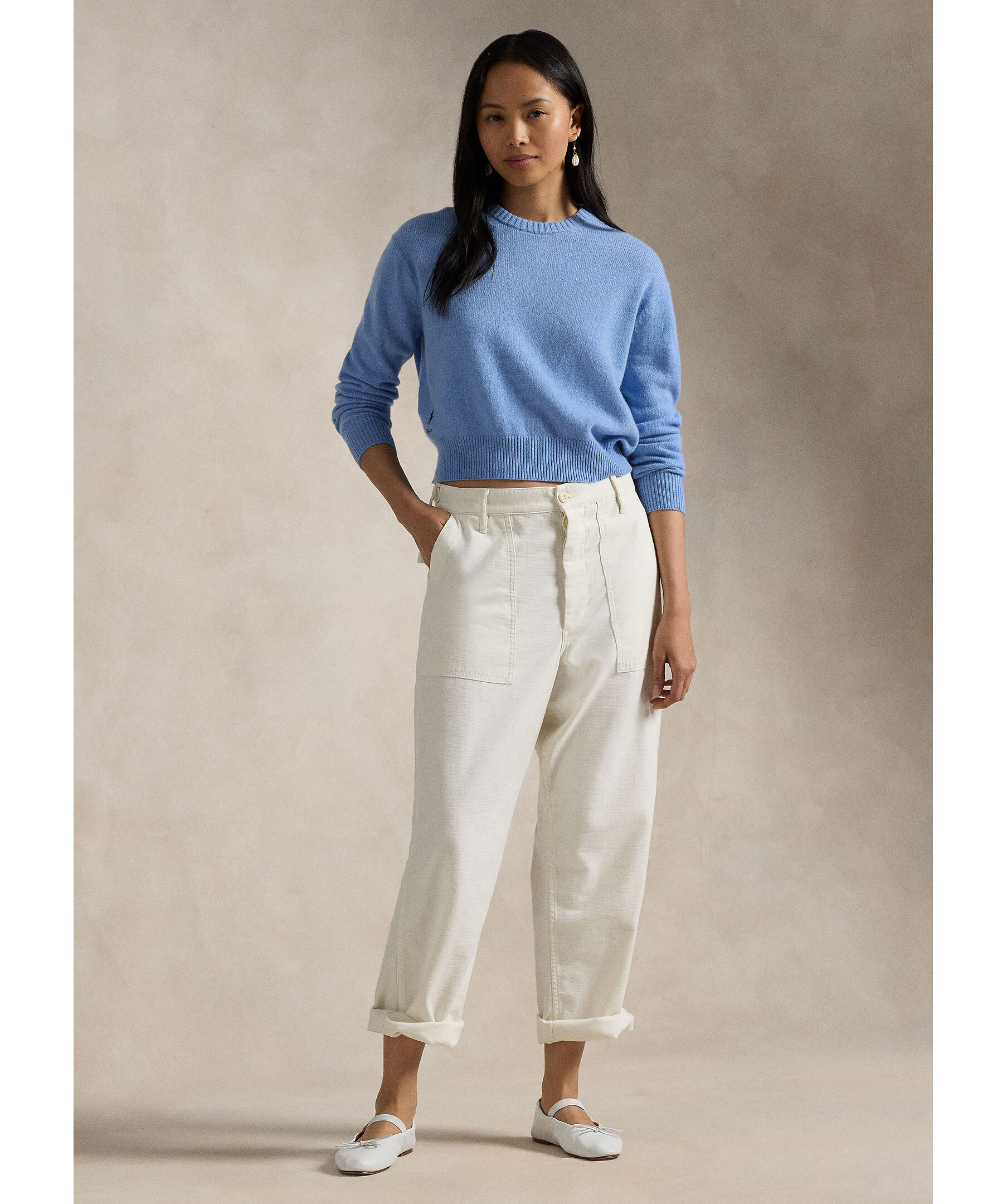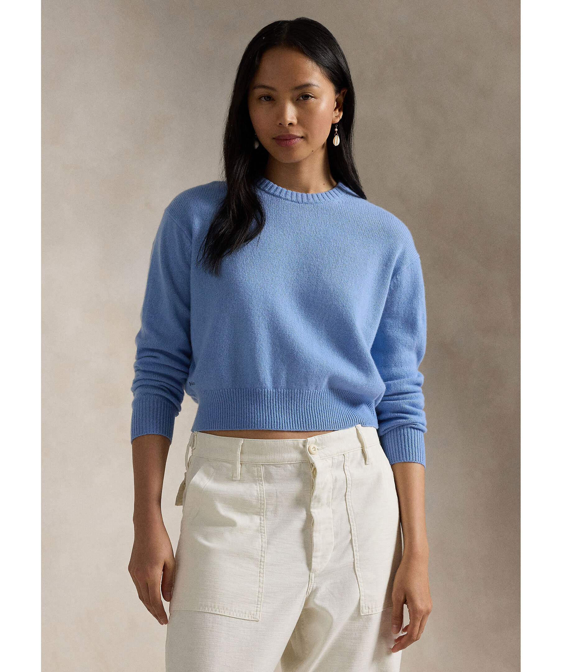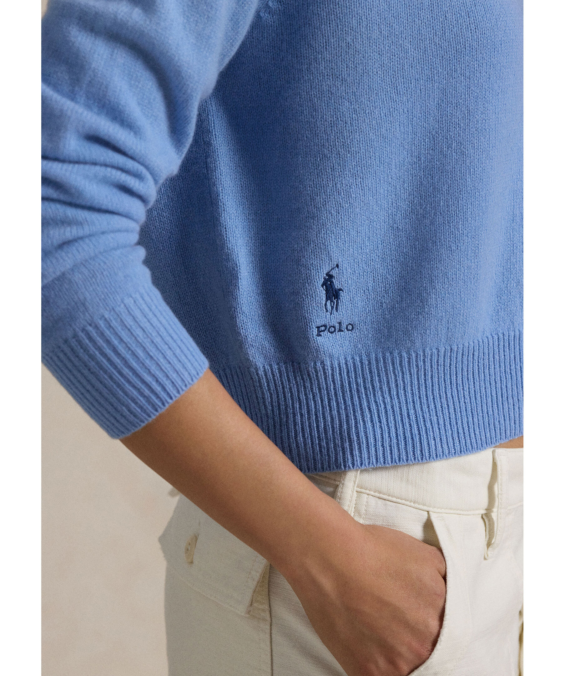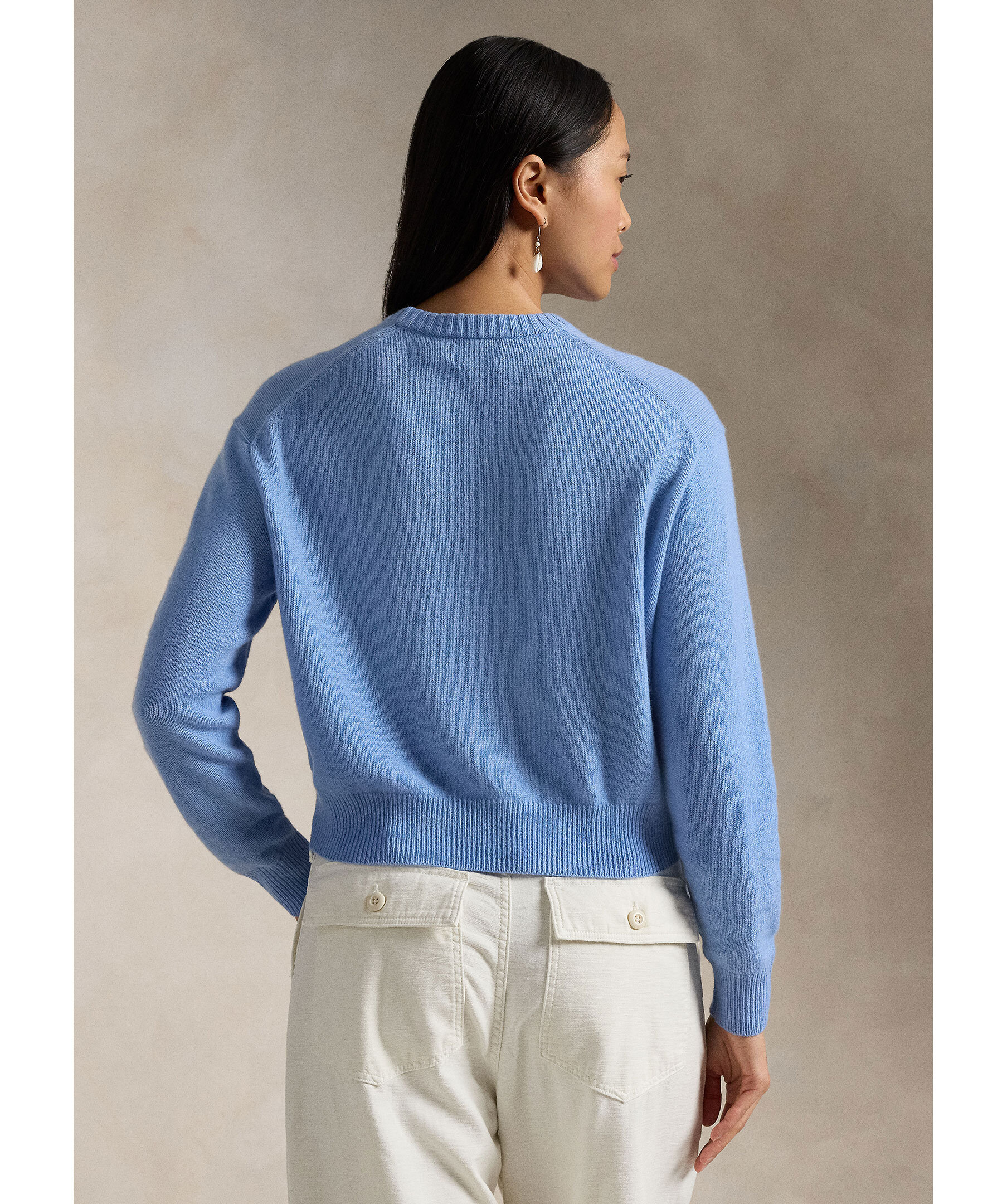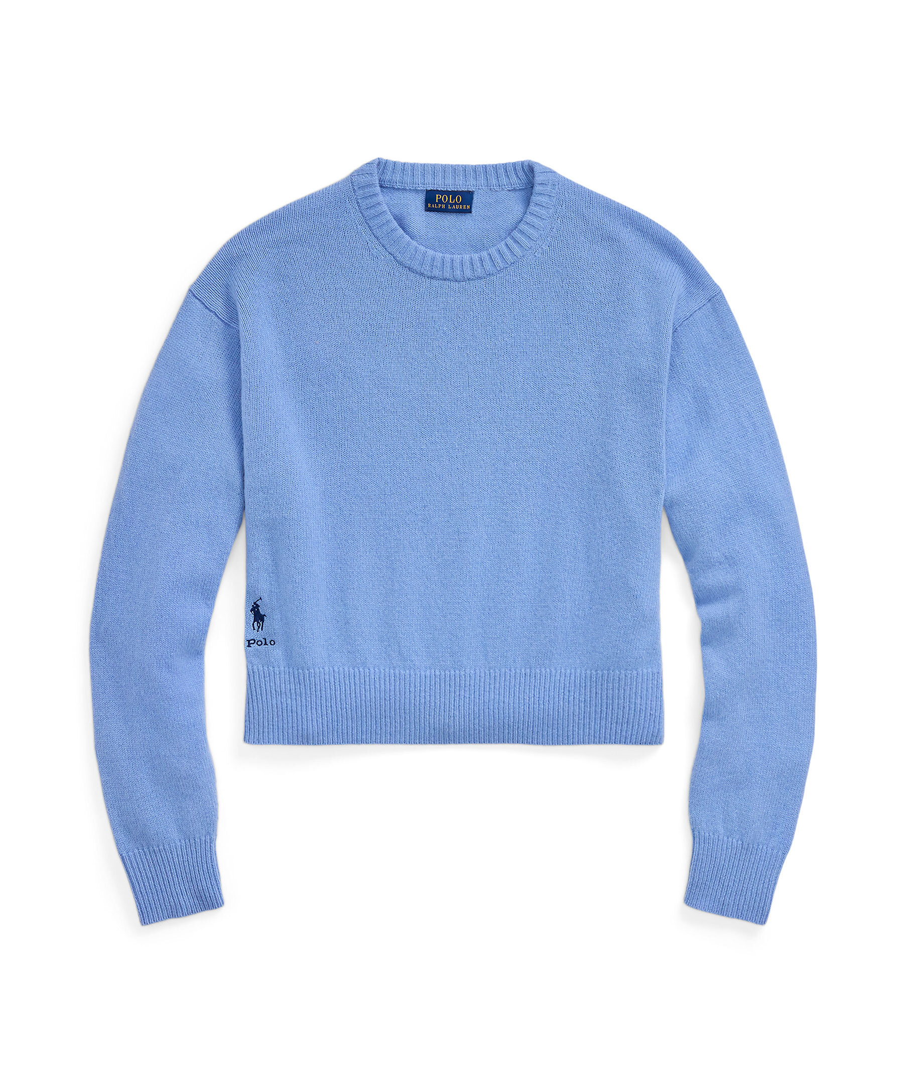 Blå, stickad pullover från Polo Ralph Lauren. Tröjan har rund och ribbstickad halsringning, ribbstickade muddar vid ärm- och plaggslut samt broderad logotyp vid fållen. Tillverkad i en ull- och kashmirblandning.