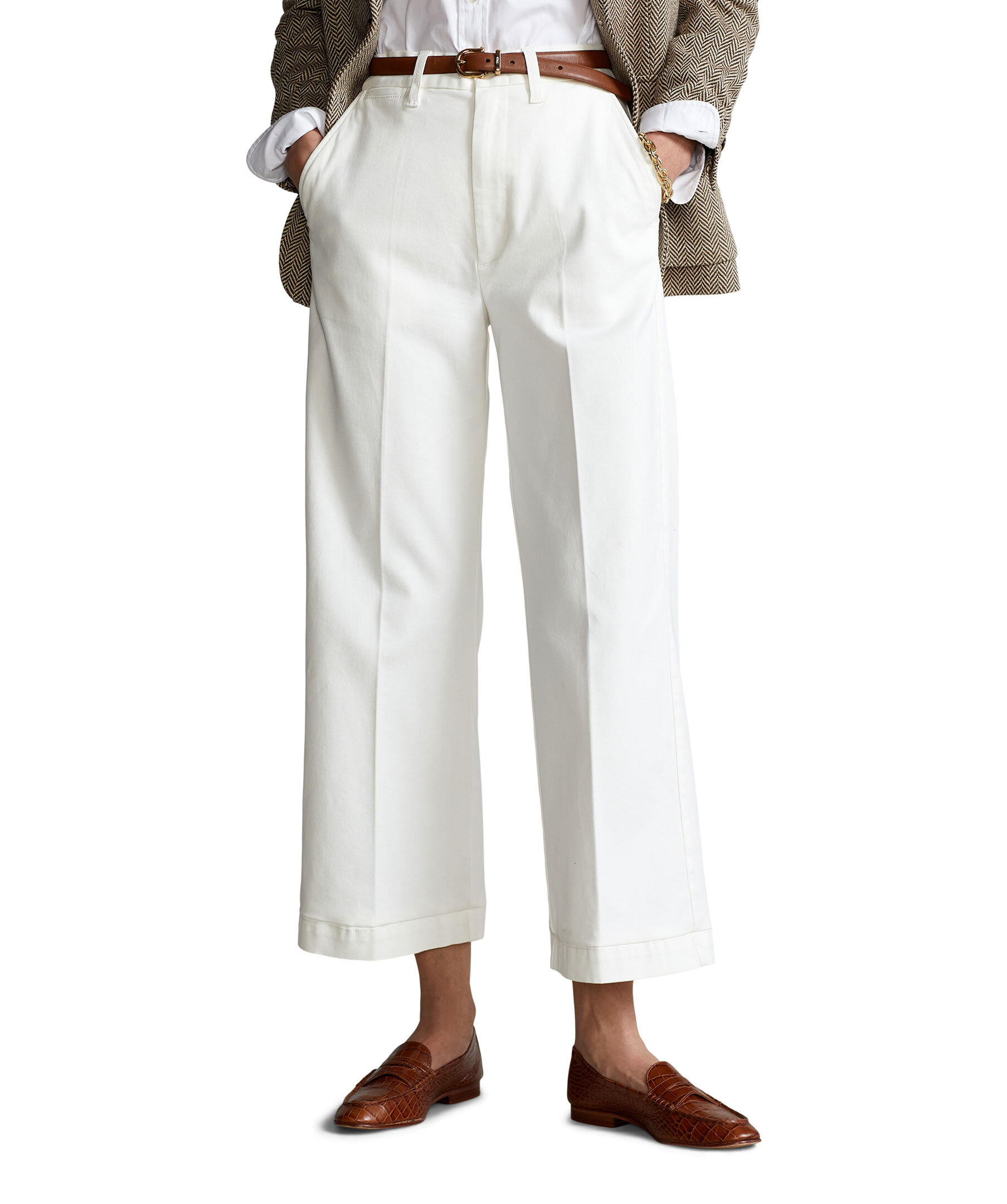 Vita vida cropade chinos från Polo Ralph Lauren. Byxorna har en högmidjad passform. Hällor för bälte. Fem fickor. Patch med logotyp vid vänster bakficka. Tillverkad i bomullsblandning.