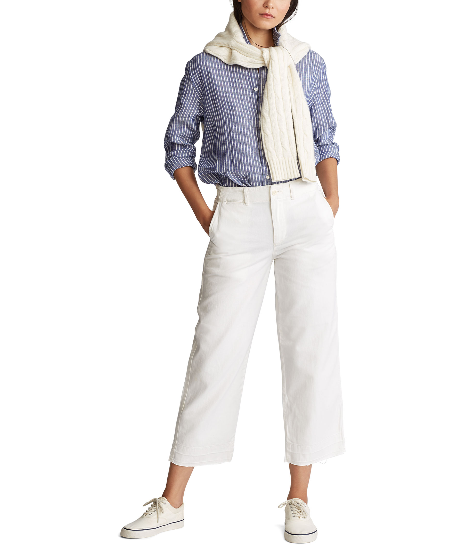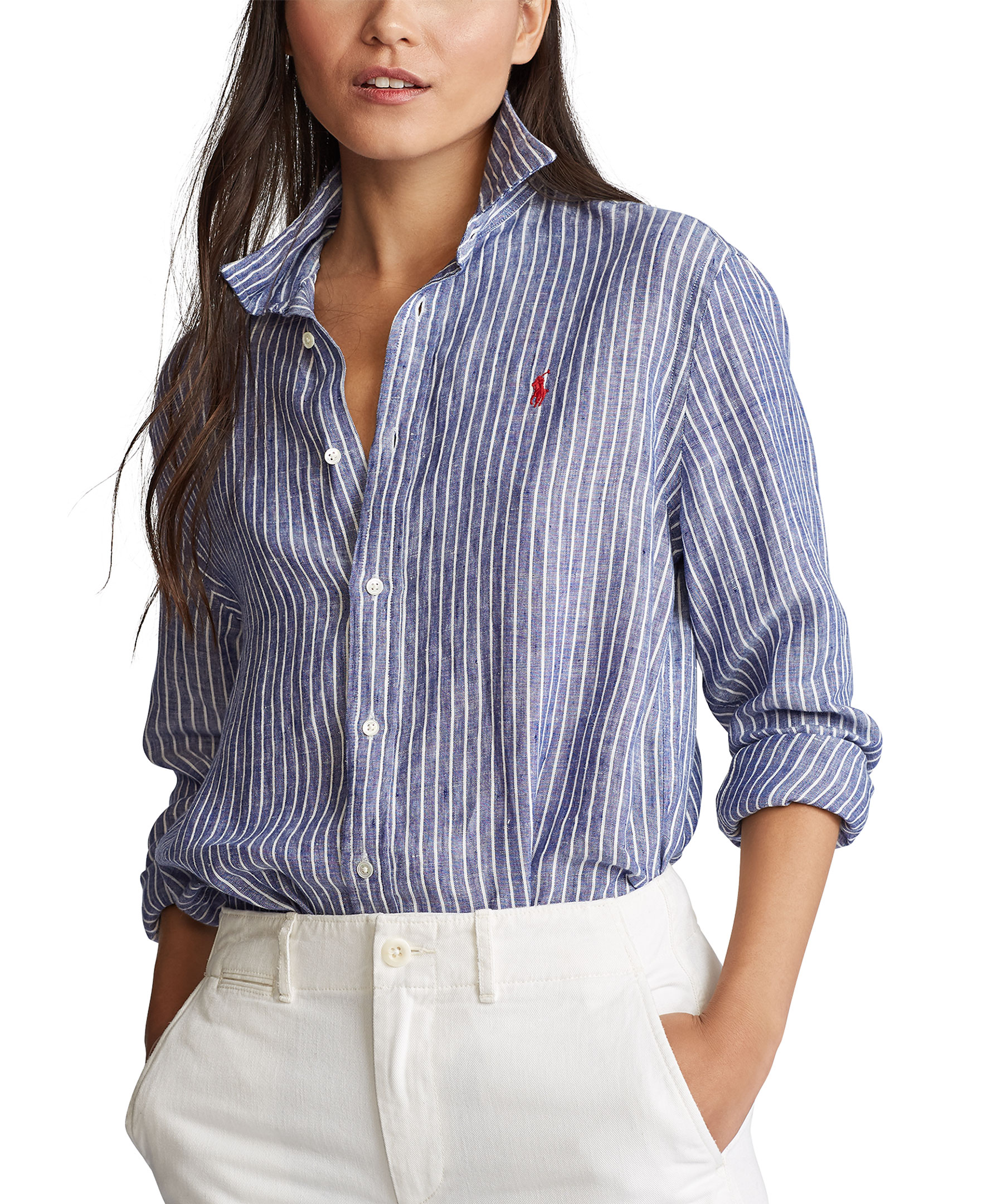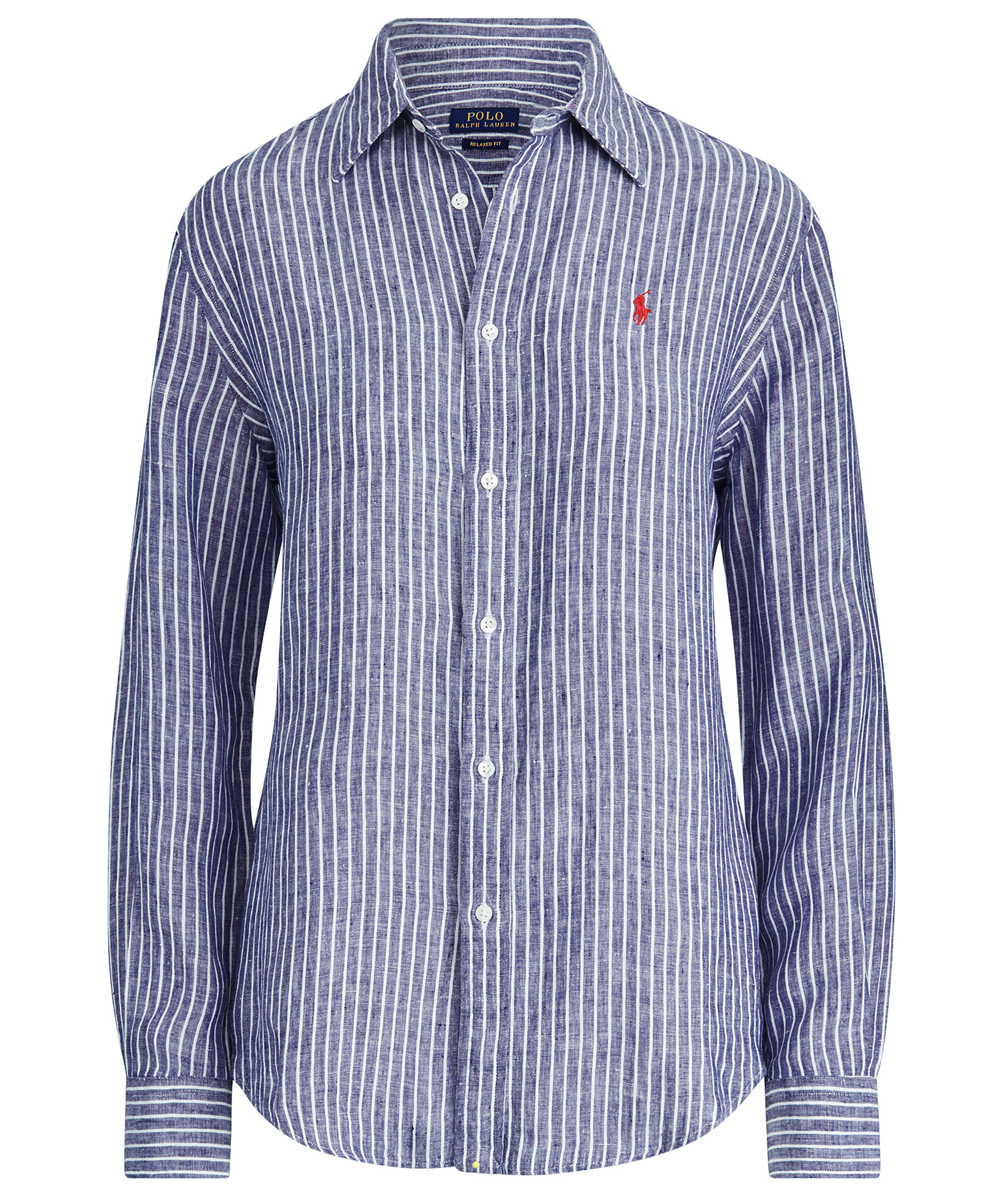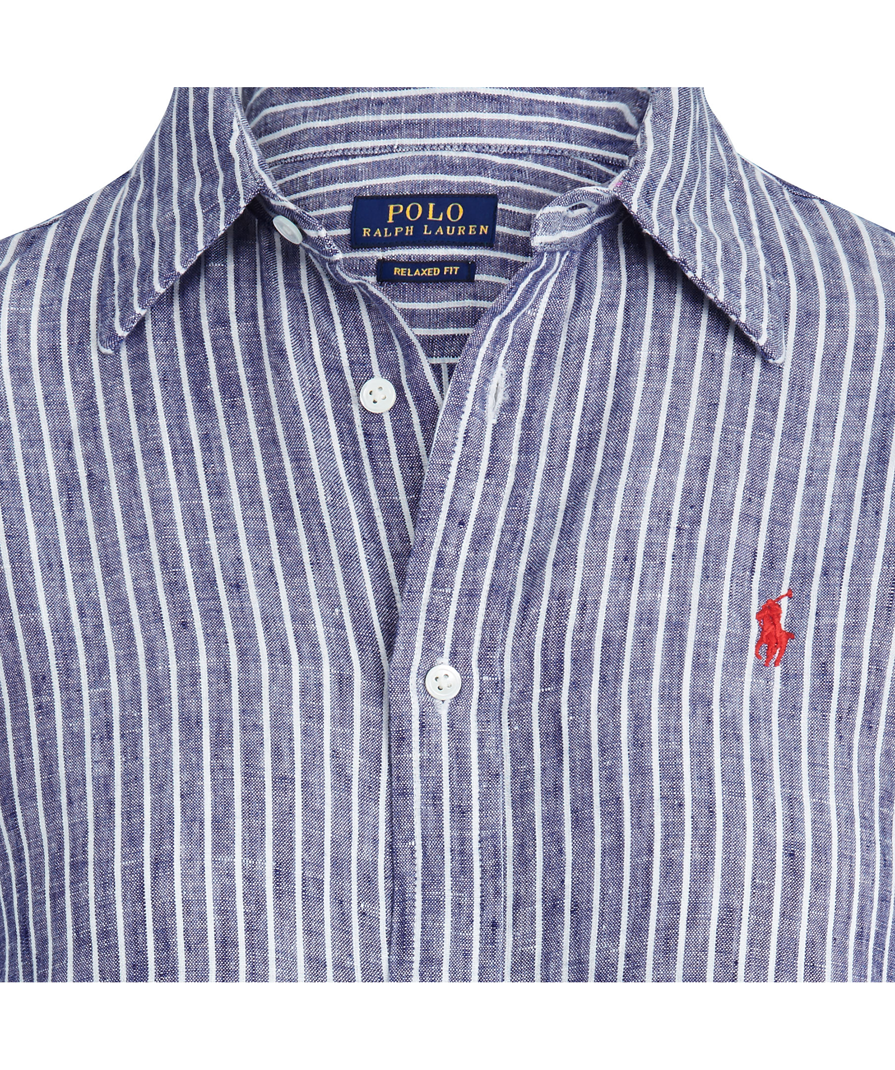 Blå/vit skjorta från Polo Ralph Lauren i relaxed fit.. Tillverkad helt i linne. Turndown-krage och broderad logotyp på bröstet.