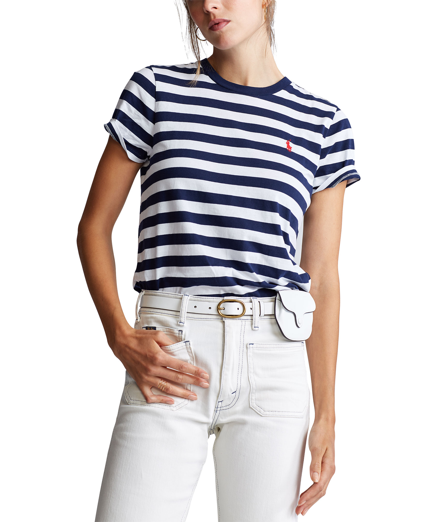 Blå/vit randig t-shirt från Polo Ralph Lauren. Tillverkad i bomull. Crewneck, broderad logga på bröstet.