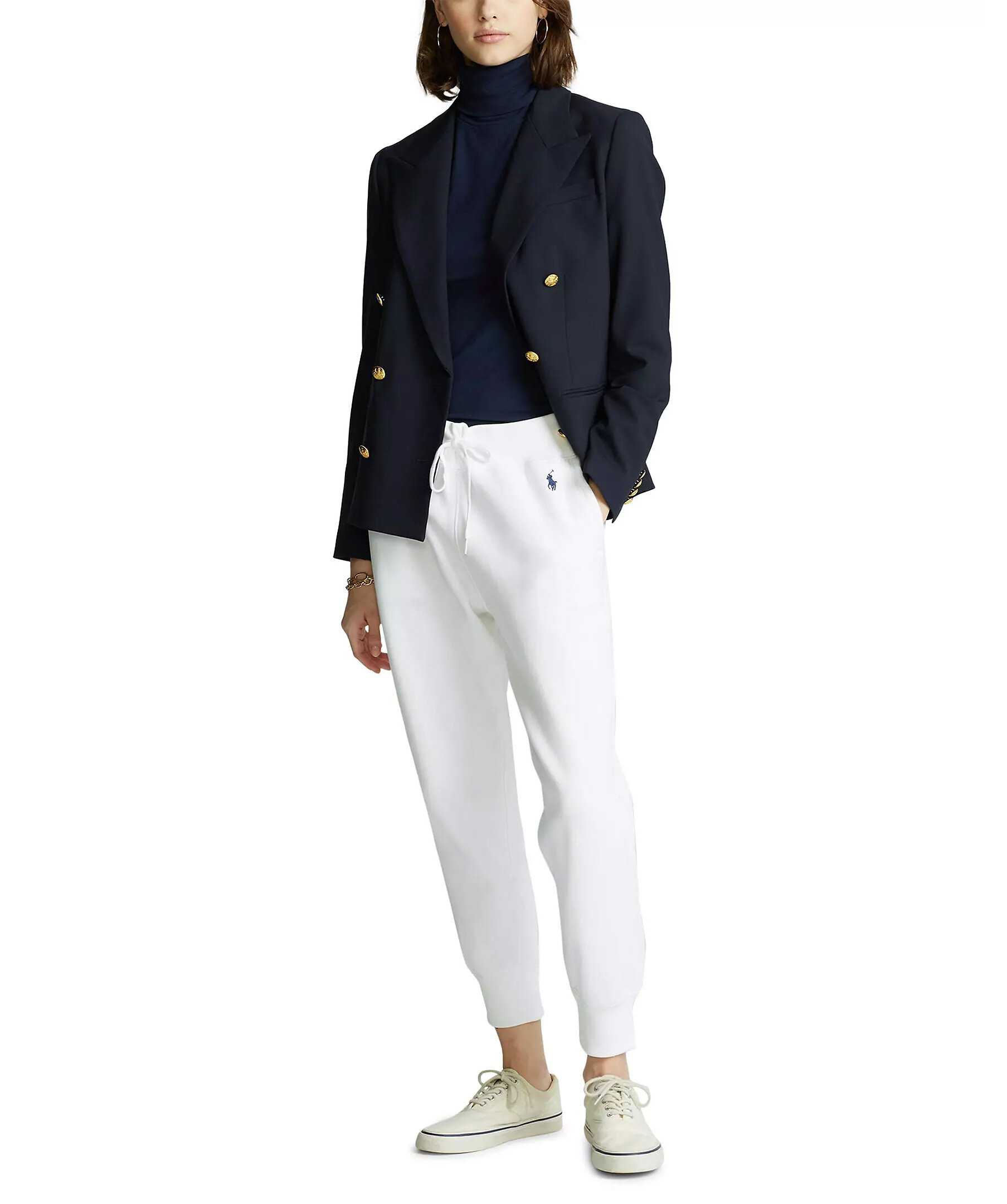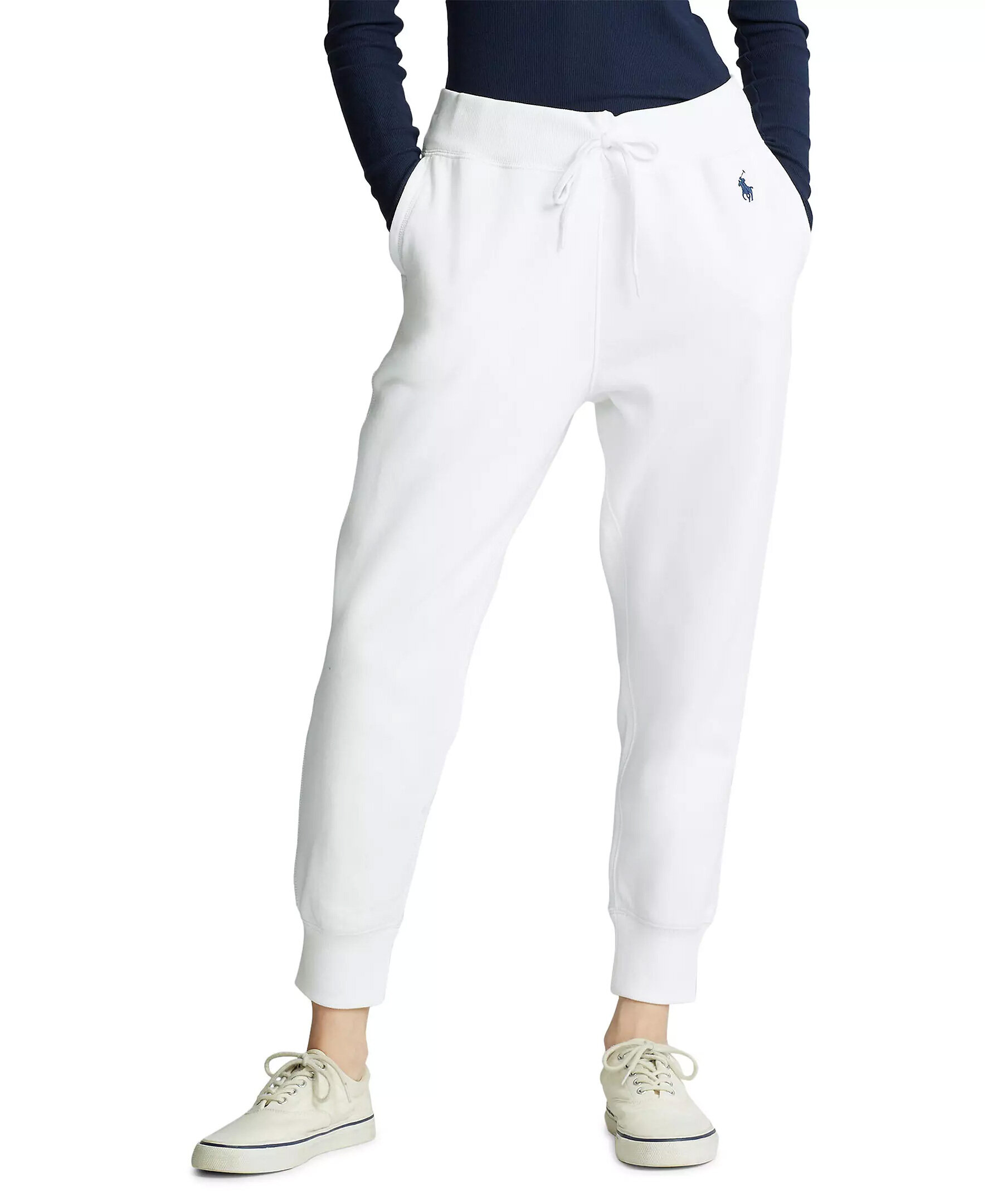 Vita mjukisbyxor från Polo Ralph Lauren. Tillverkade i bomullsmix. Ankellånga, broderad logotyp på vänster sida, muddar i benslut, knyt i midjan.