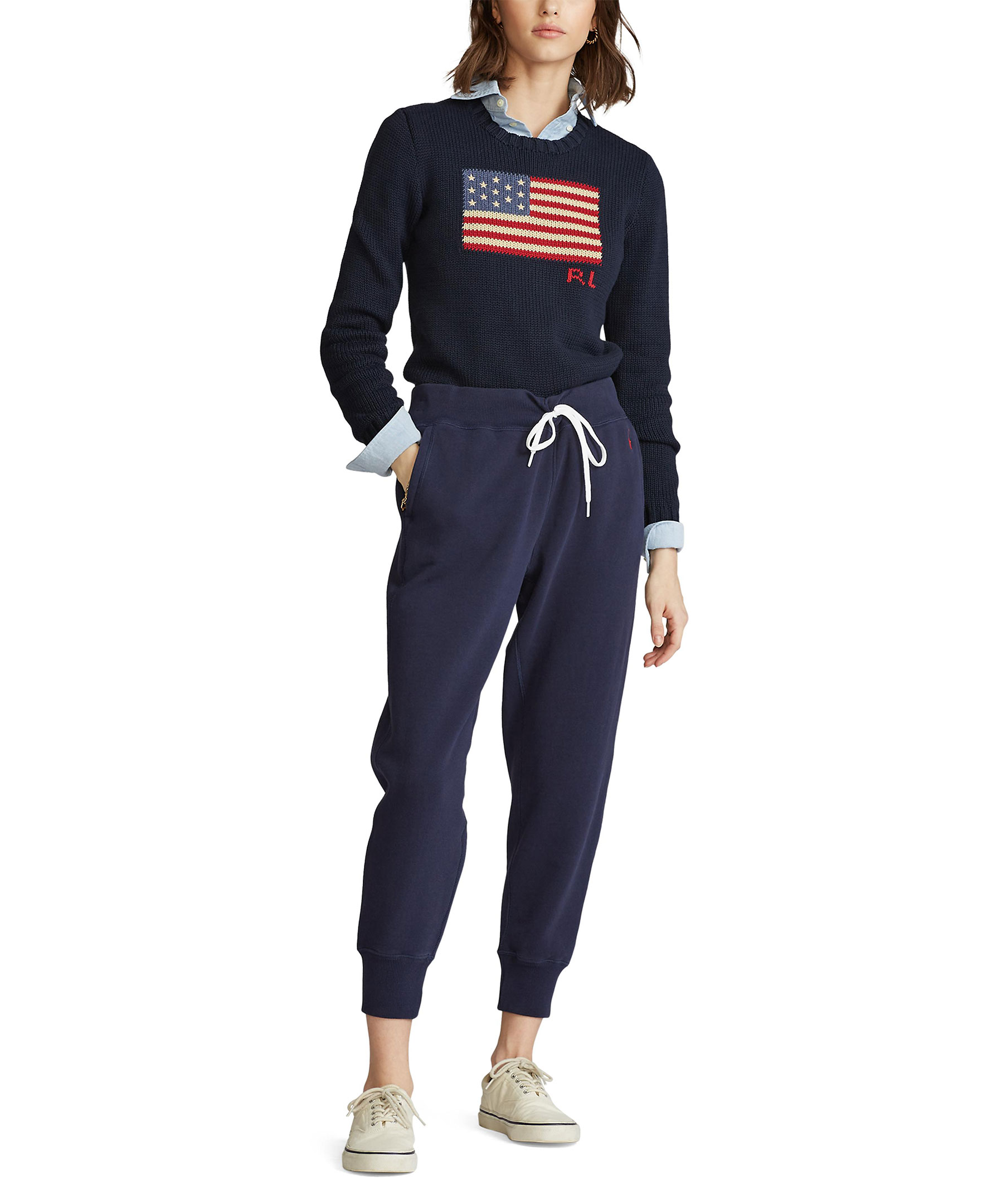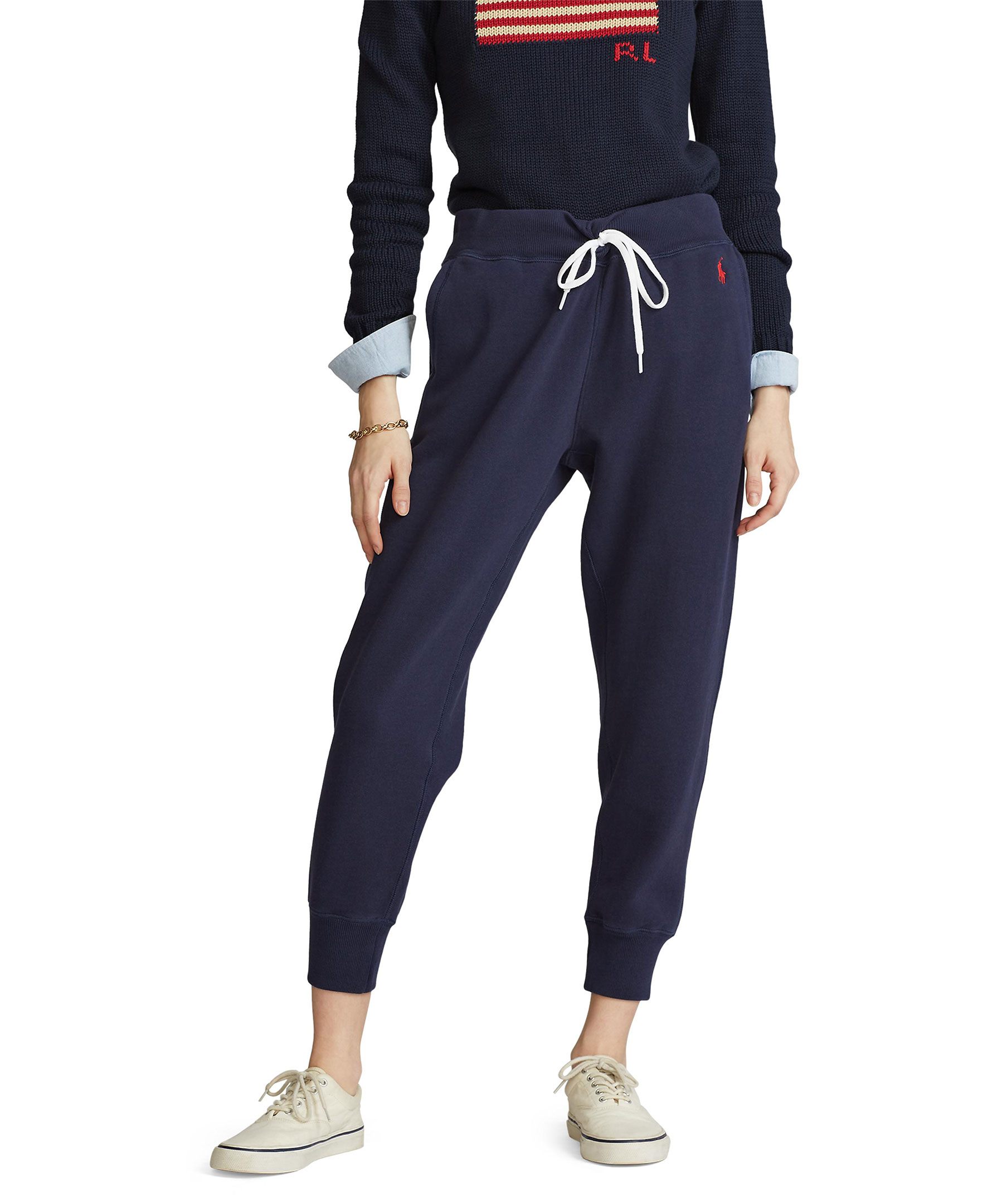 Marinblå mjukisbyxor från Polo Ralph Lauren. Broderad logga på höften, knyt i midjan, avslappnad passform som slutar vid ankeln.