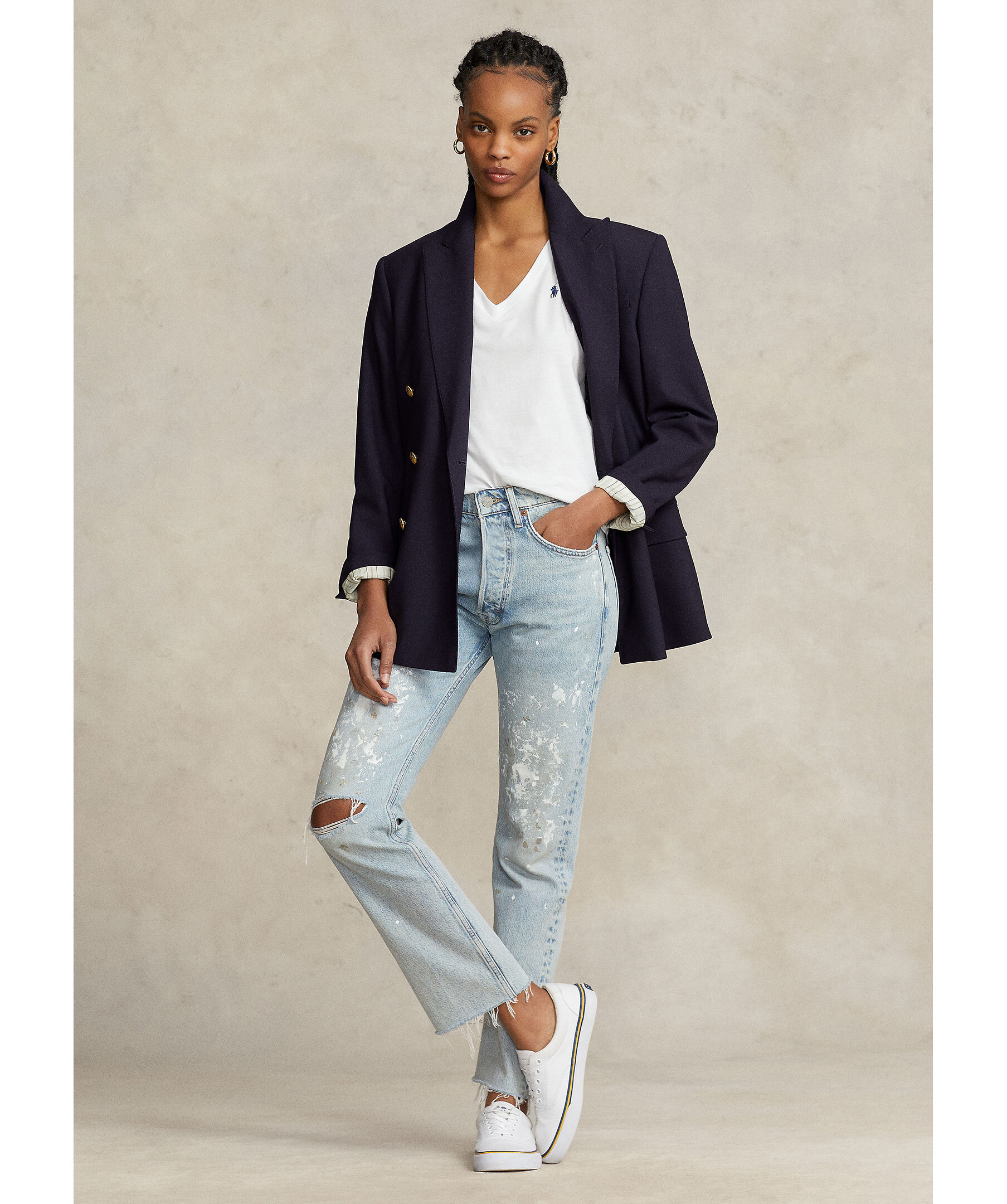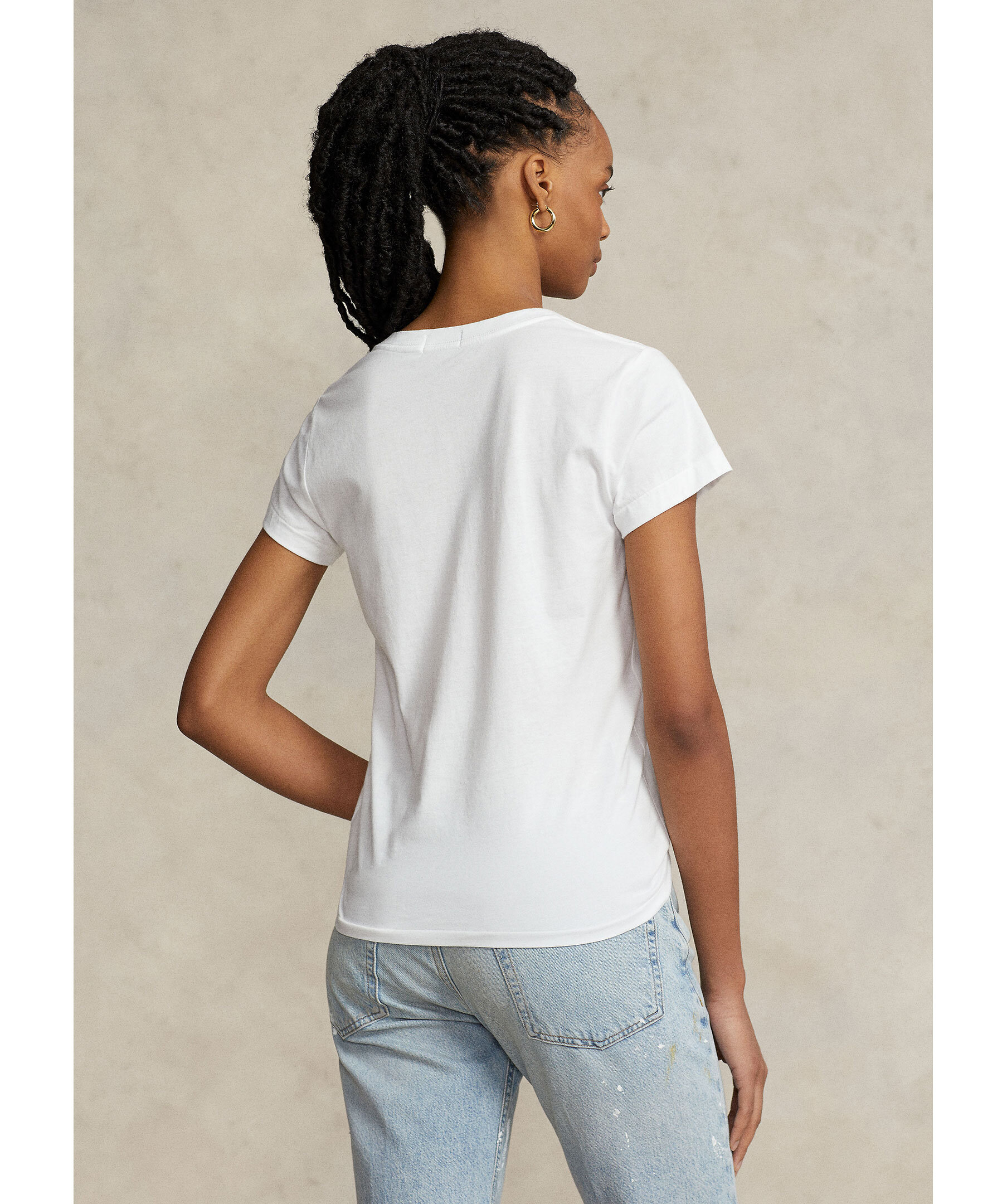 Vit t-shirt från Polo Ralph Lauren i mjuk bomullsjersey. Klassisk V-ringning, avslappnad passform samt broderad "Polo Ralph Lauren"-logotypen på vänstra bröstet.