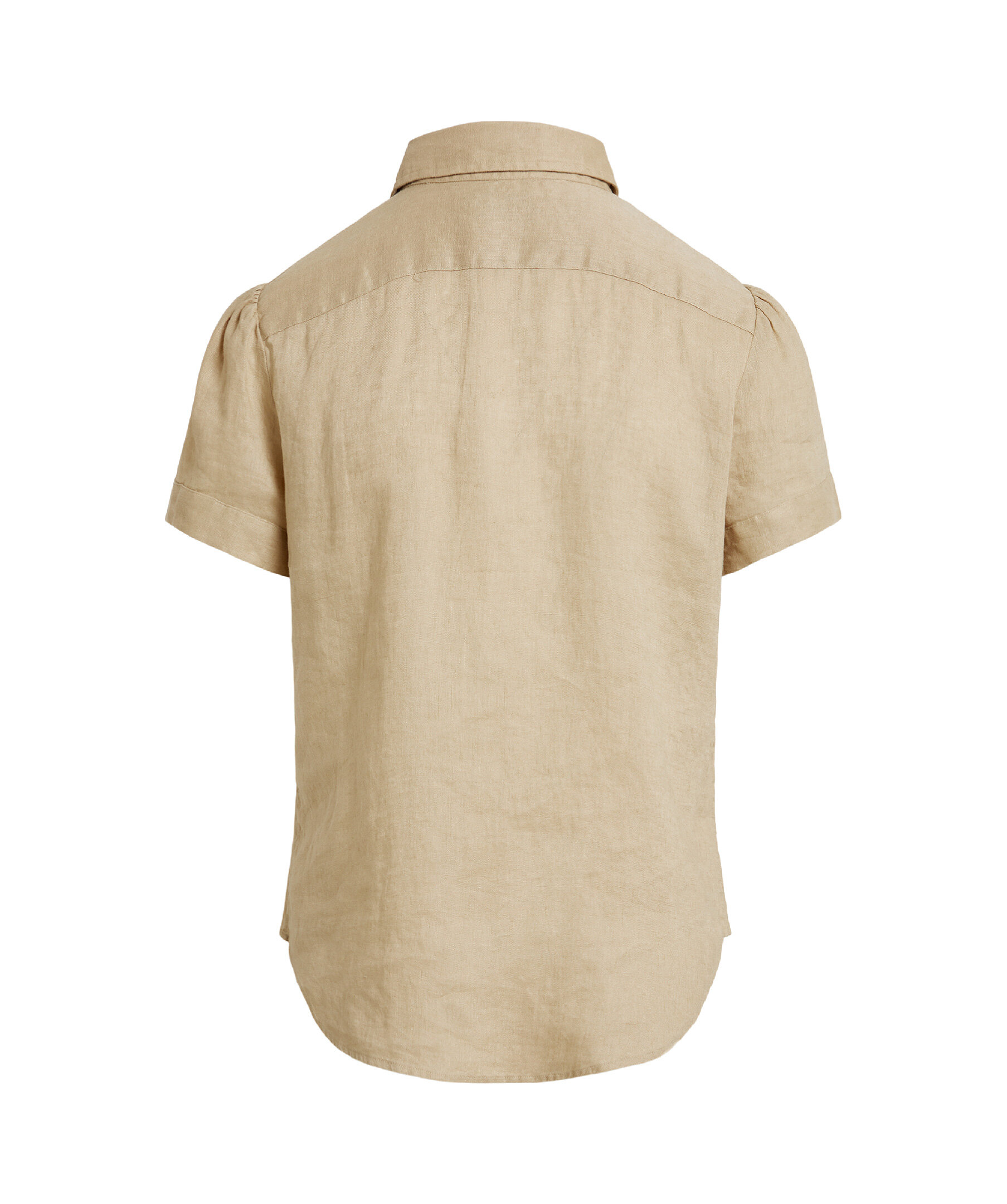 Vävt linne ger en lätt vikt åt denna kortärmade skjorta, som har klassiska herrinspirerade detaljer, inklusive en button-down-krage och skjortslutad fåll.
