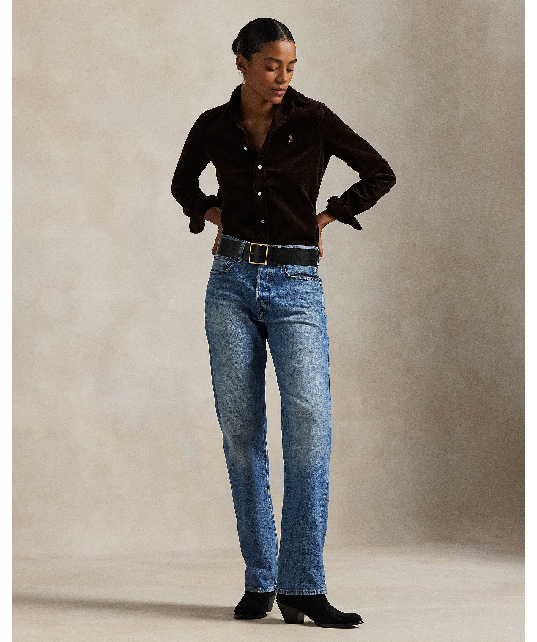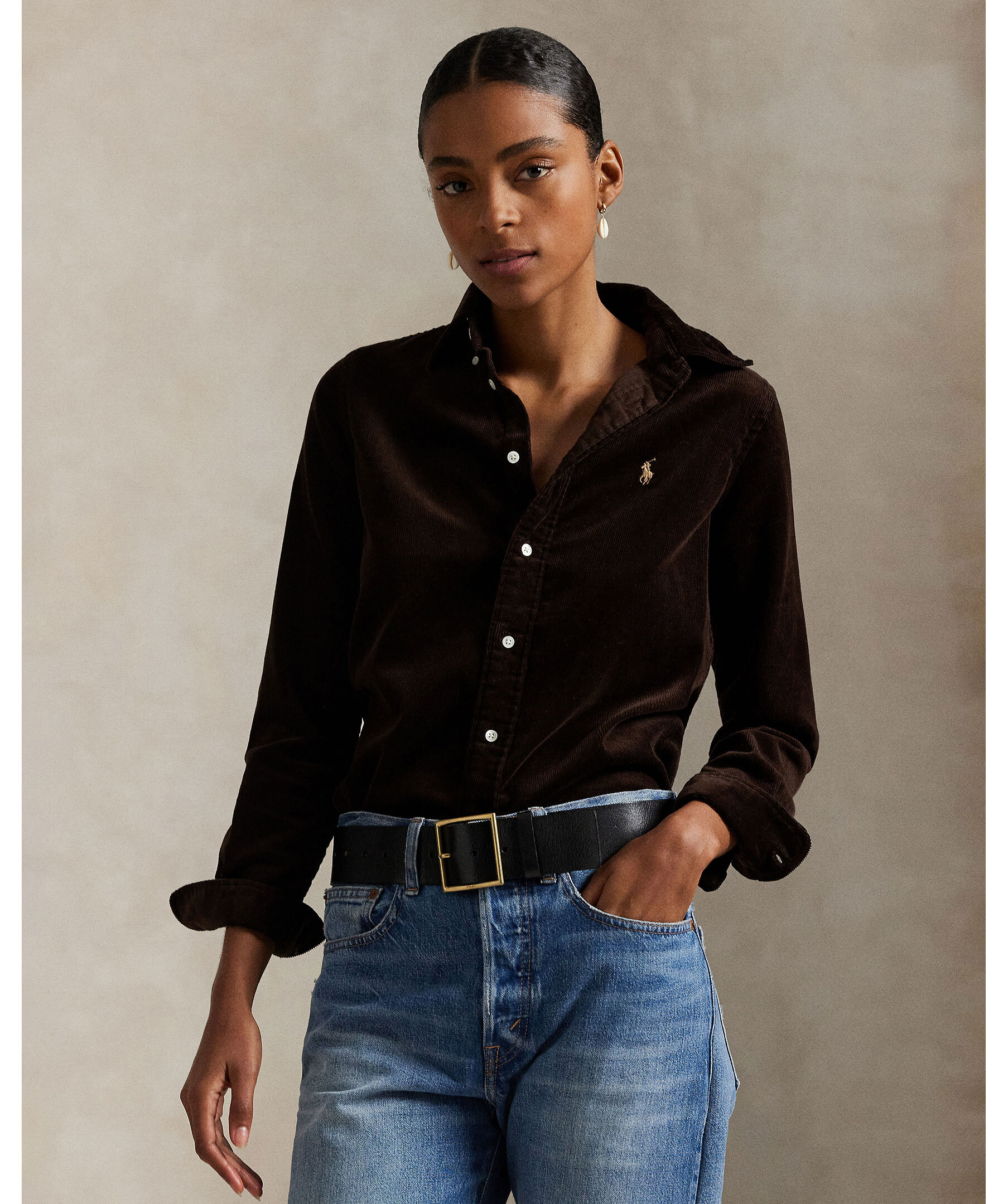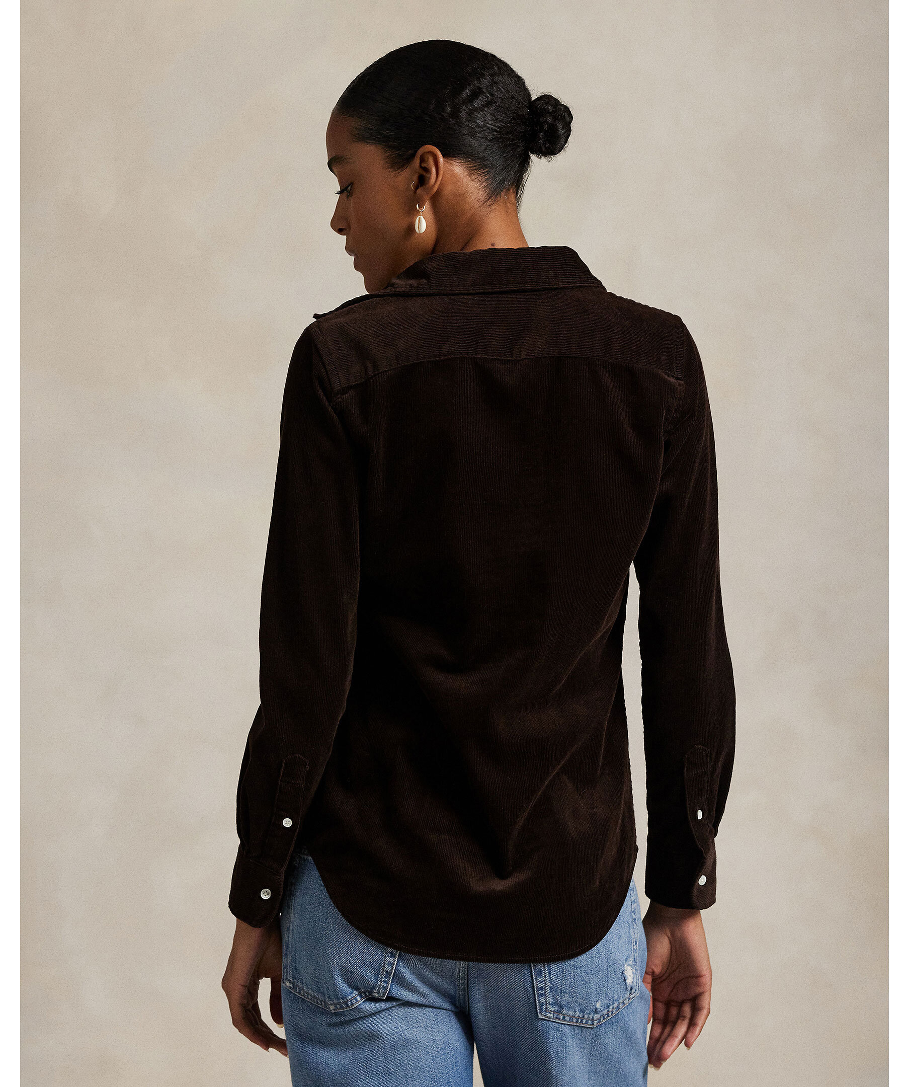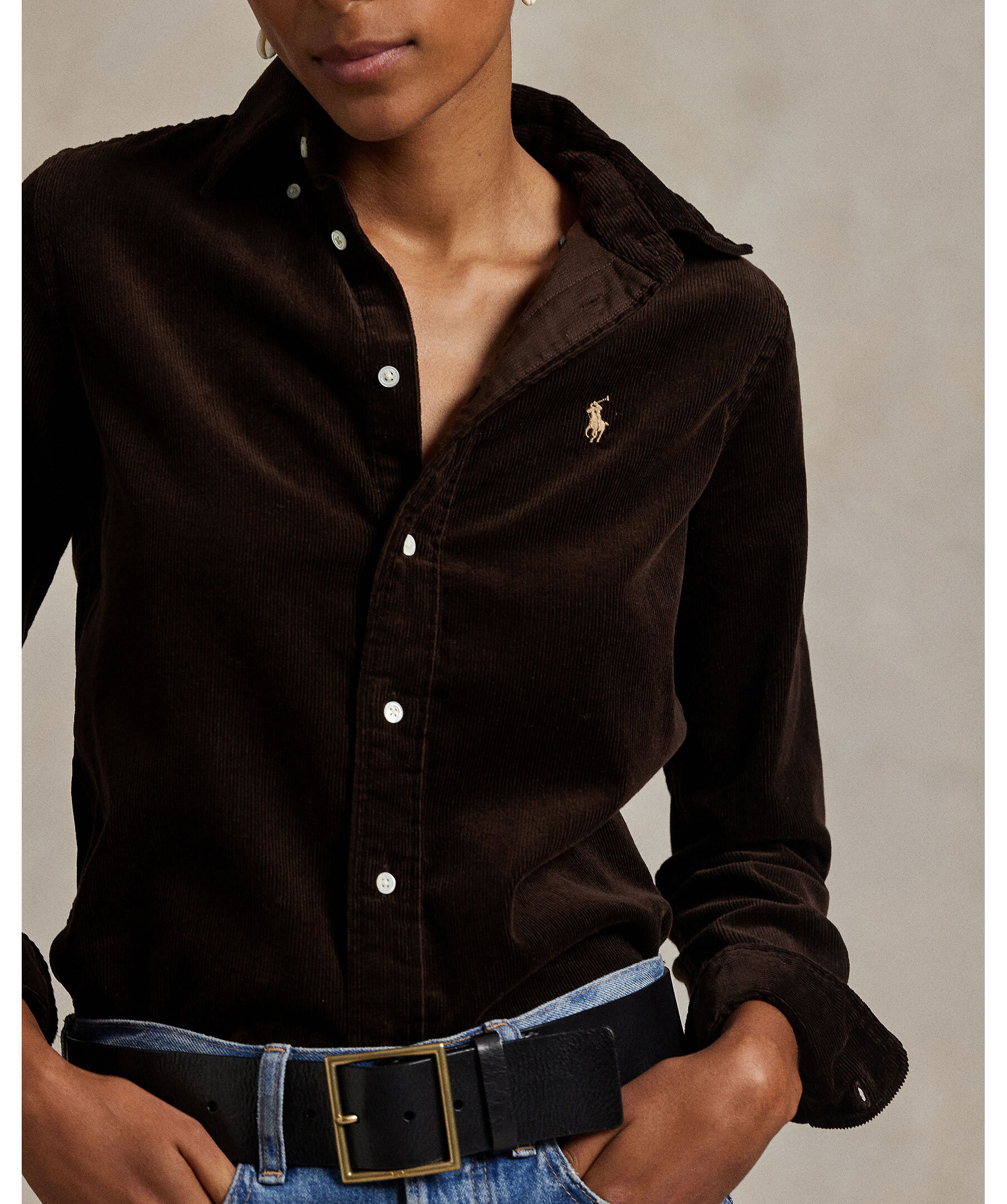 Brun skjorta i manchestertyg från Polo Ralph Lauren. Skjortan är gjord i ett stretchigt bomullstyg och har en smal passform. Broderad polohäst på bröstet.