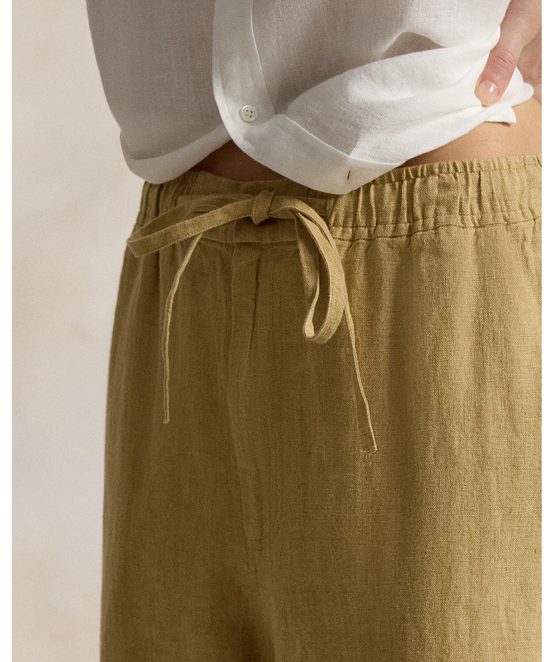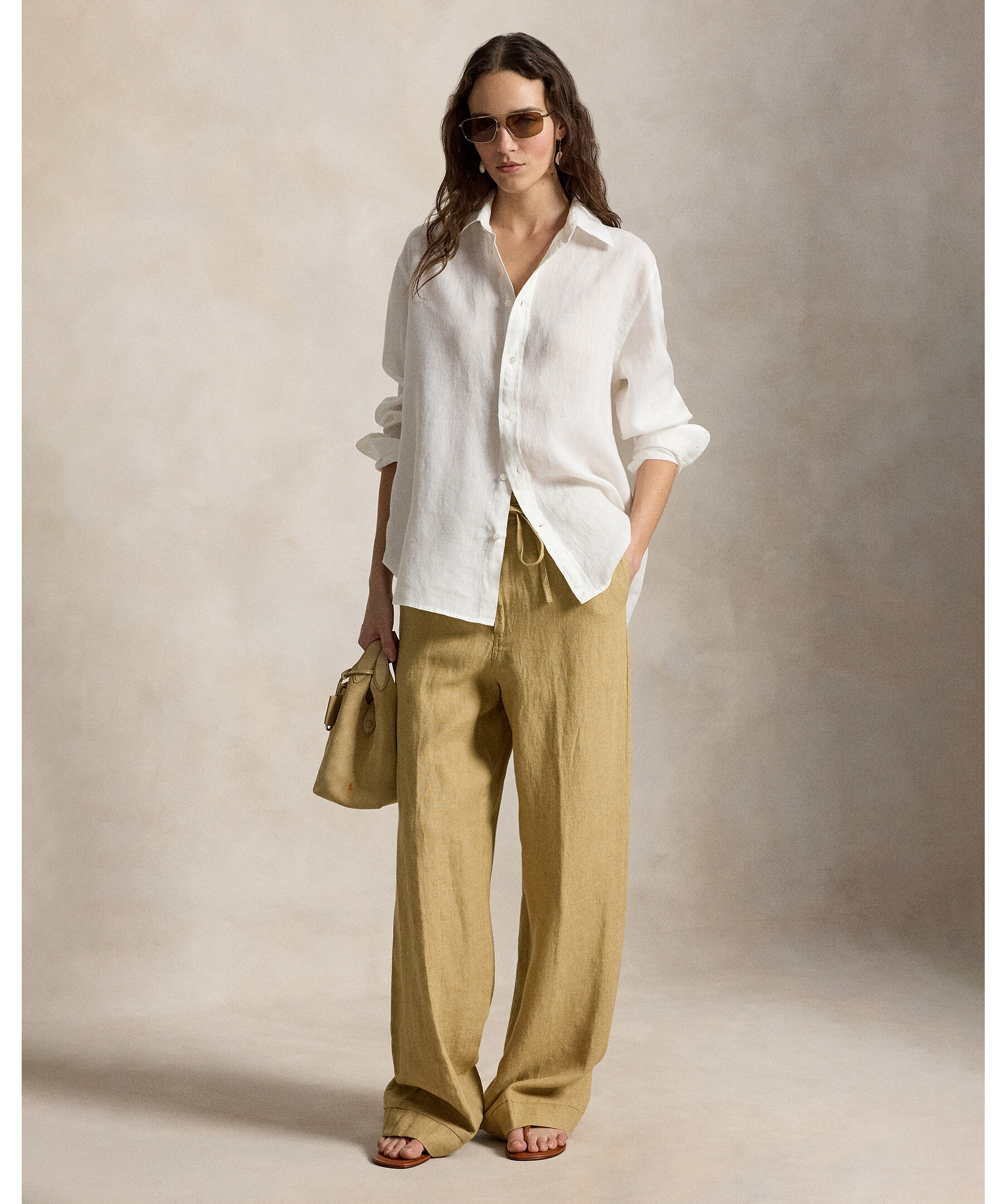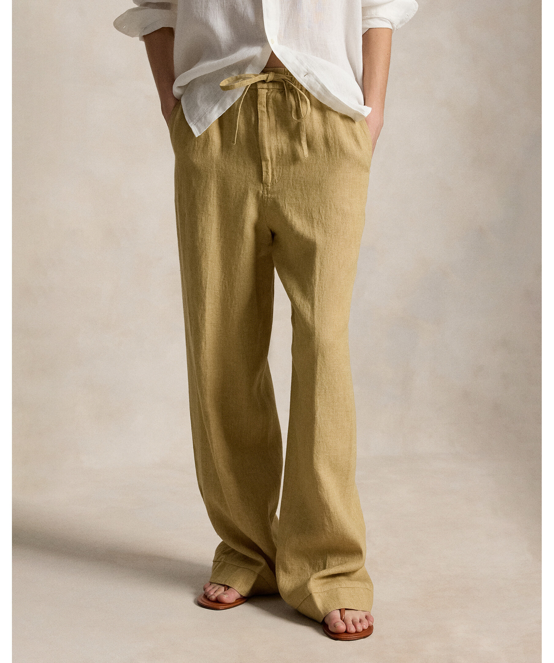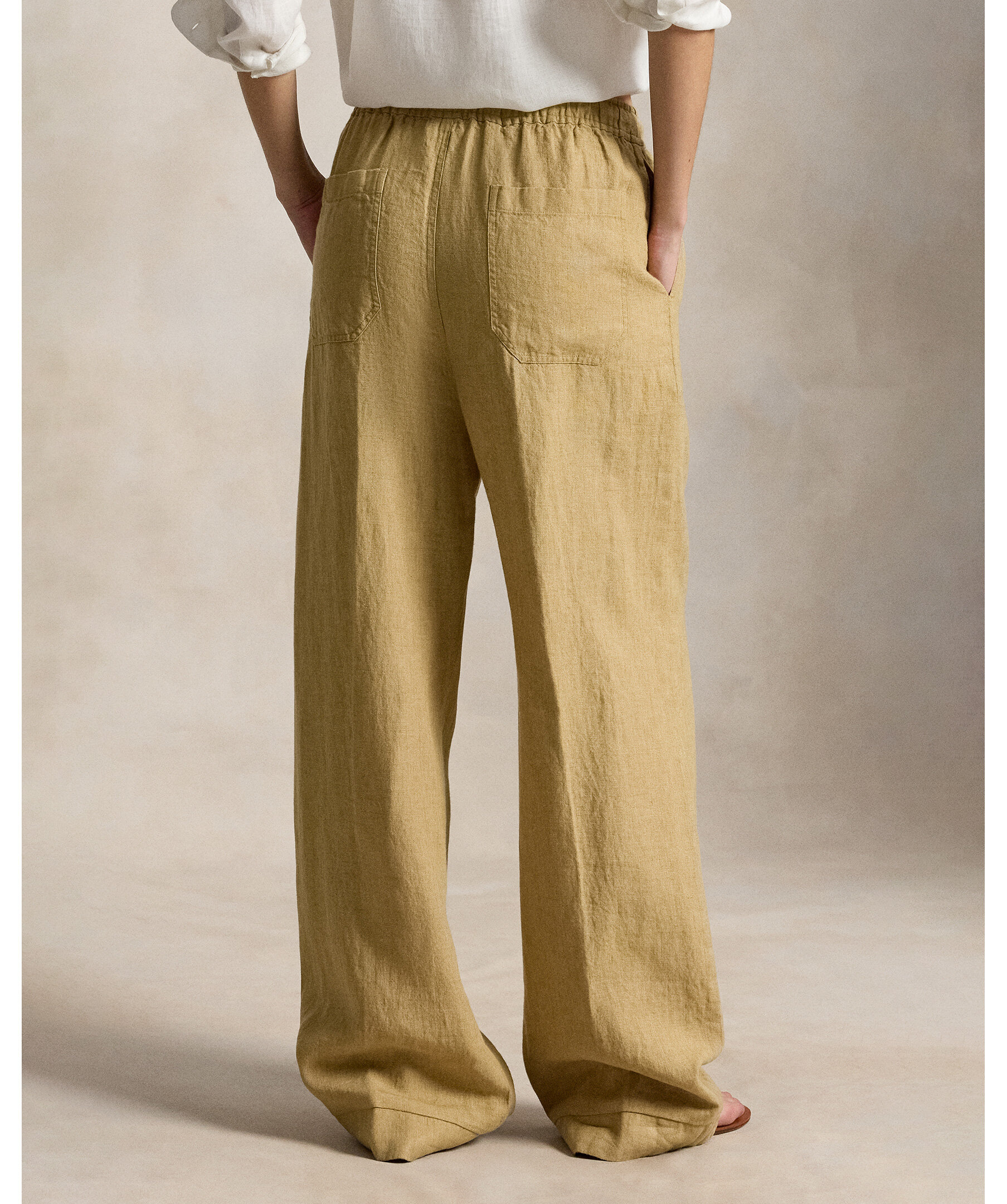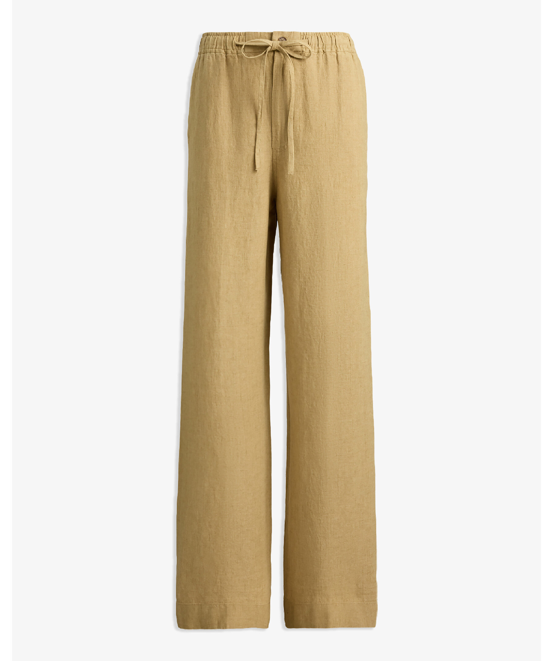 Beiga linnebyxor från Polo Ralph Lauren. Dessa byxor med vida ben balanserar ett behagligt fall med linnets naturliga struktur och är designade med dragsko i midjan och sidofickor i sömmarna.