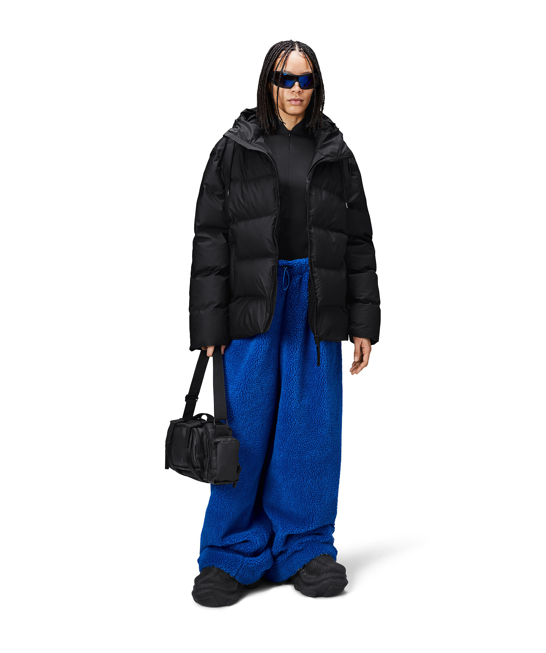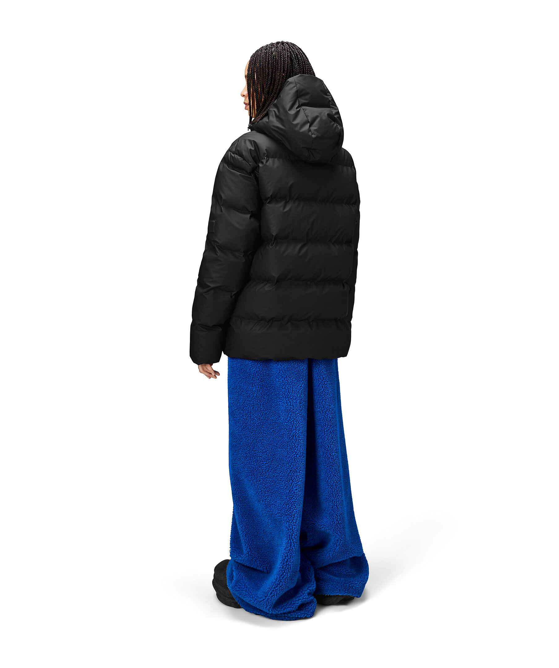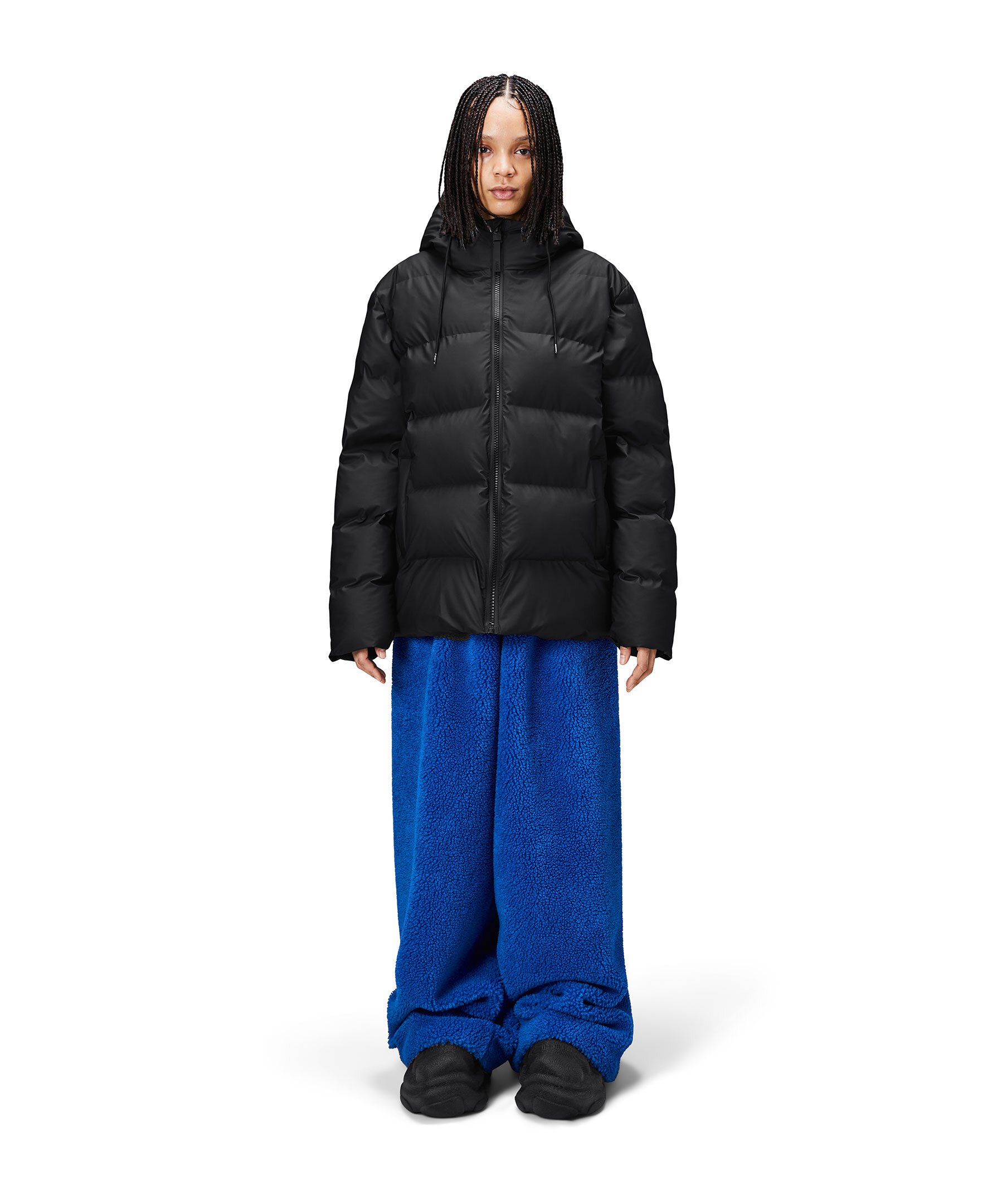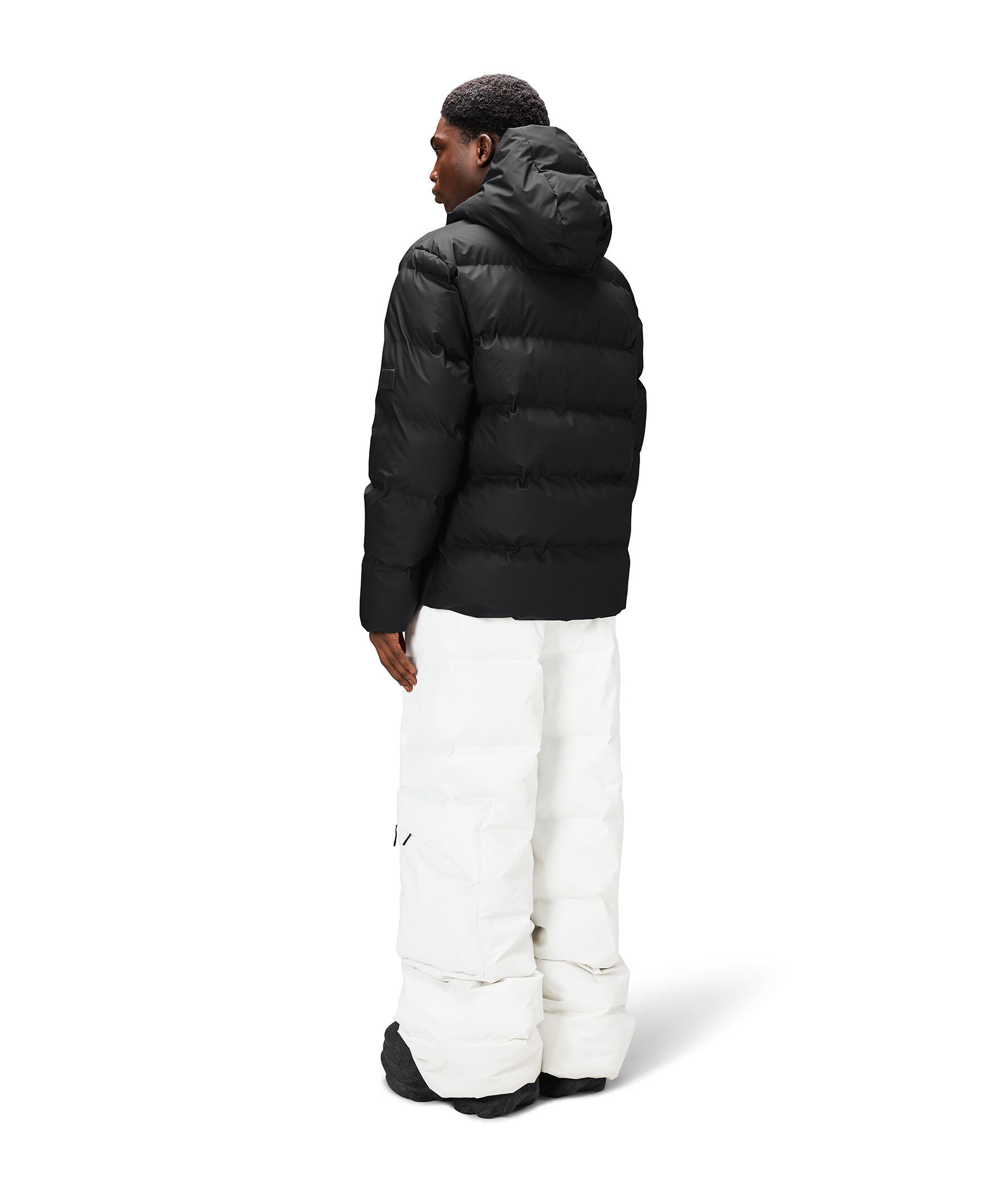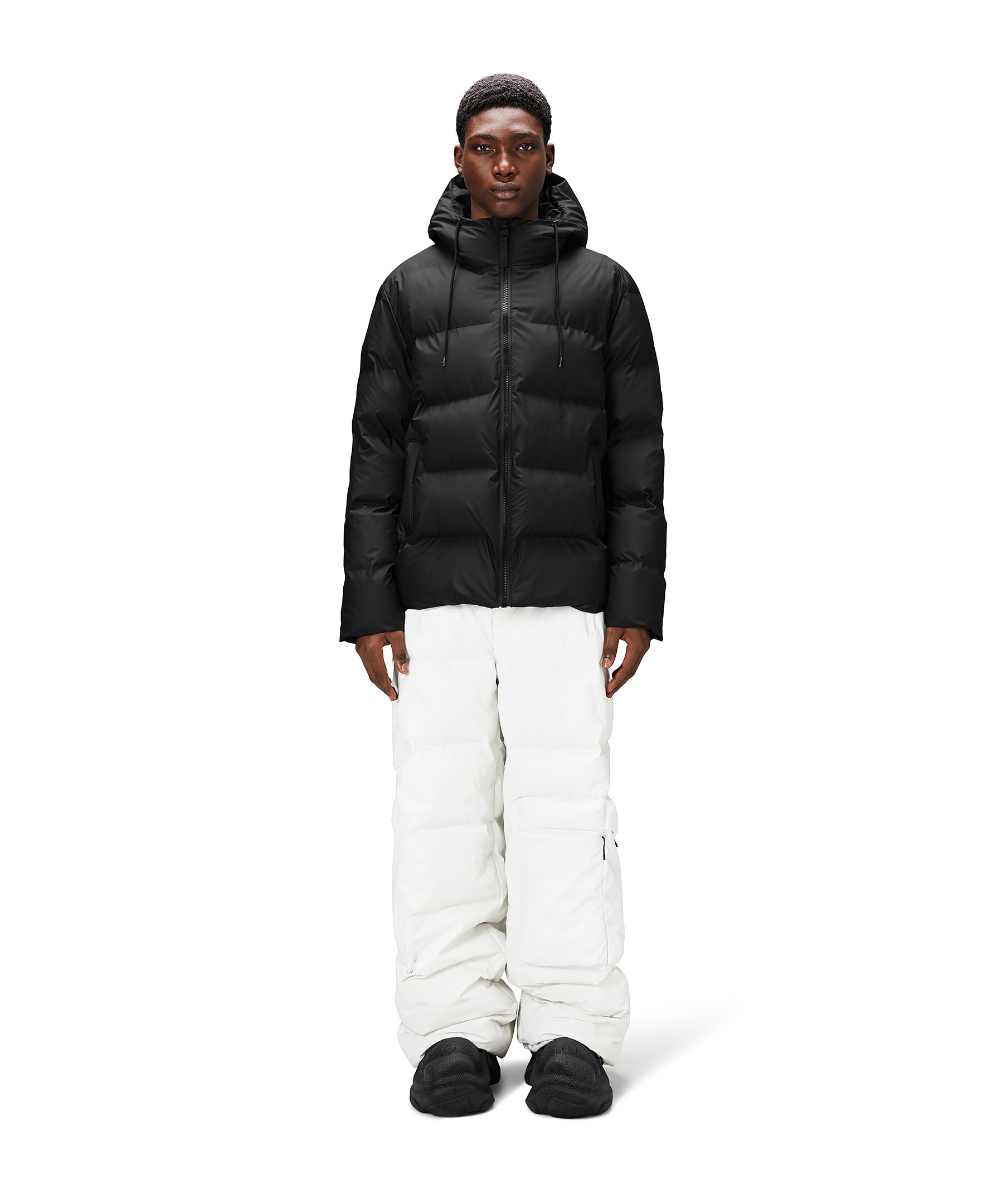 Svart Puffer jacka från Rains. En vattentät vinterjacka med en ren, lättburen puffer-estetik. Som en del av Alta Puffer-serien kännetecknas plagget av en raffinerad silhuett, breda signaturkammare och avskalade detaljer. Den här lyxiga puffern i vattentätt signaturtyg som andas bygger på fjäderlös kammarteknologi som håller dig varm och bekväm i de kallaste vädren. Jackan har gummerat tvåvägsblixtlås, ultraljudsgjutna sömmar, rymliga fleecefodrade sidfickor, dolda stormmanschetter och inre bröstficka. Silhuetten har fodrad huva med dragsko.