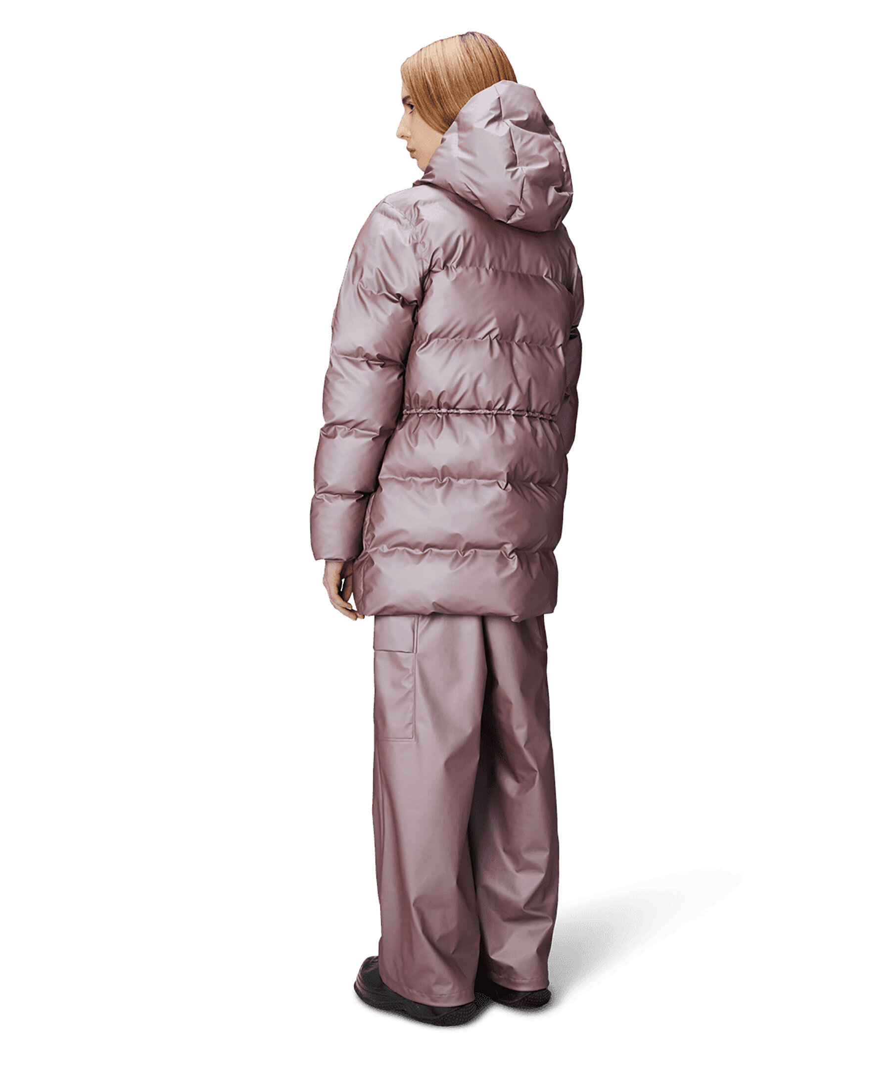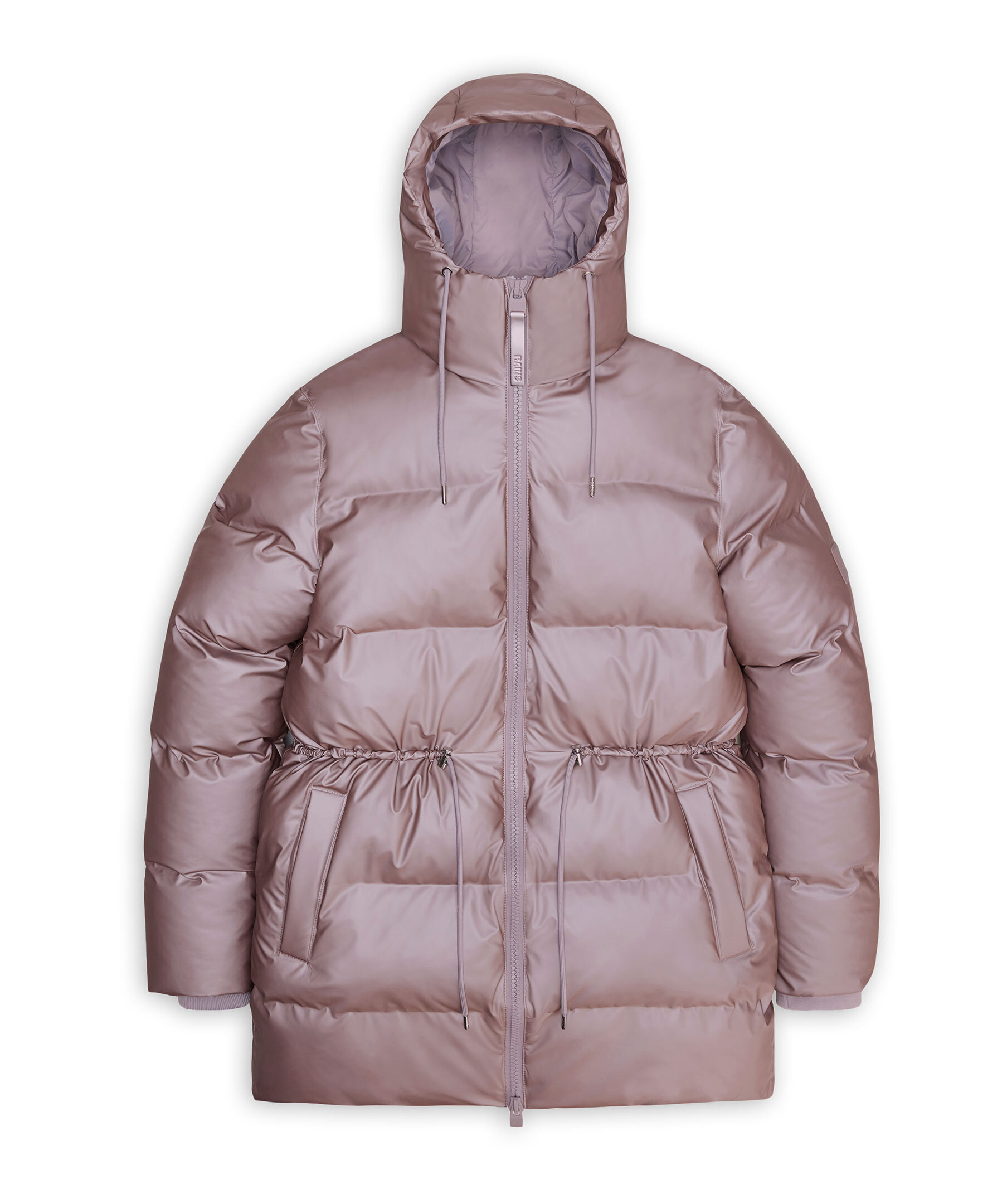 Rosa pufferjacka från Rains. Jackan stängs med tvåvägs dragkedja framtill och har dragsko i huvan, två fleecefodrade sidfickor, en invändig bröstficka med dragkedja samt är designad i Rains signaturtyg av PU. Dragsko i midjan för en mer formad siluett. Tillverkad av polyester.