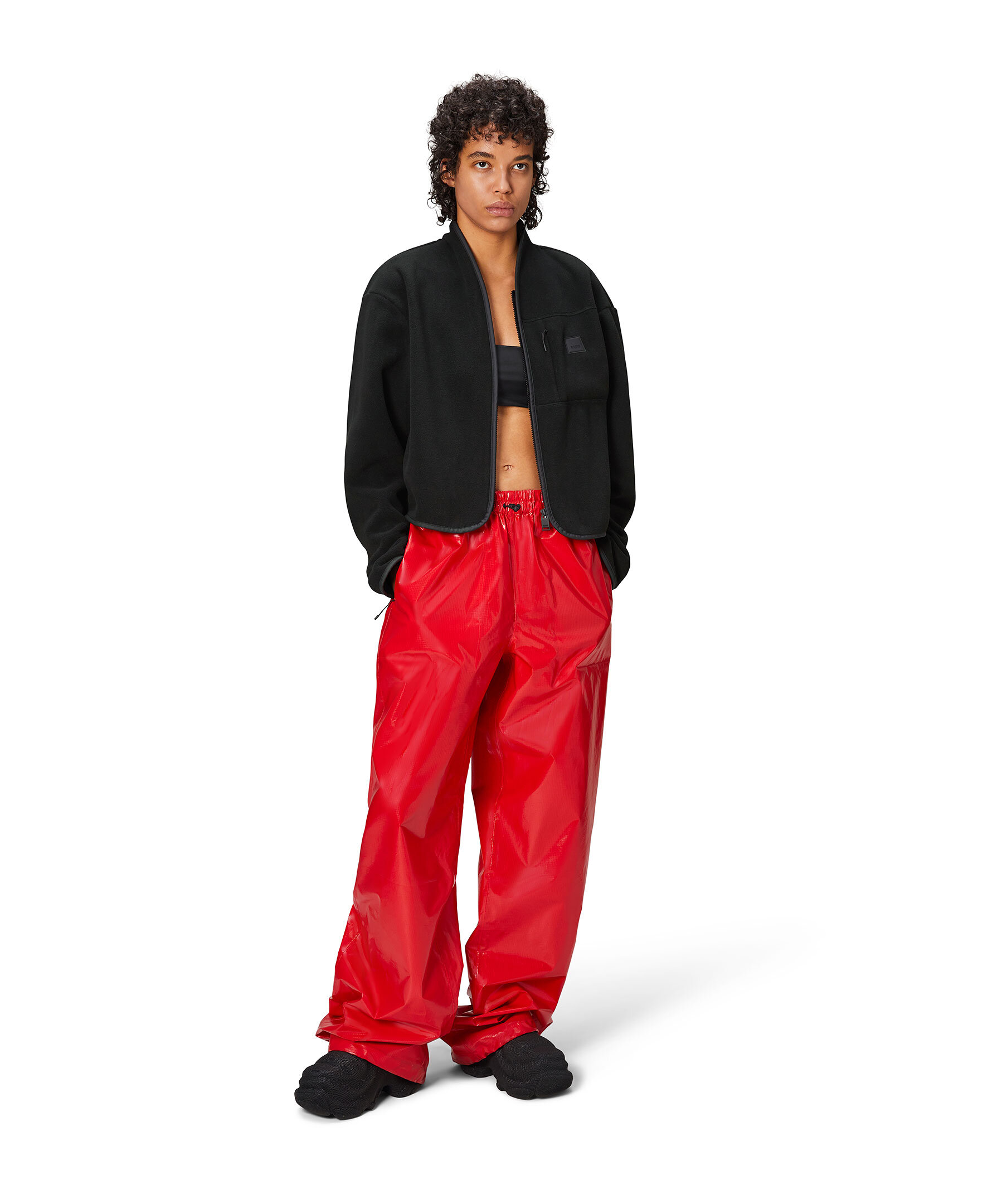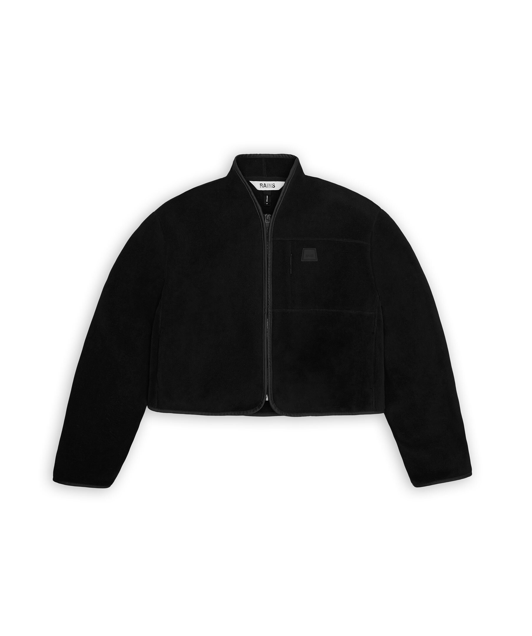 Svart fleecejacka i kort modell från Rains. Designad med trendiga beskurna proportioner och är gjord av ventilerad bondad fleece och med PU-bindning runt halsen, stängningen, fållen och ärmsluten, vilket påminner om Rains DNA. Den karaktäristiska bomber-inspirerade kragen ser också lite elegantare ut än de flesta andra. Durban kort fleecejacka har PUR-bundna kanter och en bröstficka med dragkedja. Designen är tillverkad av andningsbar stapelfiberfleece.